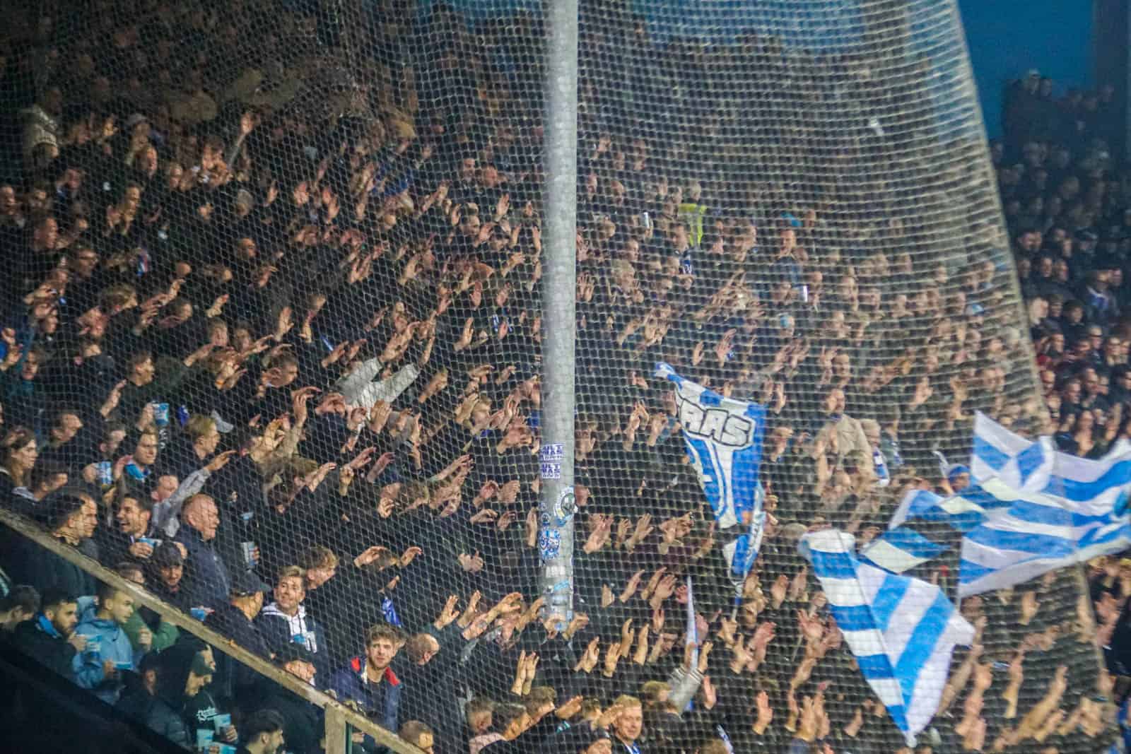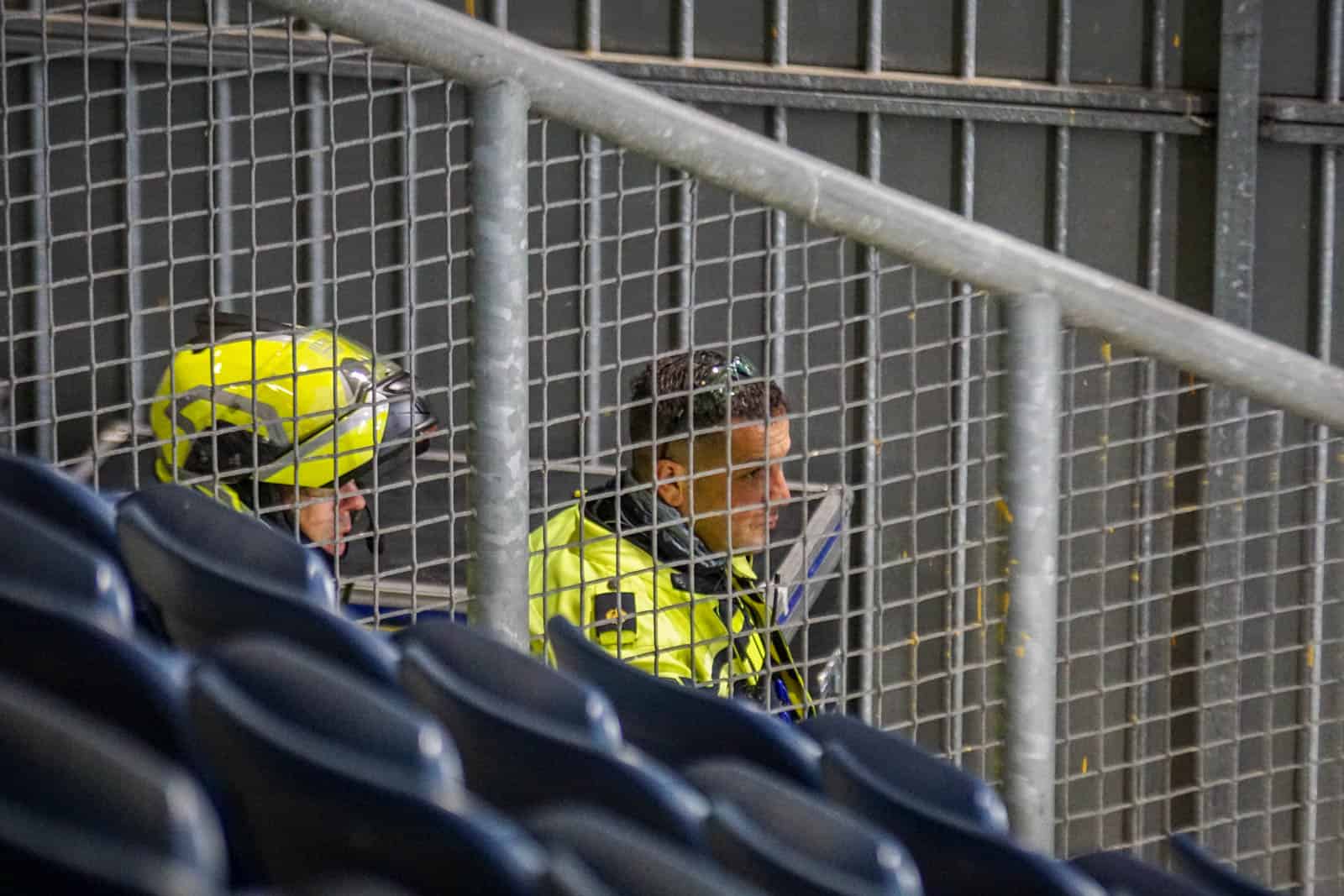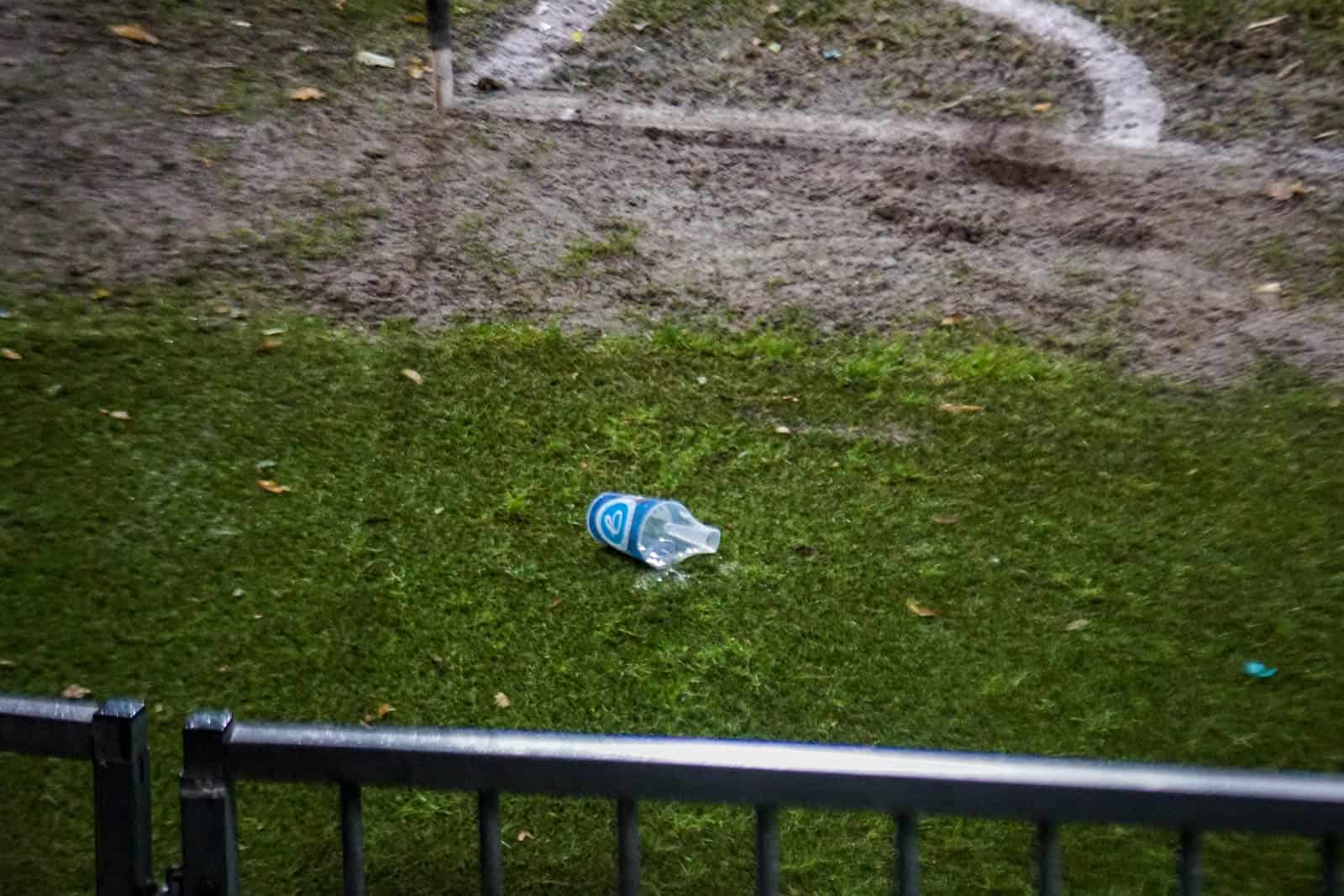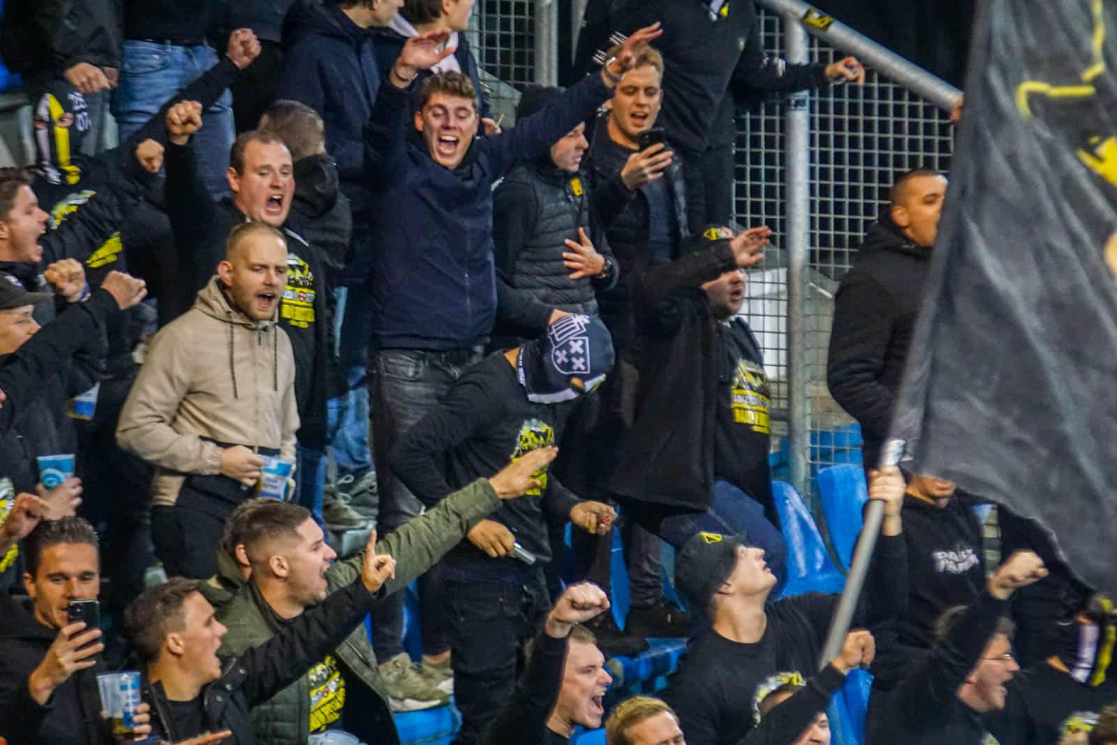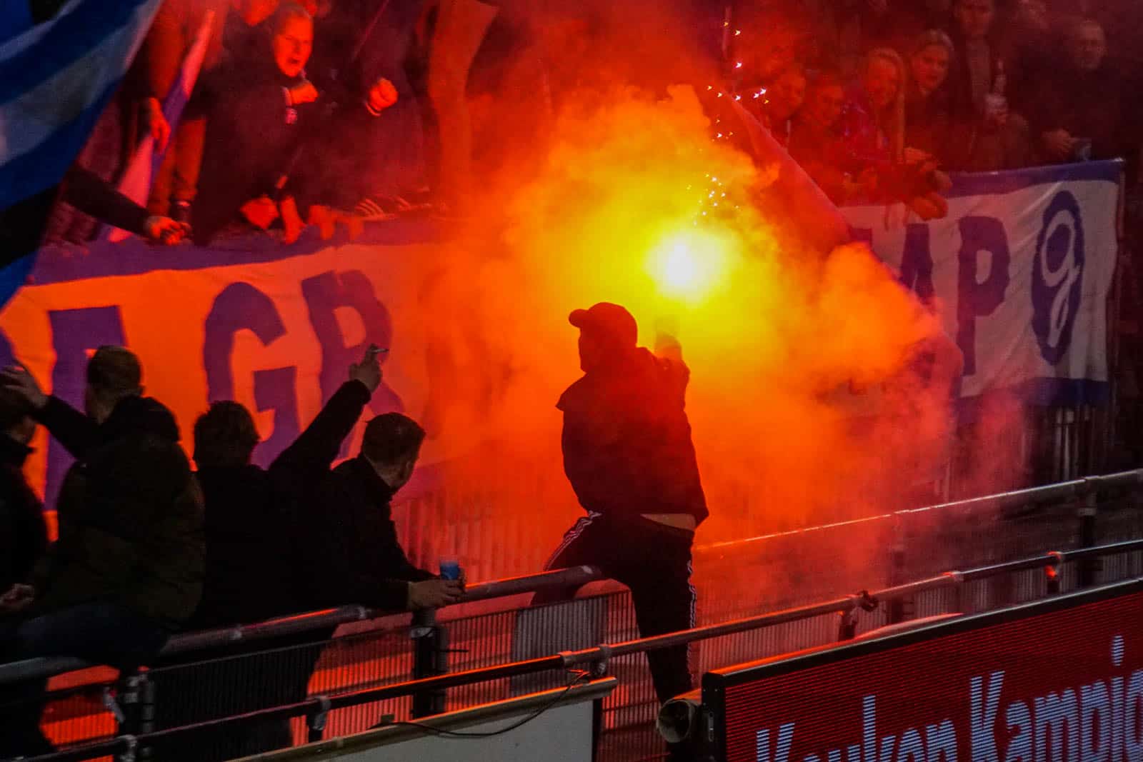 Maar ook muntjes, aanstekers en stoeltjes gaan richting het veld en de thuistribunes. Het is een grote chaos. Vuurwerk wat richting de spelers van De Graafschap, van wie enkelen ook hun kinderen mee hebben, wordt gegooid lijdt logischerwijs tot veel afkeuring vanuit het De Graafschap vak en sommige Graafschap-spelers lijken verhaal te willen halen. Het loopt met een sisser af en de supporters en spelers van De Graafschap vieren alsnog hun feestje, ondanks het woedende uitvak vlak ernaast.