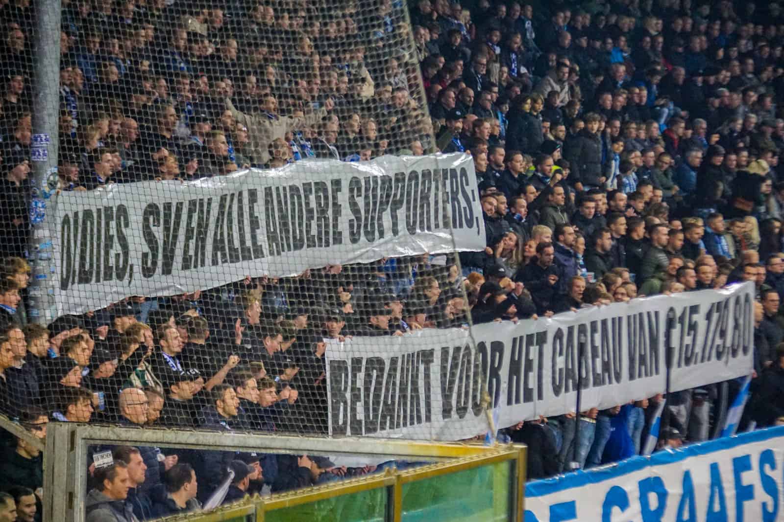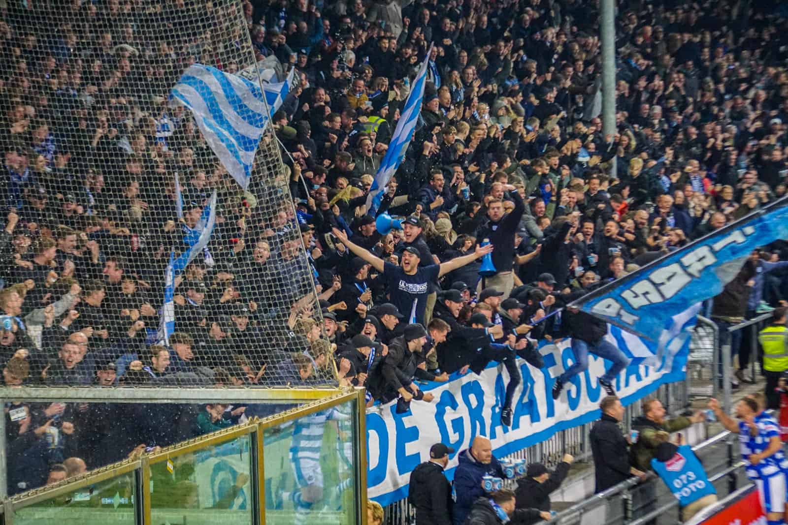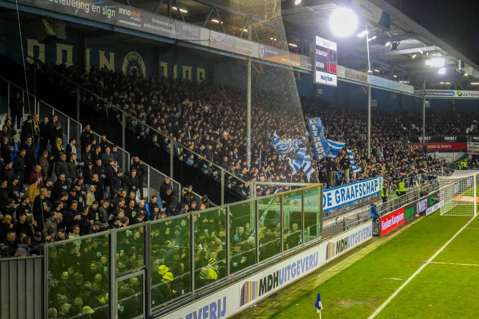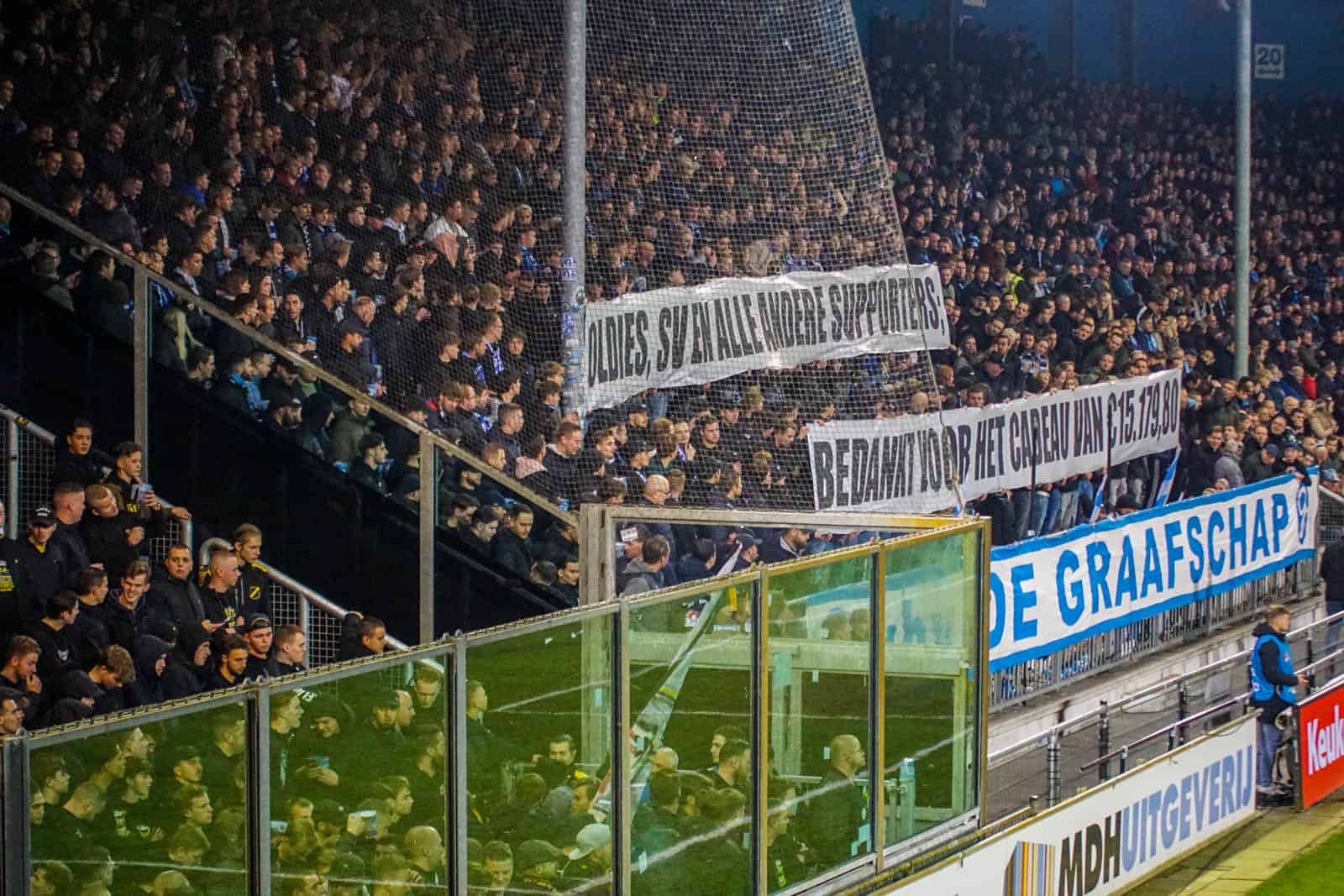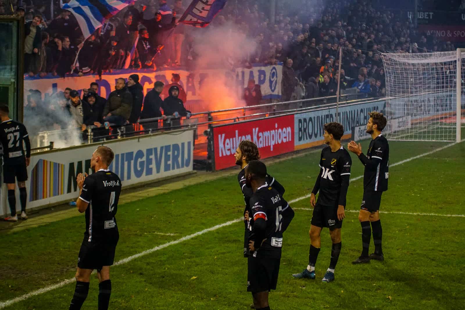 Waar het in de eerste helft vocaal bij vlagen aardig heen en weer gaat tussen de supporters van NAC en De Graafschap, is het in de tweede helft vooral blauw-wit wat de klok slaat. Op het veld neemt De Graafschap het heft in handen, wat zorgt voor een heerlijke interactie tussen spelers en supporters. In de 68e minuut leidt een blunder van de NAC-keeper uiteindelijk tot de verdiende openingstreffer. De spelers vieren het doelpunt natuurlijk bij de fanatieke supporters.