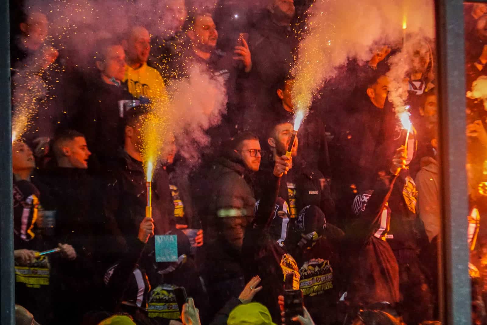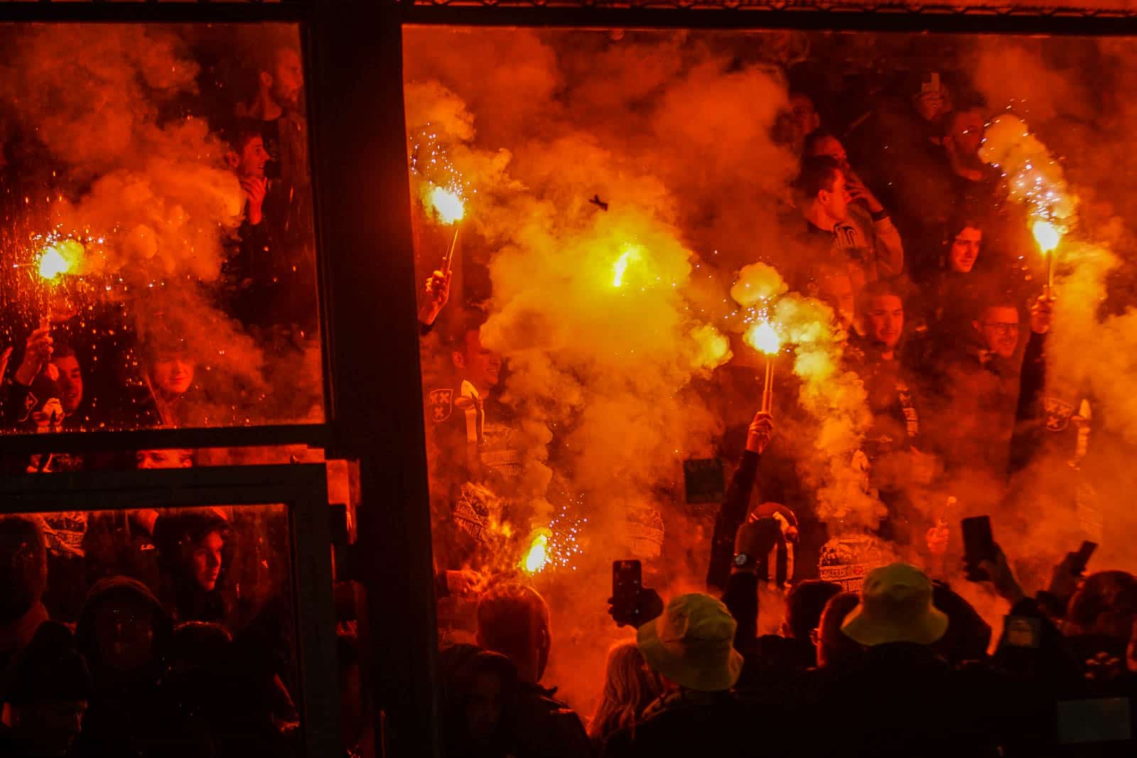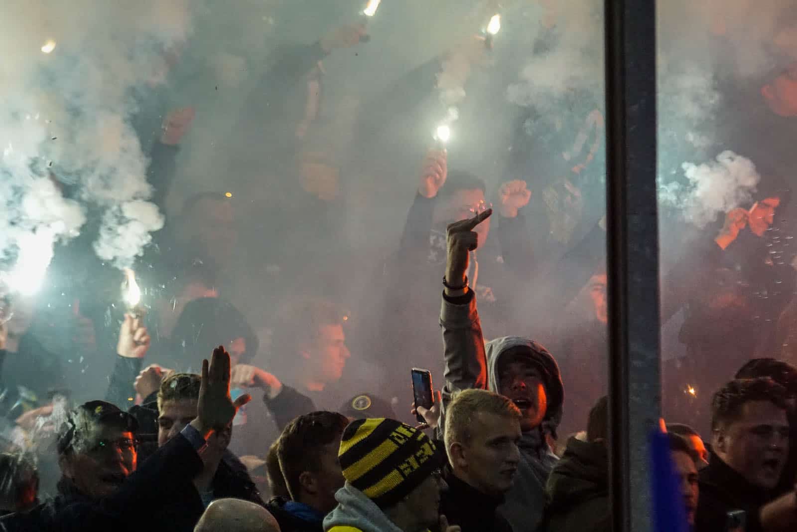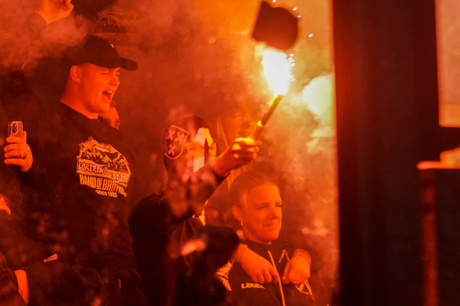 Ook buiten het stadion blijft het nog lang onrustig. Er stijgen vele rookpluimen op rondom het stadion en alles wat je hoort is het geluid van supporters die op ijzer rammen in de hoop uit te breken. Pas ver na het laatste fluitsignaal is de boel rustig en kunnen de supporters hun weg vervolgen richting huis. Zo komt er een einde aan een chaotische avond in Doetinchem, waarbij de 30-jarige vriendschap tussen NAC Breda en Lokeren weer een nieuw hoofdstuk heeft gekregen!