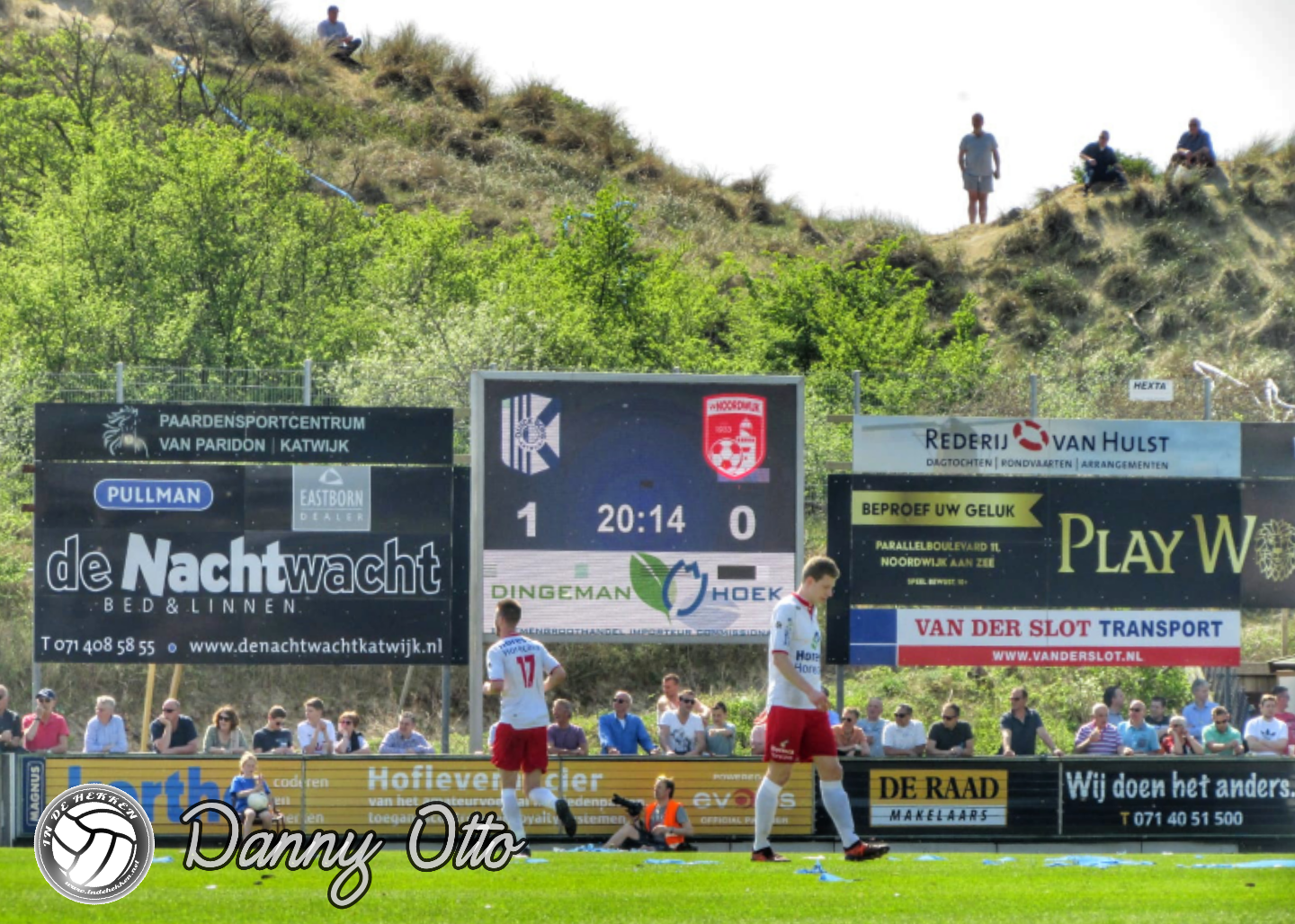Tien minuten voor de aftrap worden er karren het veld opgetrokken. Deze liggen vol met georganiseerd vuurwerk dat wordt afgestoken vlak voordat beide elftallen het veld oplopen. Vooral harde knallen laten de adrenaline door supportersharten stromen. Enkele supporters van Noordwijk steken wat pyro af en showen hun clubkleuren doormiddel van een confettikanon. De fanatieke supporters van Quick Boys zwaaien met blauw-witte vlaggen heen en weer en de sfeer zit er dan ook goed in!