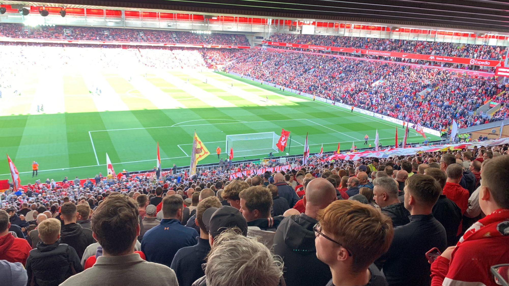 Probeer vooral kaarten op ‘De Kop’ op de kop te tikken. Al is dat niet eenvoudig om ertussen te komen. Check: weer een goed excuus. De Kop is de steile staantribune achter het doel en de kant waar de spelers van Liverpool graag de tweede helft naartoe spelen. De stoeltjes zitten verschrikkelijk en als je langer bent dan 1.50 meter dan weet je één ding zeker, je benen kan je niet fatsoenlijk kwijt.