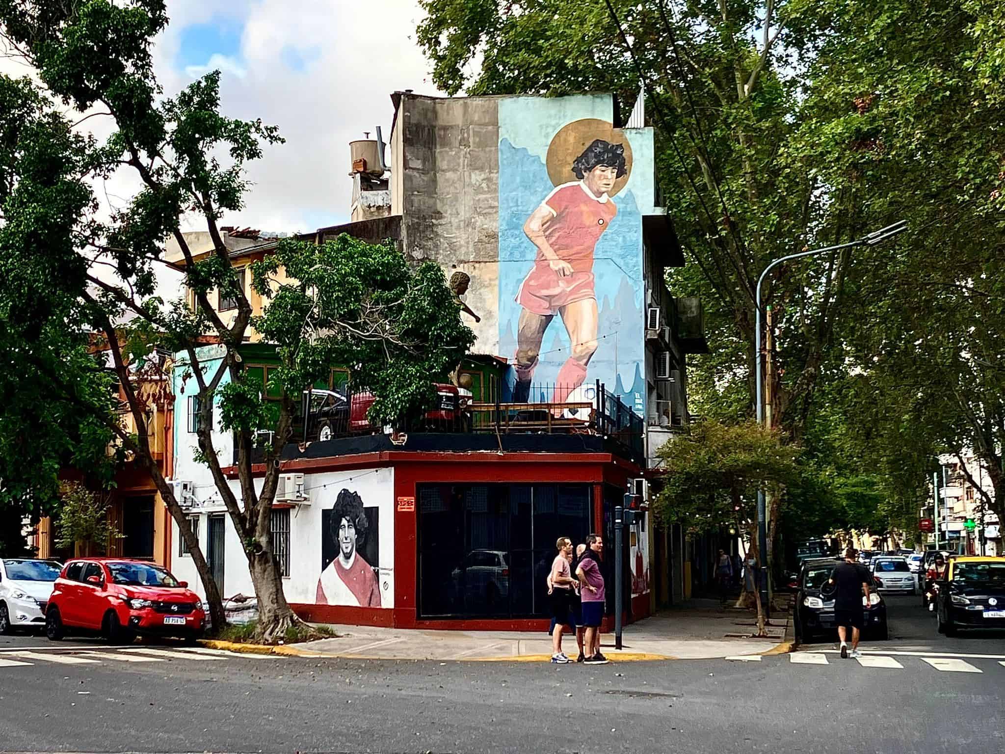 Onderweg naar het Estadio Diego Armando Maradona kom je op elke hoek van de straat murals van El Diez (De Tien) tegen. Streetart is sowieso een ding in Argentinië en Maradona en Las Malvinas (de Falkland-eilanden) zijn gewilde thema’s, maar hier zie je Maradona overal. En dat is niet gek, wetende dat hij hier in de jeugdopleiding speelde en, tussen 1976 en 1981, in het eerste elftal zijn carrier begon. De verering van El Diez lijkt na zijn overlijden alleen maar groter te zijn geworden. En ook al horen wij van veel Argentijnen dat Messi en Maradona net zo groot zijn, de muralstrijd wint El Diez nog ruim.
