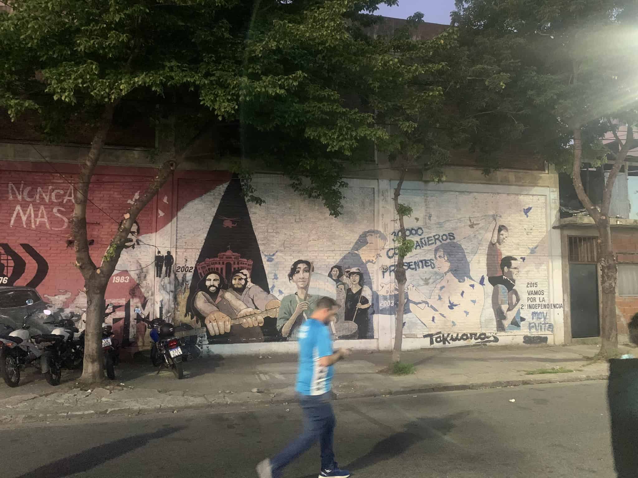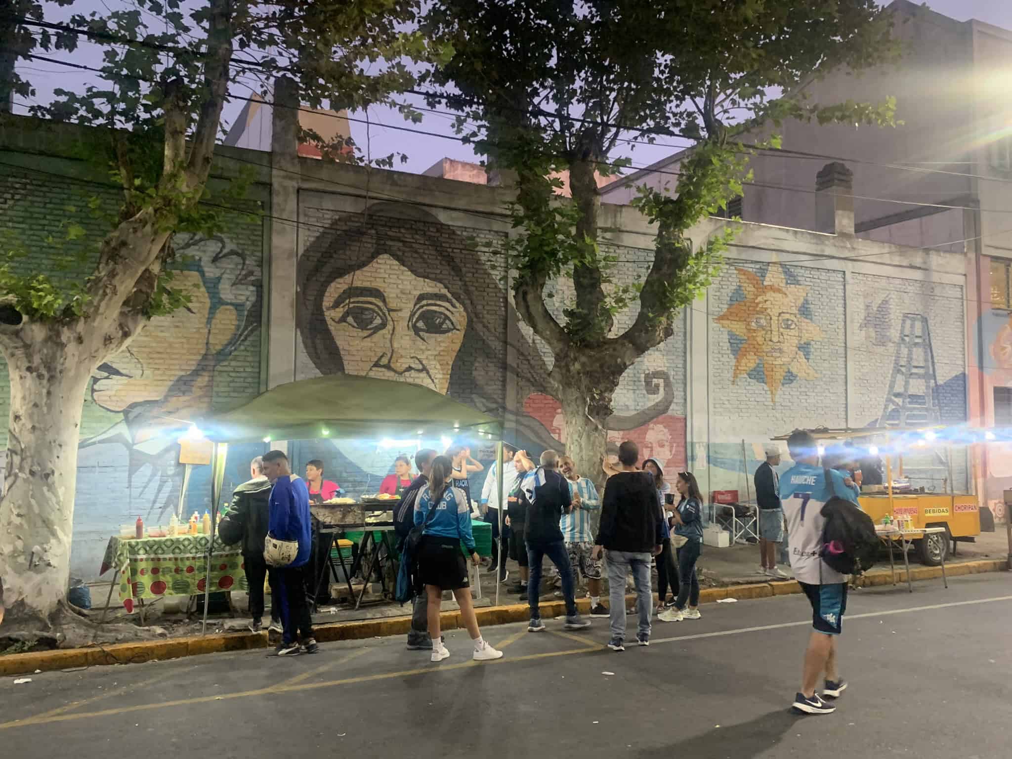 Bij veel stadions en clubs die we tot nu toe hebben bezocht, vertellen murals ons de geschiedenis van de club, de wijk en de politieke situatie. In Avellaneda zien we echter weinig echte clubmurals. De voornaamste reden is dat de grote rivaal, en de andere Grande uit Avellaneda, Independiente slechts tientallen meters verderop ligt. De meeste cafés verschieten dan ook geregeld van kleur. Zijn de barretjes en straten blauw als Racing speelt, een dag later kunnen ze bij een pot van Independiente gewoon weer rood zijn.