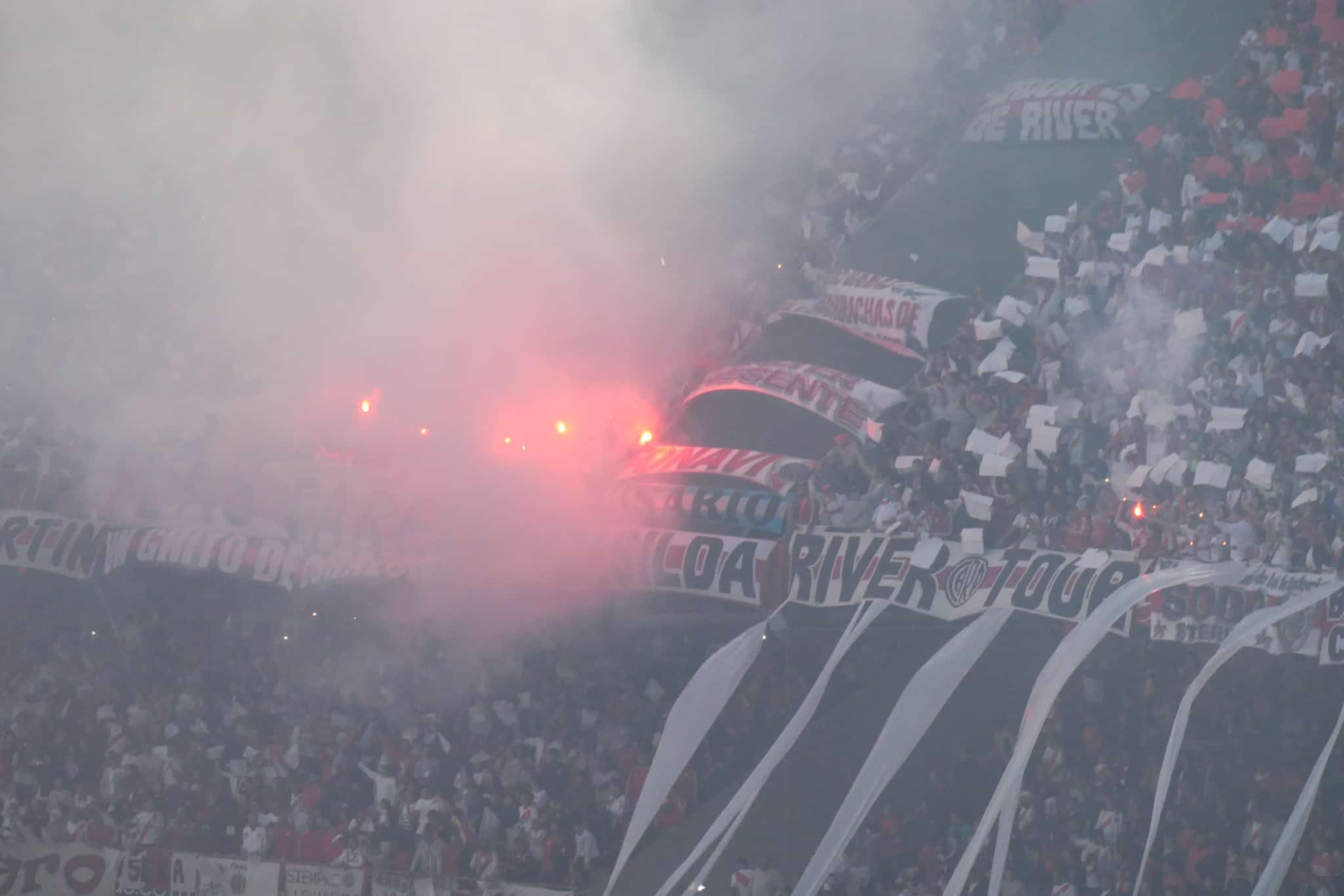 Het kan ook gewoon zijn dat ik te verwend ben. Want als dit stadion met bijna 70.000 fanatieke Argentijnen aanzet, gaat er een orkaan van geluid over Buenos Aires. Helemaal wanneer de ploegen het veld op komen. Een sfeeractie samen met vuurwerk en oorverdovend gezang vullen El Monumental. Dit is toch wel kippenvel. Daarentegen toch ook veel supporters met mobiele telefoons om alles te filmen. Toch een ander slag supporters dan dat ik bij Independiente zag. Daar voelde het wat rauwer, wat meet vanuit het hart. Bij de Superclásico leek ook meer nervositeit op de tirbunes te heersen. De overgebleven harde kern blijft het vuurtje maar opstoken, maar veel supporters lijken te gespannen om mee te gaan in de passie.