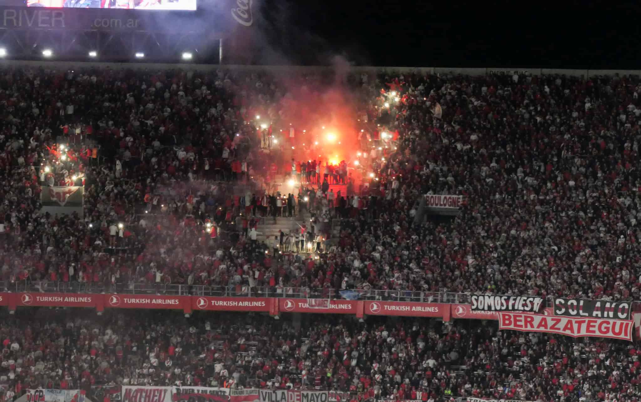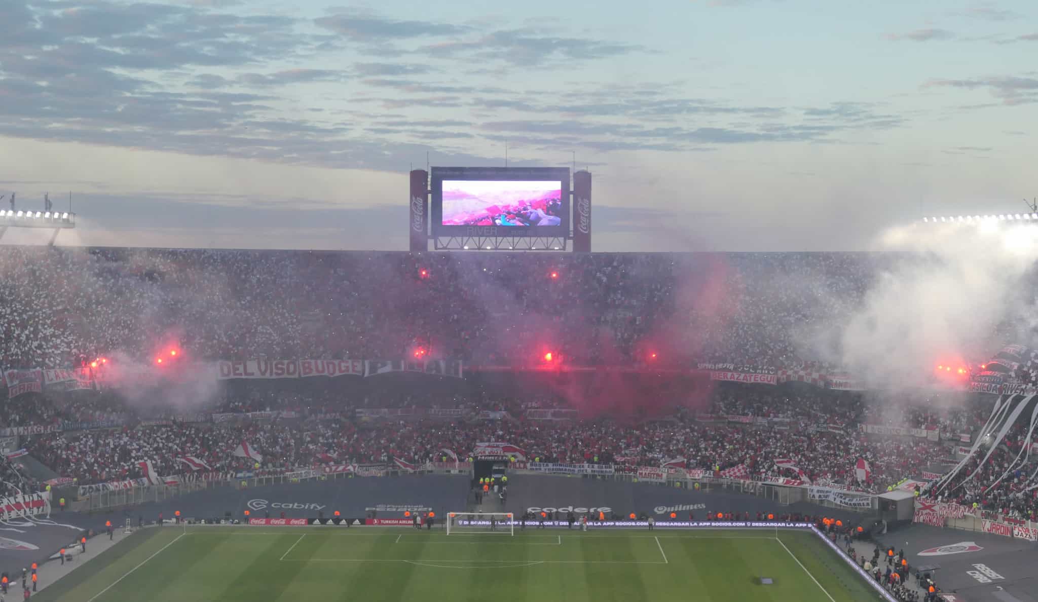 Hoeveel de supporters de aartsrivaal haten wordt duidelijk zodra de spelers van Boca de spelerstunnel in willen. De eerste krijgt een regen aan flesjes over zich heen. Het stadion verkoopt gewoon halve liter flesjes cola en water en dat zijn mooie projectielen als ze vol zijn. Zelfs vanaf de tweede ring vliegen ze massaal richting het veld.