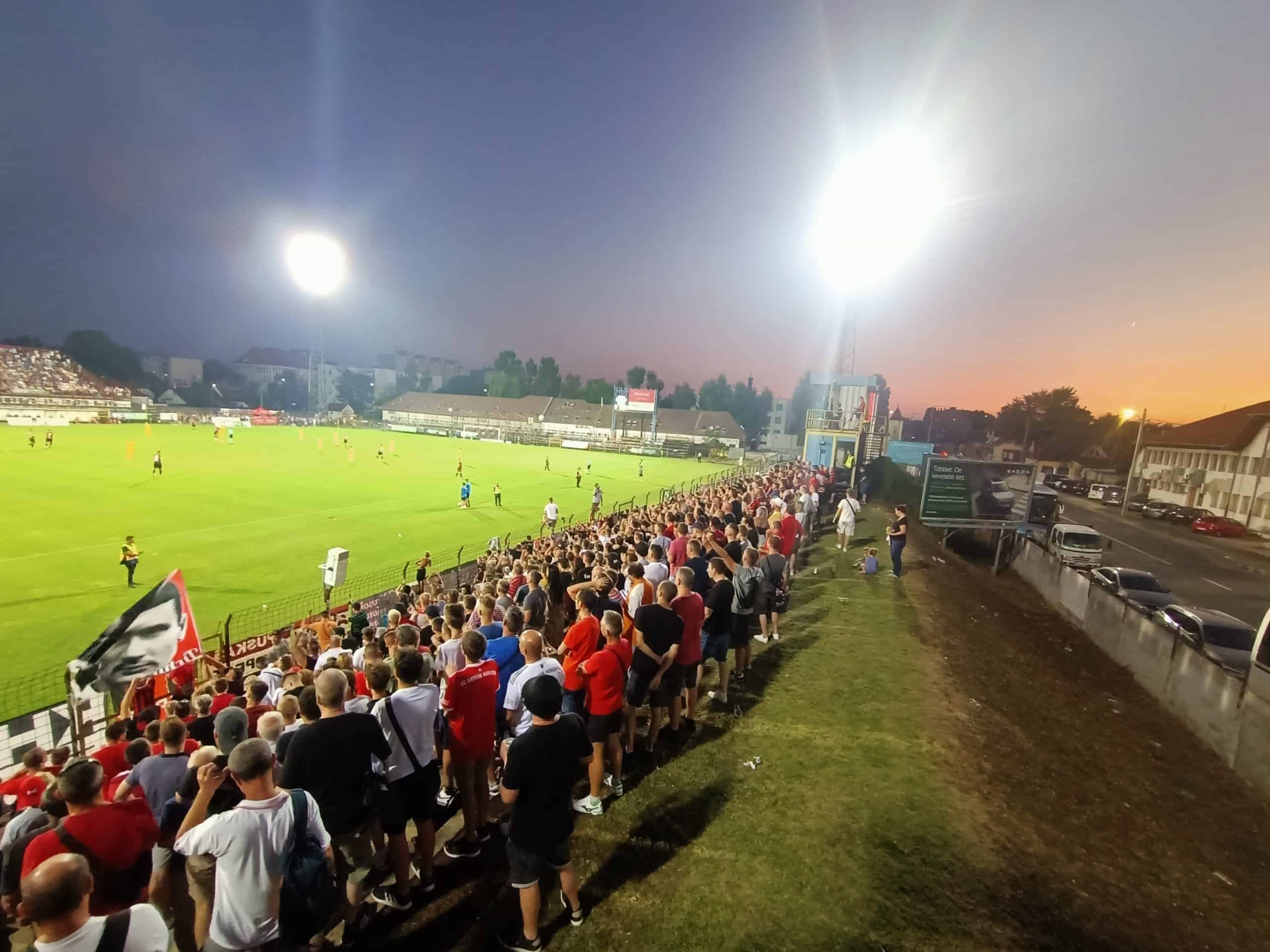 Ongeveer 1000 supporters hebben de reis van Budapest naar Siófok gemaakt. Honvéd krijgt daarbij steun uit Italië en Polen, want de vrienden van Chioggia en Widzew Łódź zijn mee. De thuisclub was voorbereid op deze enorme drukte en geeft daarom de hele lange zijde vrij. Dit betekent dat de South Coast Ultras Siofók zijn verplaatst naar de hoofdtribune, hun originele vak is vandaag van Honvéd. Hoe gek is het dat je fanatieke supportersvak wordt weggegeven aan de uitclub? Nu zijn enkel twee zijden van het stadion bezet, want de korte zijden zijn gesloten. Graag hadden we ook de houten tribunes vol met supporters gezien maar ach, het is genieten geblazen in dit iconische stadion waar weinig tot niets is gerenoveerd. Een zeldzaam fenomeen in Hongarije.