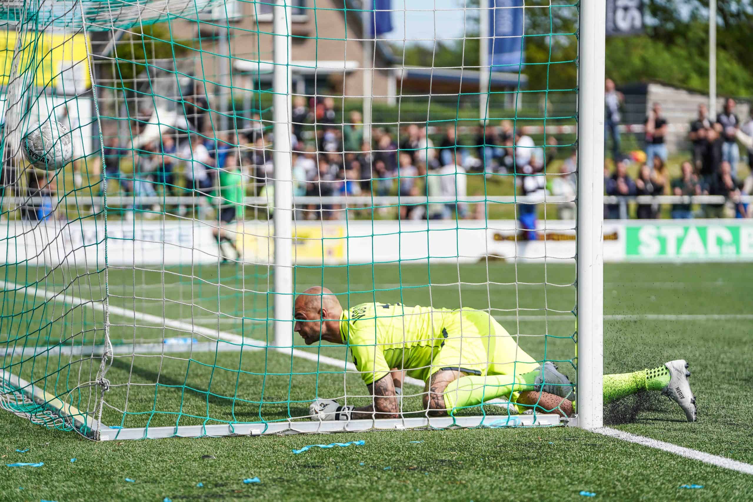Op het veld gaat de eerste helft vervolgens volledig tegen de verwachtingen in. Na een kwartier komt Veensche Boys door een slim lobje terecht op voorsprong. Hoewel de bal eerst nog van de lijn gehaald lijkt te worden, wordt het doelpunt dankzij een oplettende grensrechter wel gegeven. In het restant van de eerste helft laten de blauwen nog enkele kansen liggen om deze voorsprong te verdubbelen. Als de kleedkamers worden opgezocht in de rust lijkt er verder geen vuiltje aan de lucht voor de tweedeklasser.