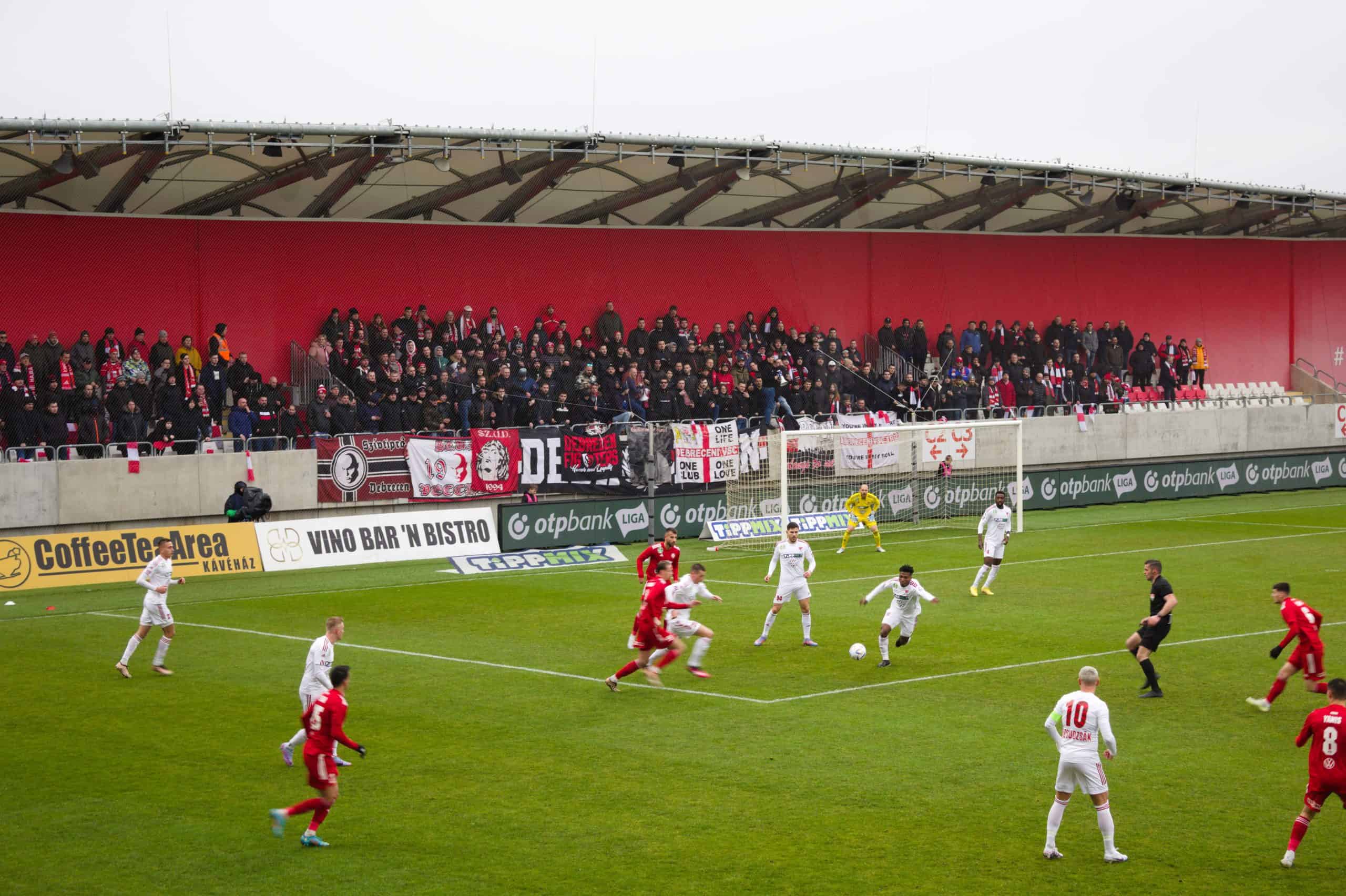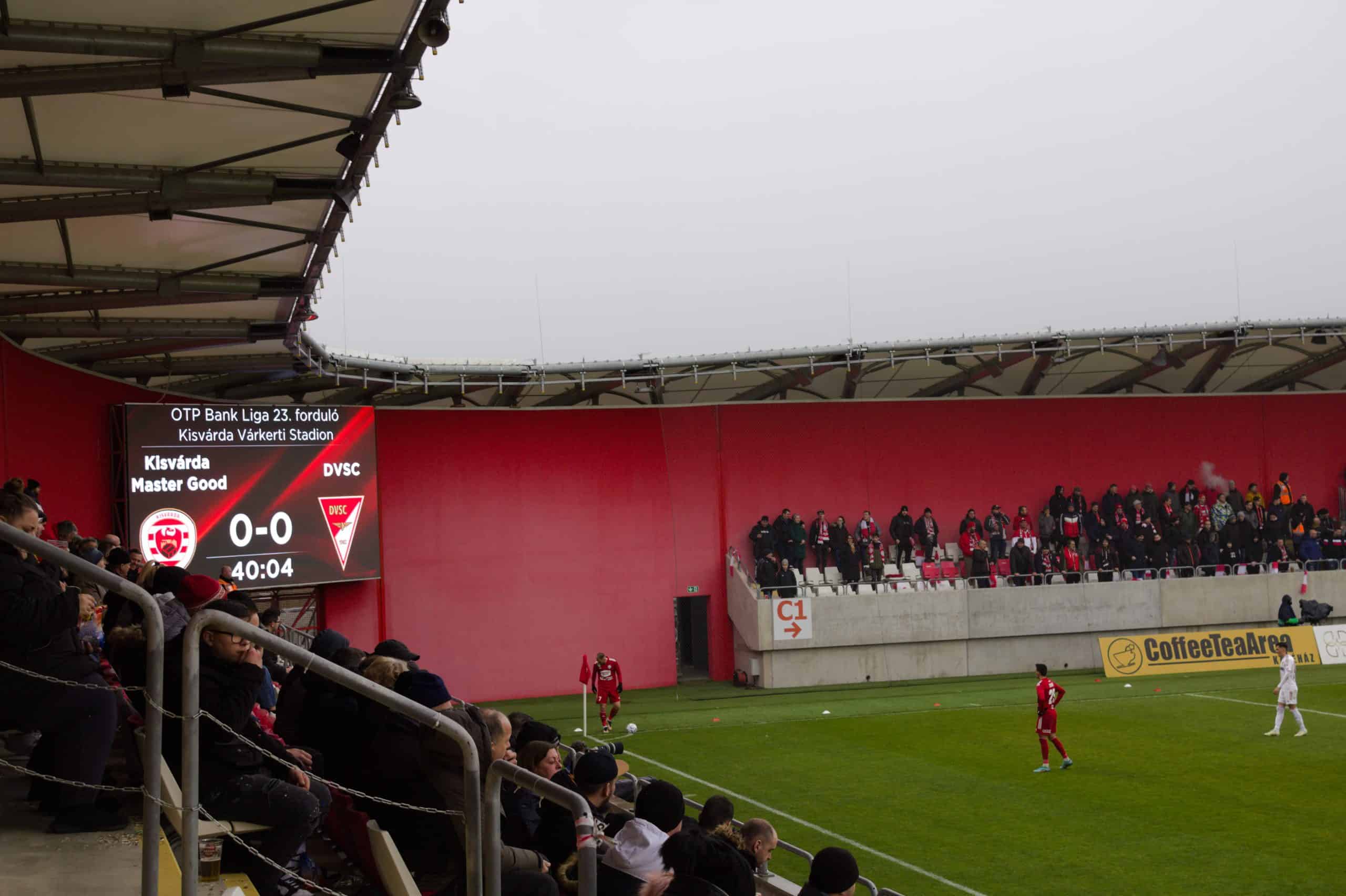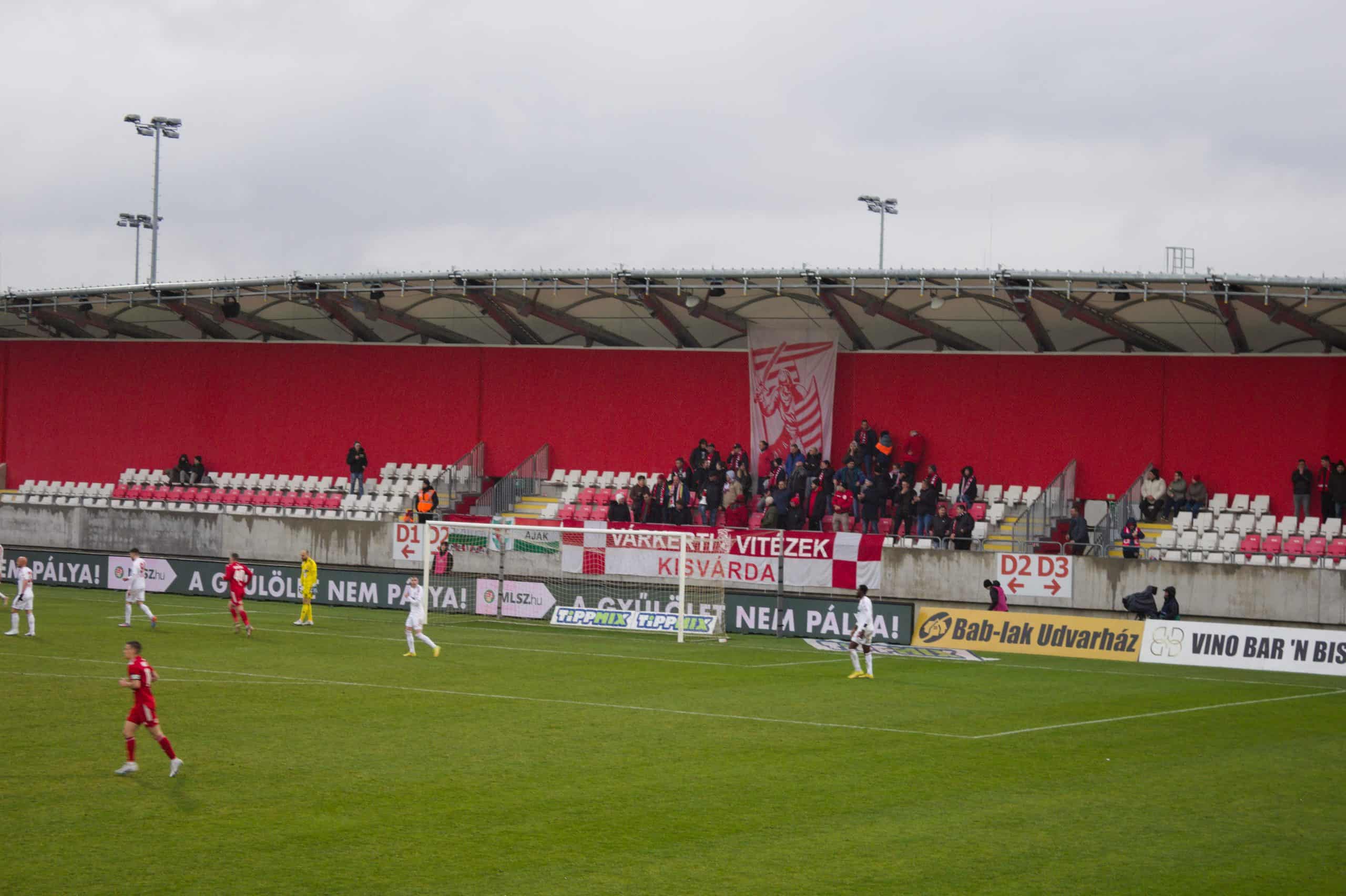 Dit seizoen speelt Kisvárda opnieuw een rol in de bovenkant van de competitie en is een Europese ticket mogelijk. Dat geldt ook voor Debrecen, het uitvak verwelkomt het team met een mooie sfeeractie. Kisvárda heeft een doek dat verwijst naar het kasteel verderop. Onder de leiding van (ex-PSV’er) Balázs Dzsudzsák overleeft Debrecen een stormachtige eerste helft. De thuisclub weet de kansen echter niet te benutten. De ultras van Debrecen laten zich de hele wedstrijd goed horen. Ze overstemmen elk geluid van de andere kant.