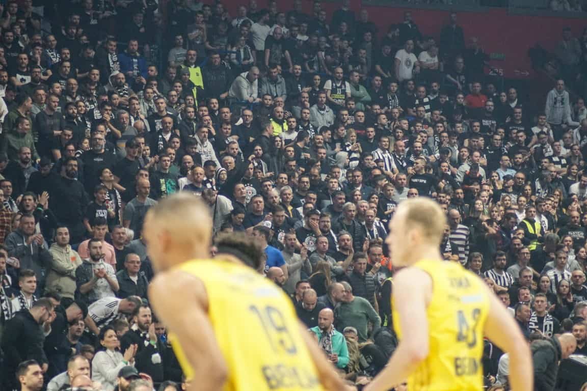 De wedstrijd van vandaag is er eentje in de Euroleague, de basketbalvariant van de Champions League. Tegenstander is Alba Berlijn, een Duitse club zonder echte support en de nummer laatst van de competitie (de Euroleague werkt in een grote competitie met ranglijst). Partizan zelf draait ondertussen goed bovenin mee dit seizoen. De Duitsers hebben zo op het eerste oog slechts één supporter meegenomen, een oude man in een basketbalshirtje. Geen hele aansprekende tegenstander dus.