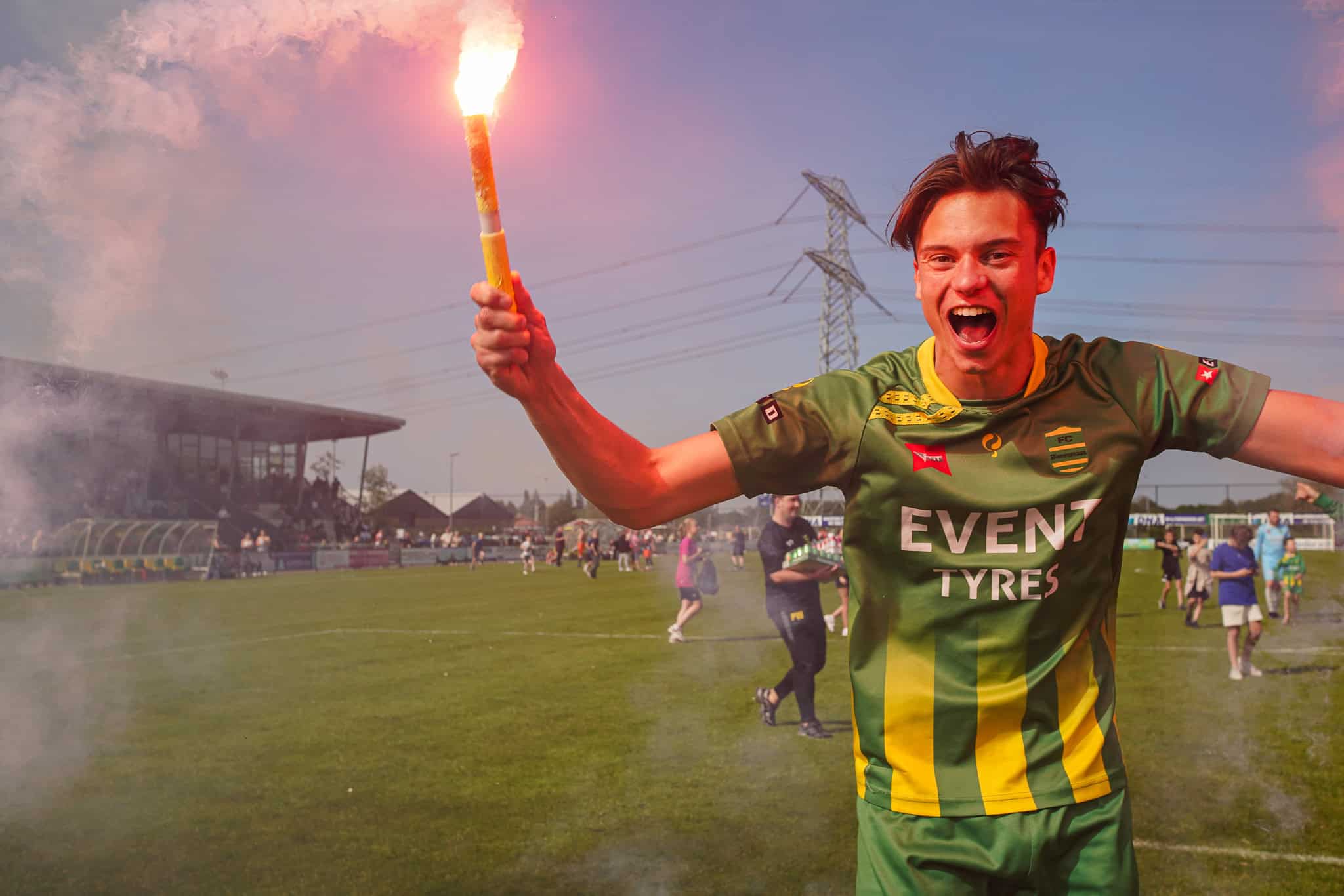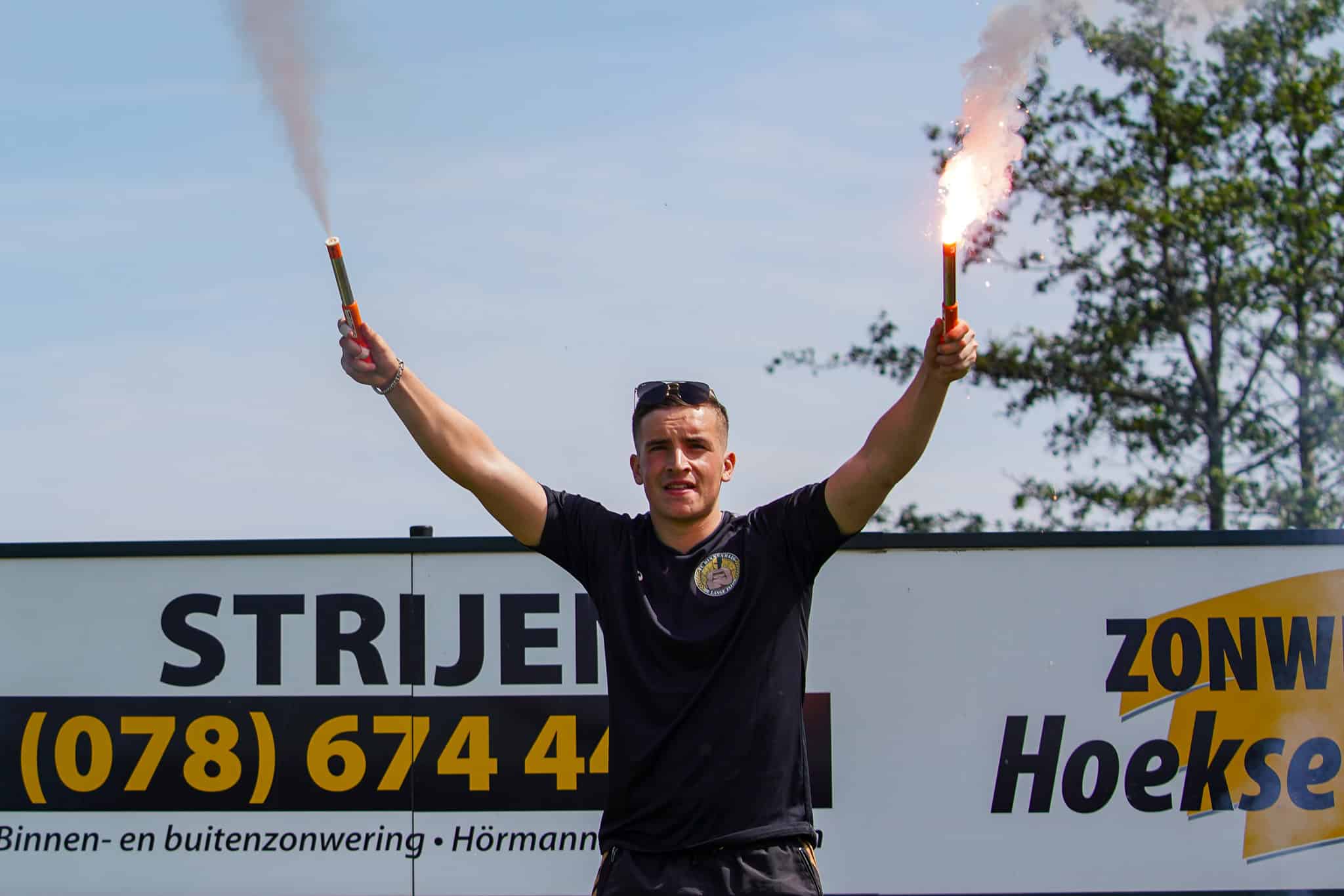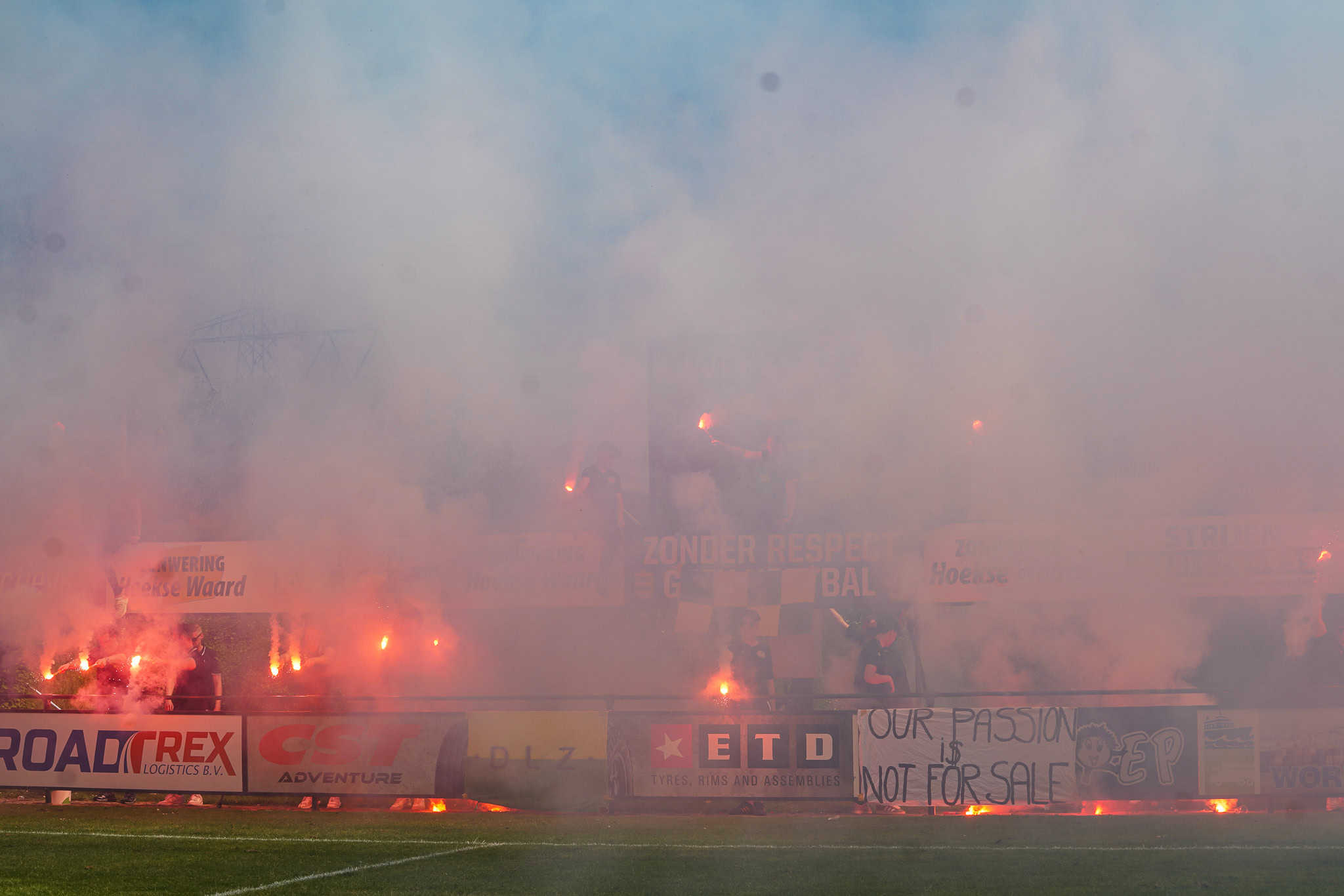 Aanleiding voor de Lange Zijde om weer groots te mobiliseren en iedereen te verzamelen voor een toffe sfeeractie. Er is al een spandoek klaargemaakt voor een eventueel kampioensfeest, maar met de onthulling van deze wordt nog even gewacht. Niemand heeft zin om een kampioensdoek weer op te moeten vouwen en volgende week weer opnieuw te gaan tonen. Niks zo erg als een prematuur feestje. Wel wordt er bij de opkomst groot uitgepakt met een fakkelshow over de hele lange zijde – passend met zo’n groepsnaam. Ongeveer 80 fakkels worden afgestoken waardoor het sportpark veranderd in een walm van rook en vuur.