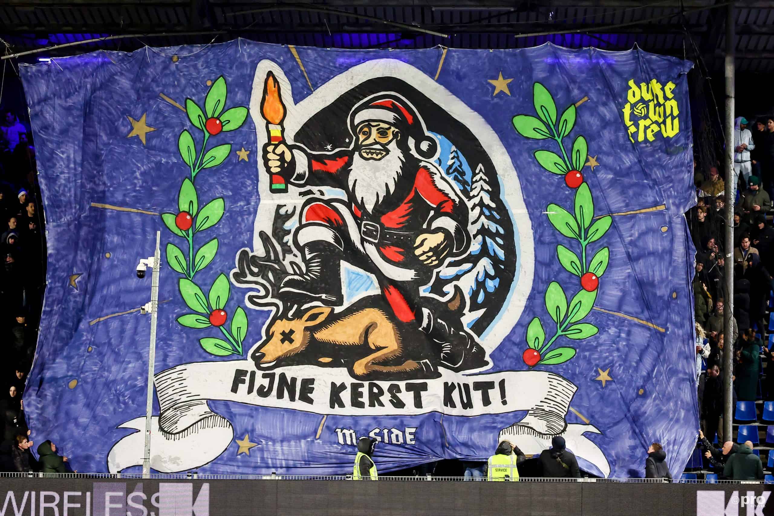 Sindsdien volgen voor de winterstop nog mooie pyro-acties in het uitvak bij FC Groningen en thuis tegen De Graafschap. Die laatste gaat vergezeld met een schitterend doek dat de bezokers ‘Welcome to the Dragon’s Den’ heet. Een week later volgt nogmaals een goed doek – wederom met creatieve insteek – in de vorm van ” fijne kerst kut” inclusief het hert van tegenstander Cambuur. De laatste twee spandoeken zijn kilometers beter dan de acties die de groep 2/3 jaar geleden deed. Ook hierin is een indrukwekkende ontwikkeling zichtbaar.