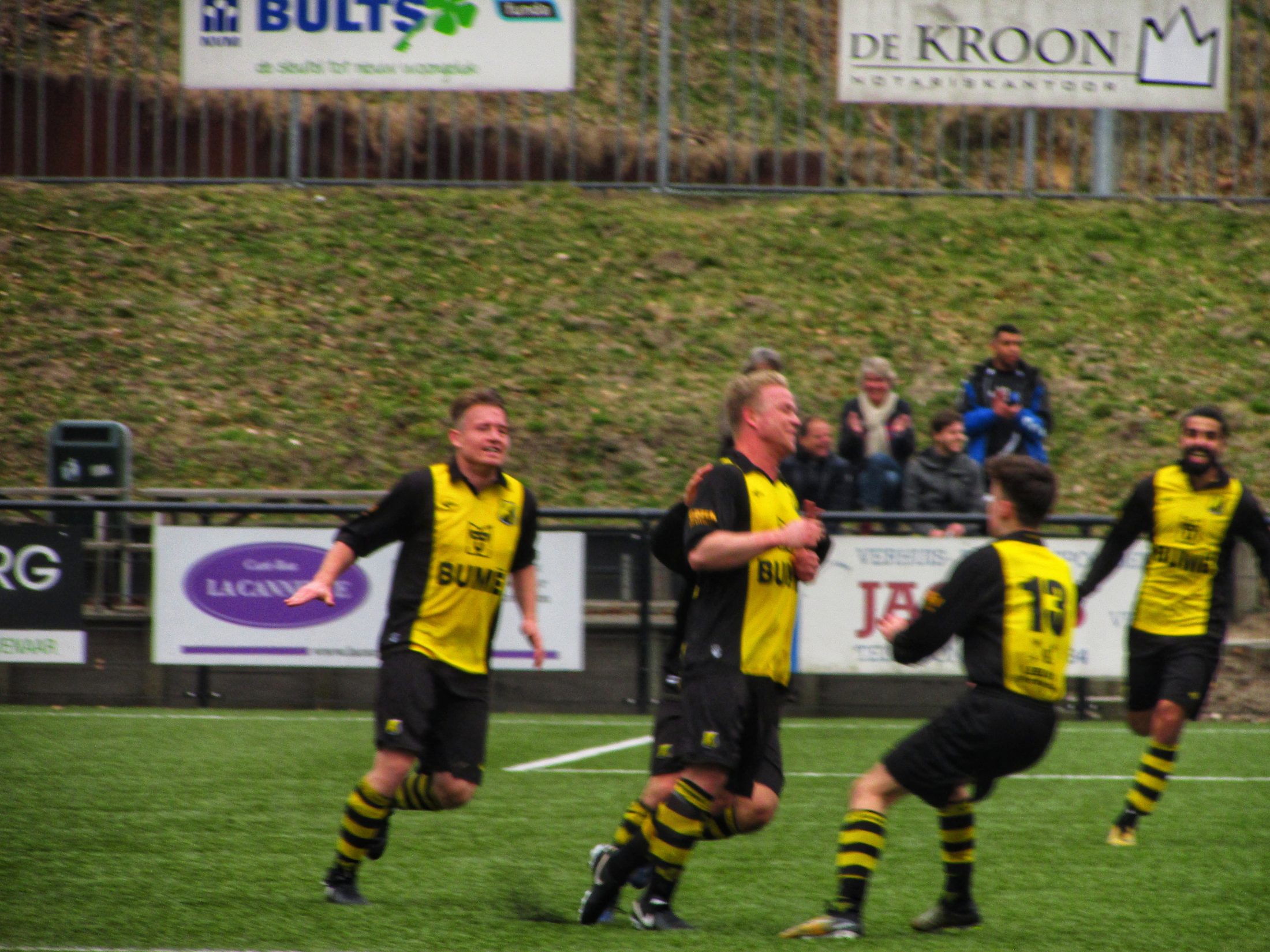 De wedstrijd sukkelt in de tweede helft wat voort. Met nog twintig minuten op de klok denk ik aan een kansloze nederlaag voor de bezoekers. Maar dan gaat het snel. De 2-1 valt, gevolgd door de 2-2 dik tien minuten voor tijd. VVO is het volkomen kwijt. Een bal verdwijnt nog op de lat, waarna SV Grol de 2-3 in de 94e minuut maakt. Einde wedstrijd zal je denken. Vanaf de aftrap een lange bal naar voren. Overtreding, vrije trap op een mooie positie. Het schot wordt van richting veranderd en valt binnen: 3-3! Wat een slotfase!