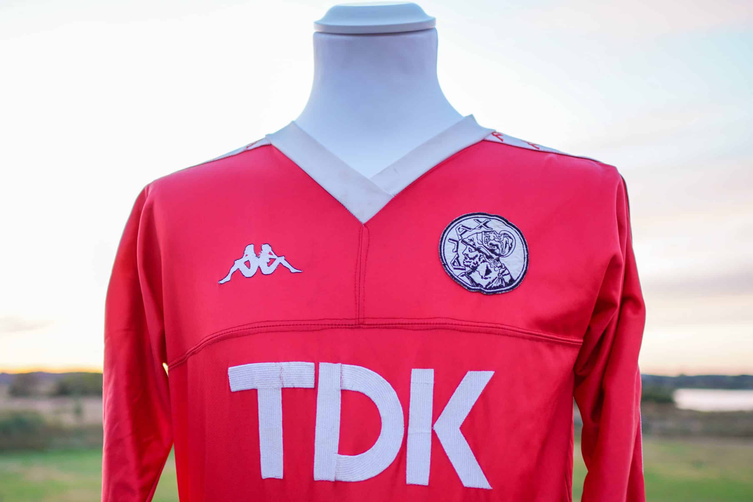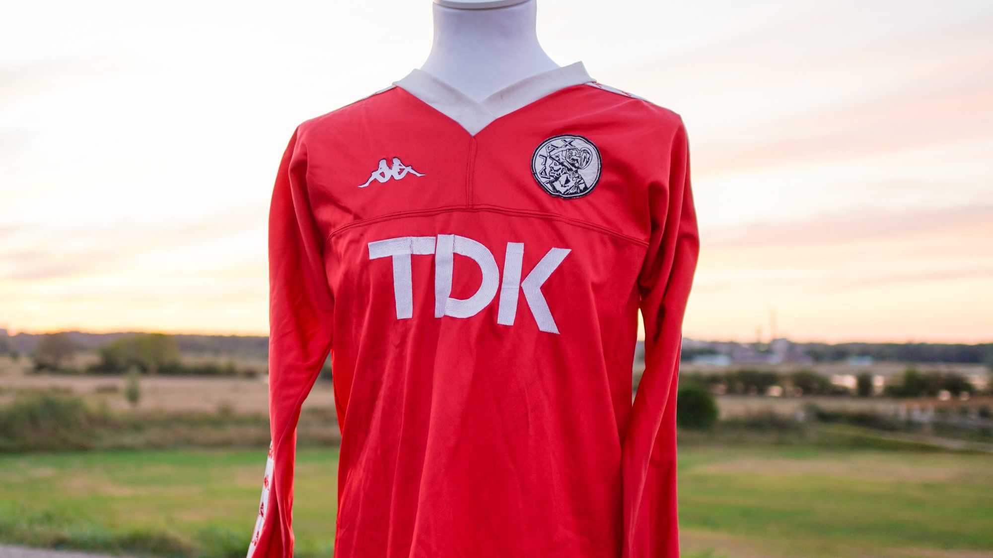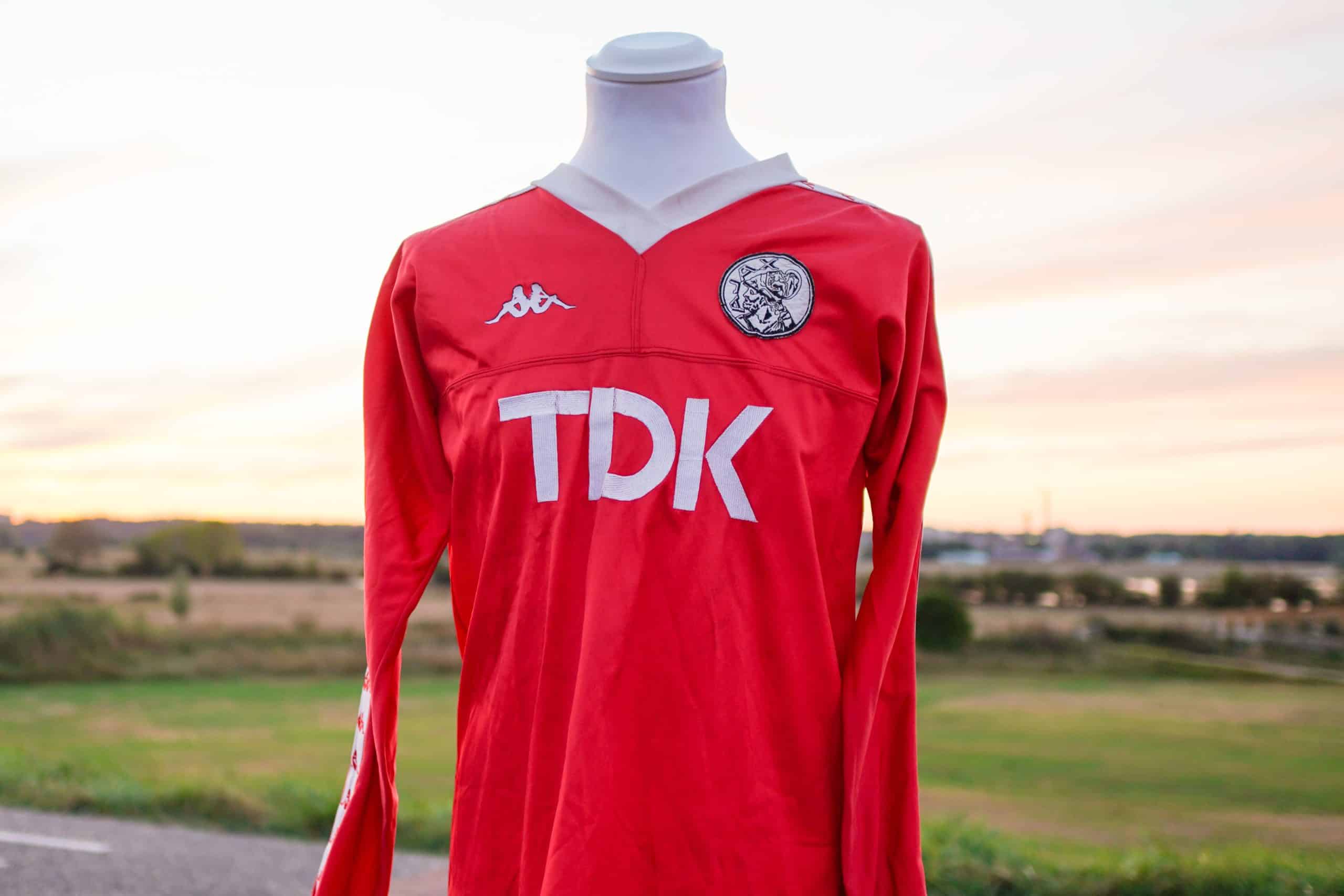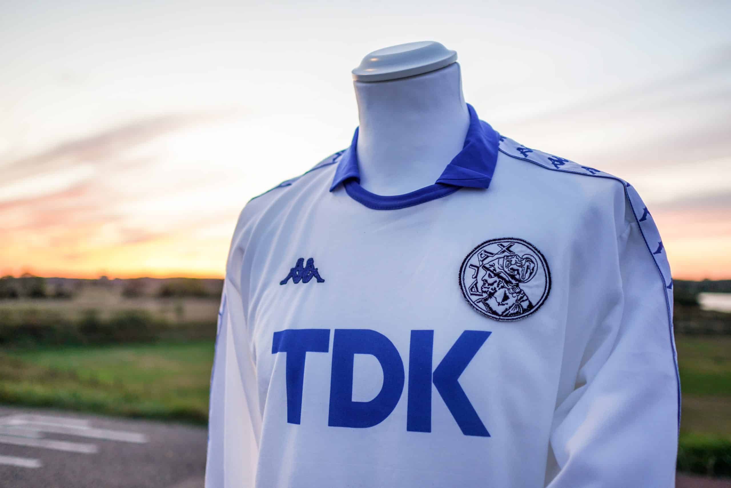 “Dit is nog zo’n schitterend shirt van Ajax. Wit met blauw en lange mouwen. Kappa in combinatie met TDK, één van de mooiste sponsors op een voetbalshirt ooit. Zonder twijfel een van de mooiste Ajax-shirts aller tijden.”