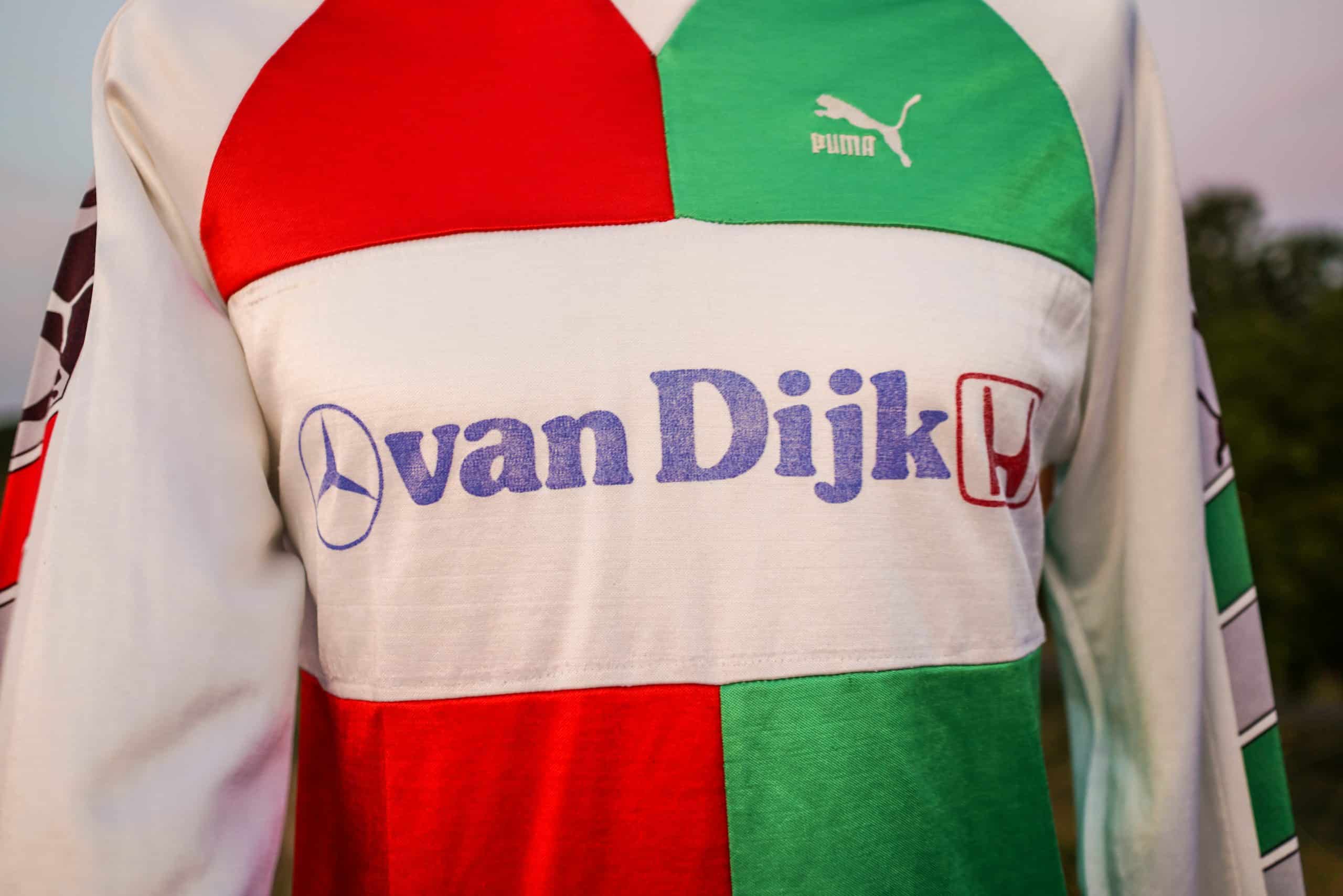 “SVV. De fusieclub (die in 1991 verder ging als Dordrecht’90) bestaat allang niet meer. Ik heb deze gekregen via een verzamelaar die ooit ergens een hele bult had opgekocht en geruild voor wat Ajax-spullen: mokken, bordjes… Dat werk. Dat was dan weer zijn verzameling – een schitterend museum aan Ajax-spulletjes in de achtertuin. Toen ik hem kocht zat er een andere sponsor overheen geplakt. Die heb ik heel voorzichtig weggehaald en toen kwam Mercedes- en Honda-dealer Van Dijk tevoorschijn. En nog in perfecte staat.”