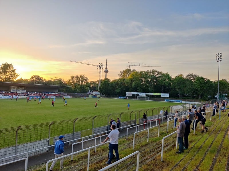 Na een hapje eten en een biertje lopen we richting het Rhein-Neckar-Stadion. Een prachtig oud stadionnetje waar alles nog zeer gemoedelijk is. Het contrast met het grote stadion van de grote rivaal er pal naast is bijzonder te noemen. Deze Kultbak, zoals wij het ter plaatse dopen, is de thuishaven van VfR Mannheim. In 1896 opgericht als Mannheimer Fussball Gesellschaft. In 1949 behaalde de club het hoogst haalbare en won men het Duits kampioenschap. Midden jaren ’70 werd er in dit stadion 2. Bundesliga gespeeld. Daarna ging het snel bergafwaarts. Momenteel speelt het team op het 6e niveau.