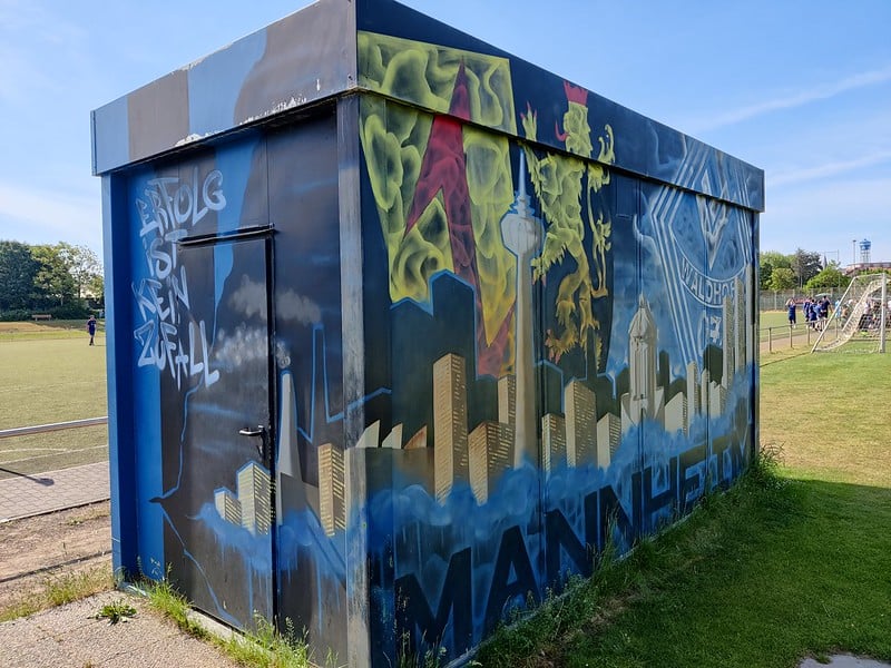 Zaterdag starten we rustig op en lopen we een stuk langs de Neckar en de sportterreinen. Op alle velden (en dat zijn er veel) zie je kinderen in blauw-rood-wit tenue. Je merkt dat VfR een grote club is en tevens opleidingsclub voor grote broer, maar vooral rivaal, Waldhof.