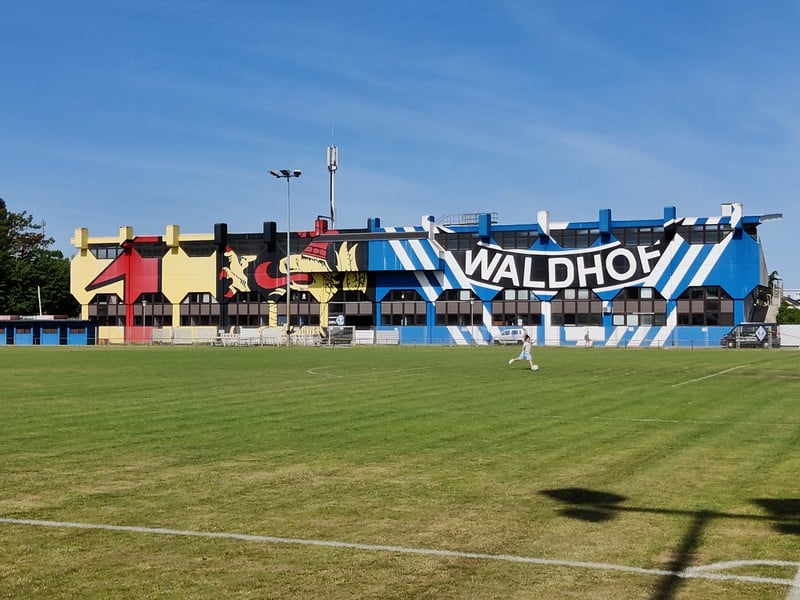 Zondagmorgen besluiten we even langs het stadsdeel Waldhof te rijden. Hier ligt de oorsprong van de club en ligt een prachtig trainingscomplex met een oude bak. In deze klassieke bak speelde Waldhof jarenlang zijn wedstrijden. Het is gebouwd in 1924, maar werd volledig verwoest tijdens de oorlog. Daarna werd het opnieuw opgebouwd en sindsdien biedt het plaats aan 15.000 toeschouwers. In 1996 werd de naam veranderd in Seppl Herberger Stadion, vernoemd naar de man die Duitsland in 1954 naar de eerste wereldtitel leidde. De jeugdteams van Mannheim spelen hier hun wedstrijden.