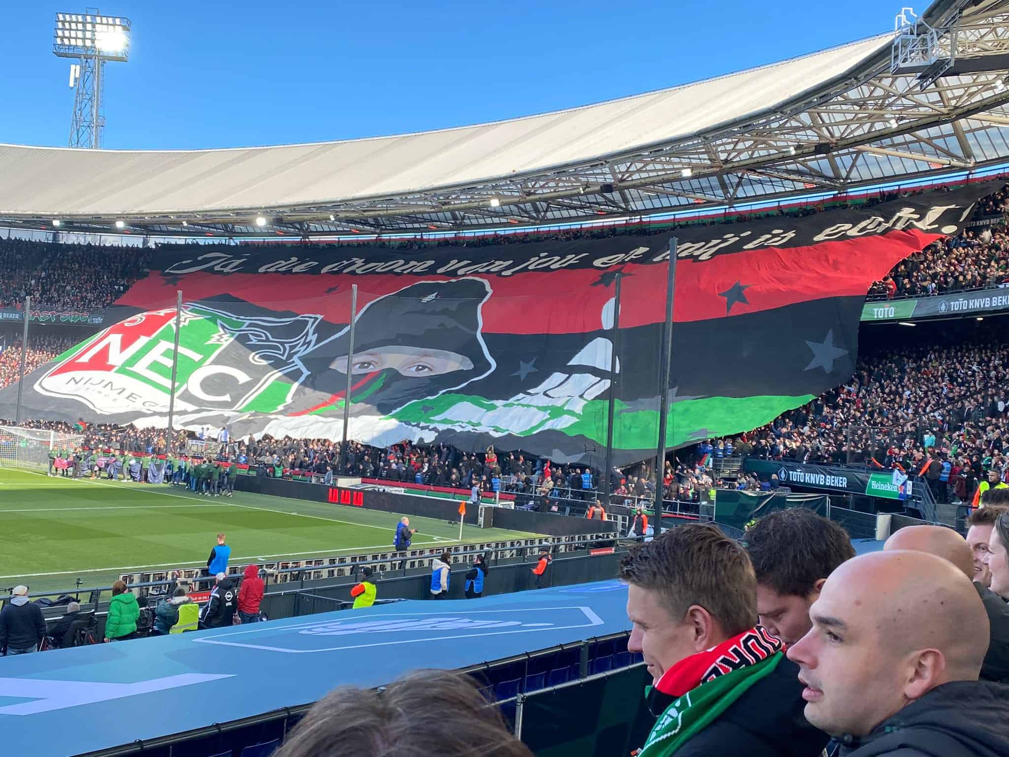 In de blessuretijd ging er aan Rotterdamse zijde nog één doek omhoog. Het doek met de tekst ‘Ja, zo gaat dat met die dromerij. Dromen gaan ook weer zo snel voorbij’ is stukje tekst van een lied van André van Duin en een reactie op de acties die NEC heeft gehad gedurende het bekertoernooi. Eerder hebben supporters van Feyenoord tientallen posters van André van Duin in Nijmegen opgehangen.