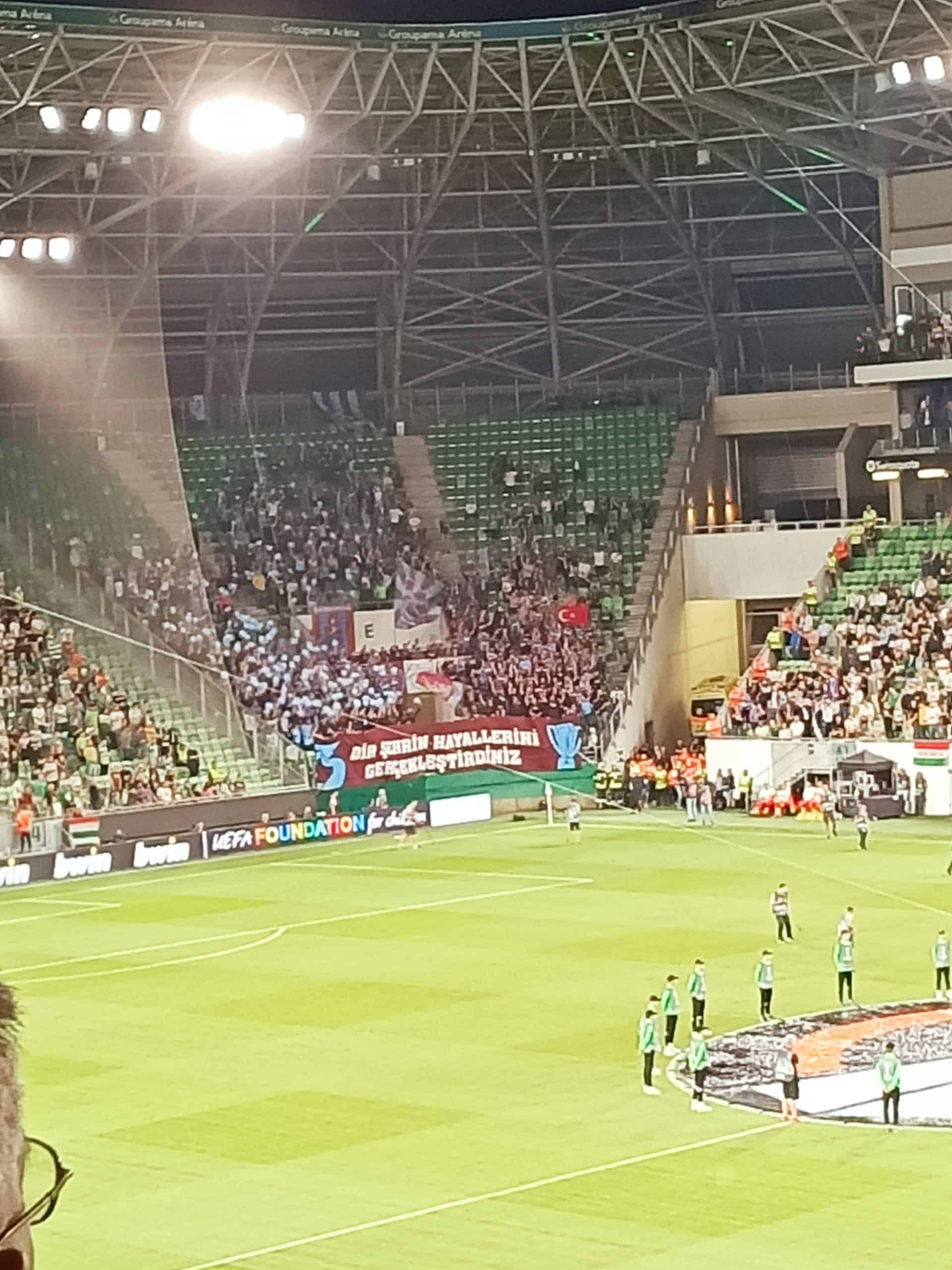 De eerste thuiswedstrijd is het de Turkse kampioen die op bezoek komt. Trabzonspor reist met grote namen af naar Budapest, onder meer Marek Hamšík, Stefano Denswil en Marc Bartra zijn mee. Ondanks de biometrische technologie is de Groupama Aréna vrijwel uitverkocht en is het de harde kern van Ferencváros die het Europese avontuur opent met een mooie tifo.