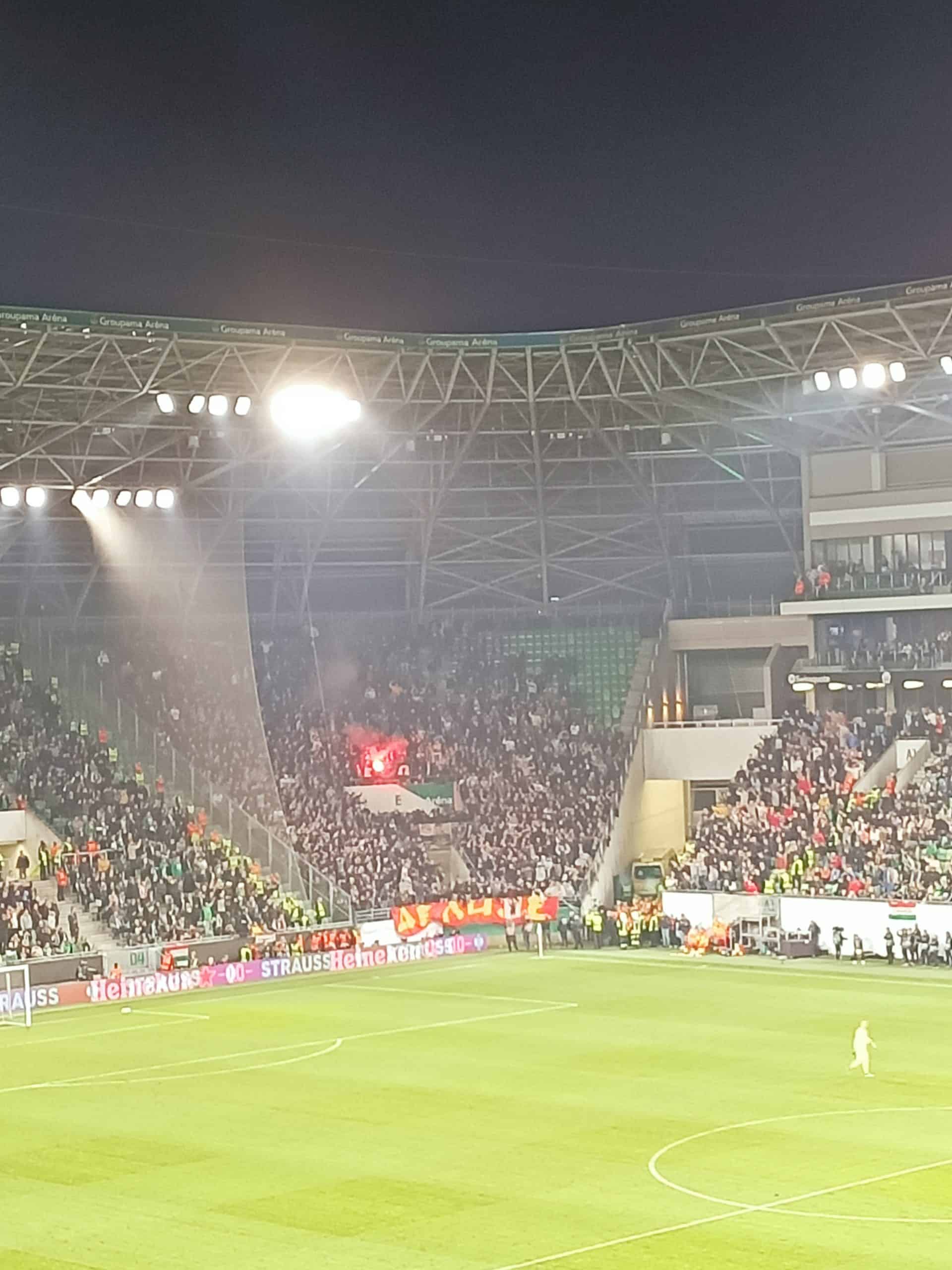 De volgende Europese avond staat garant voor meer spektakel op de tribunes, buurland Servië komt namelijk op bezoek. Voor de wedstrijd zijn we bij een van de ultra-pubs naast het stadion. Hier zijn vele tekenen van de innige vriendschap met het Poolse Śląsk Wrocław te zien, waarvan ook wat mensen aanwezig zijn. Ondertussen gaan er al heel wat zwarte rookbommen af en wordt het team toegezongen bij de pub. Eenmaal richting de ingang zien we opvallend veel ultras van Ferencváros met bivak, die richting de fanshop lijken te gaan.