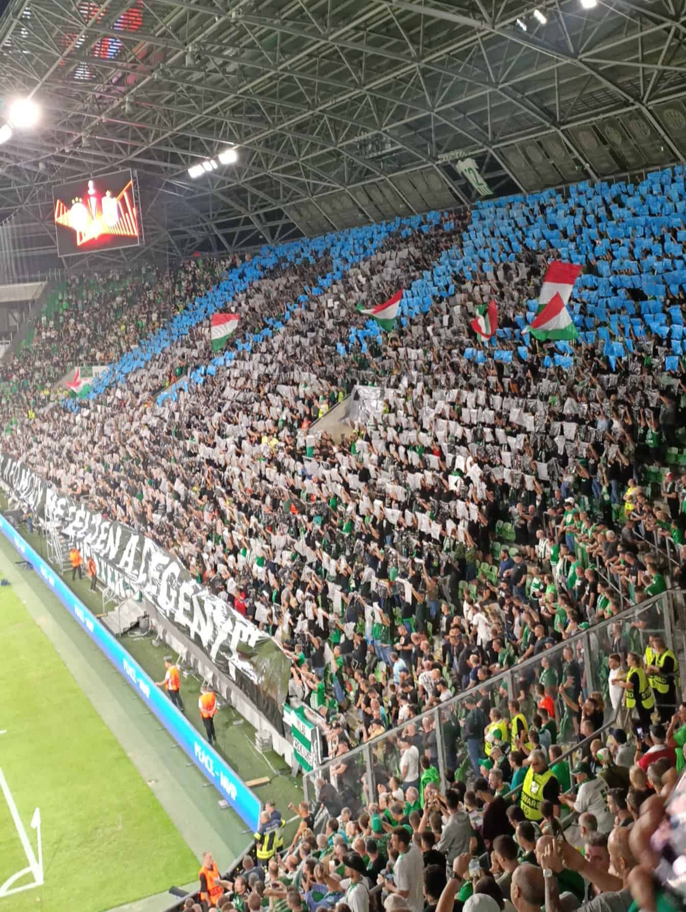De tifo beeldt de Hongaarse stad Eger uit en daaronder is een quote van schrijver Géza Gárdonyi te zien, afkomstig uit de populaire roman ‘Egri Csillagok’. De quote luidt: Az a fő, hogy ne féljen a legeny. Oftewel: het belangrijkste voor een man is om niet bang te zijn. De roman gaat over de gevechten tussen de Hongaren en Turken in de 16de eeuw, uiteindelijk gewonnen door de dappere Hongaren. De roman behoort tot een van de meest populaire boeken in Hongarije.
