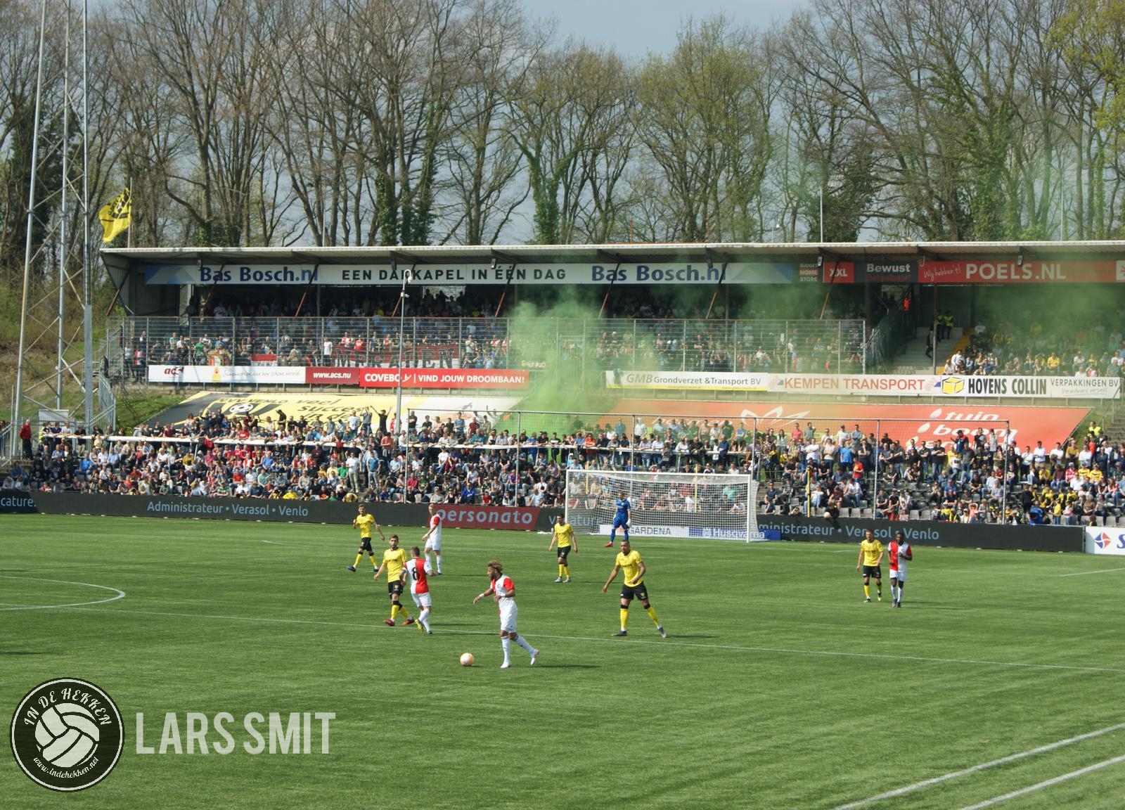 Vandaag zit het stadion volledig vol. Eigenlijk zelfs meer dan vol. De vakken onder het uitvak zijn normaal gesproken bedekt met een doek. Nu er een grote club op bezoek komt gooit VVV het echter wel open. Dan valt er meer geld te verdienen. Je mag zelf raden wie kaarten voor deze plekken onder het uitvak kopen. Echte supporters van de lokale voetbalvereniging zijn het in ieder geval niet. Het is zelfs zo erg gesteld dat er in dit vak een groene rookbom wordt afgestoken. Één minuut nadat deze rookbom is afgestoken staan er twee stillen bij de mannen van Los Venlocos. Die weten hoe groot de irritatie bij de groep is wat betreft uitsupporters op de thuisvakken.