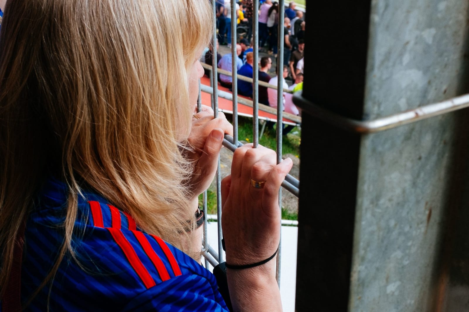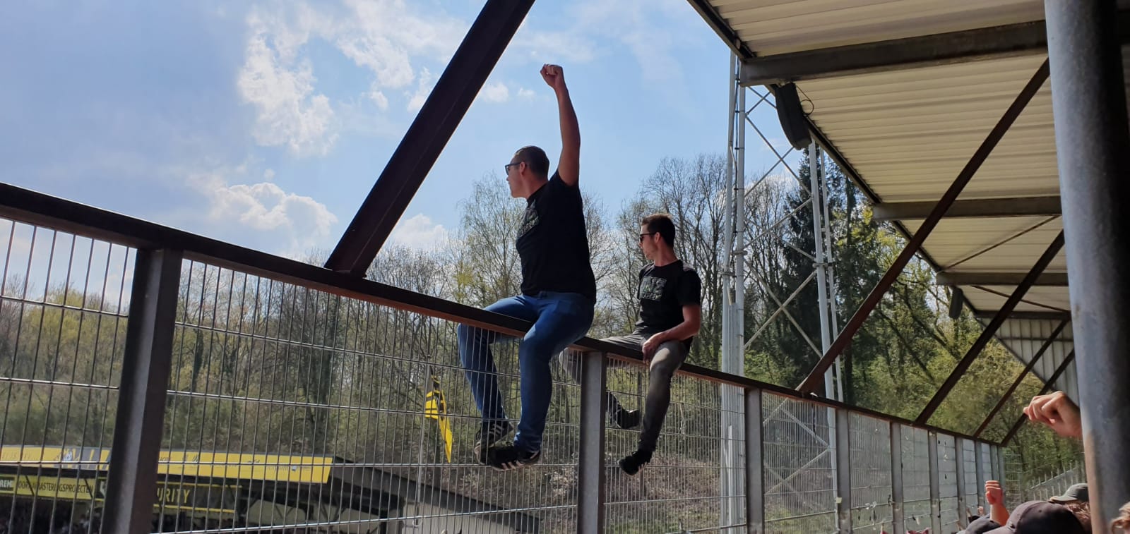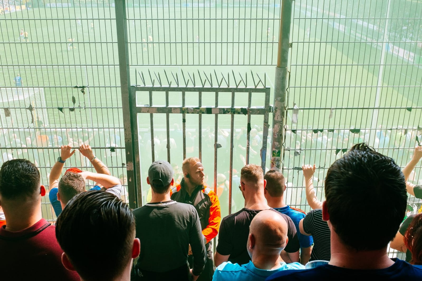Afijn, de wedstrijd staat op punt van beginnen. Het kan aan de hoeveelheid pils liggen of aan het zonnetje, maar de sfeer zat er redelijk lekker in. Uiteindelijk mochten we drie keer de old school hekken in. Na de tweede keer vond onze zwaar incapabele hoofd steward weer nodig om paniek te schoppen. Meneer vond dat niemand meer de hekken in mocht gaan, anders zou er een officiële waarschuwing volgen. Drie keer raden wat er bij de 0-3 gebeurden…