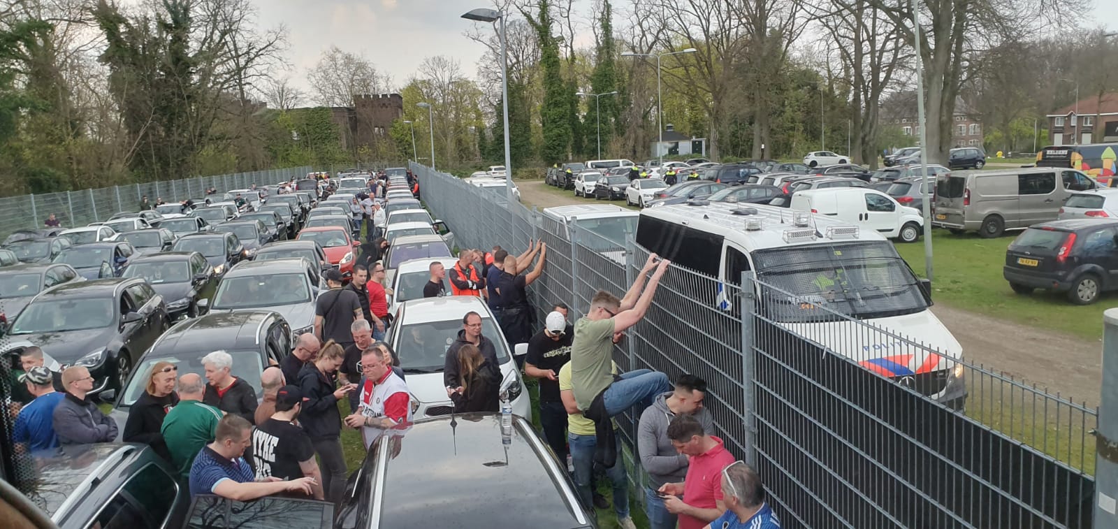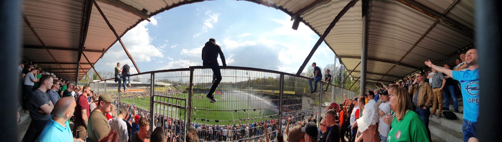 Uitsupporters hoeven zich vandaag niet te melden bij een omwisselpunt. De enige beperking die we krijgen opgelegd is dat we niet met het openbaar vervoer mogen komen. Vreemd, want ook dit weekend trokken weer vele provinciale Feyenoorders met de trein naar Venlo. Het is heerlijk lenteweer en dus zitten we met koude blikken pils, in de trein, de kater weg te drinken.