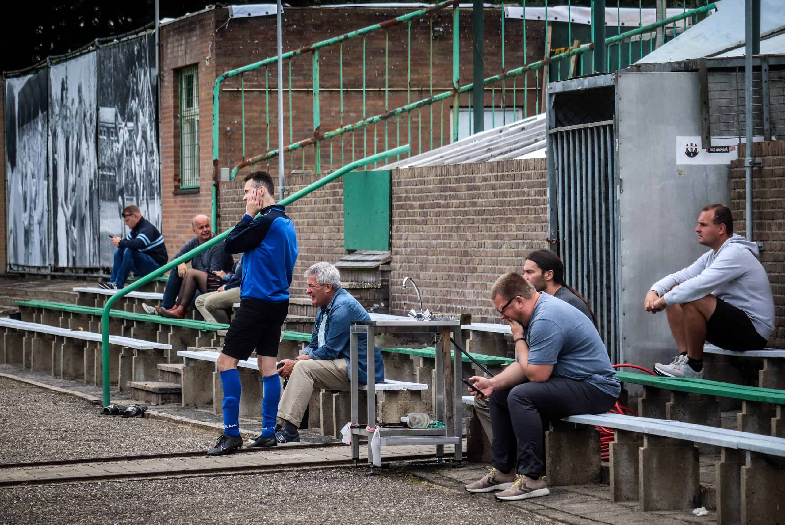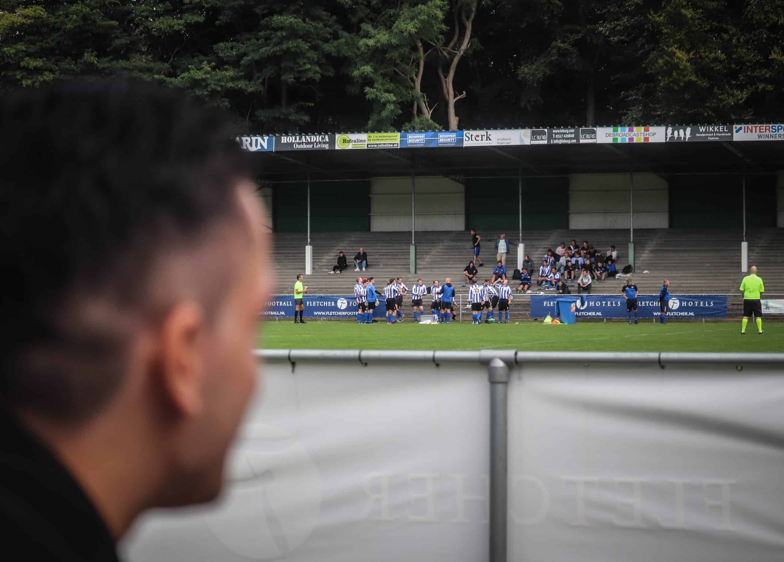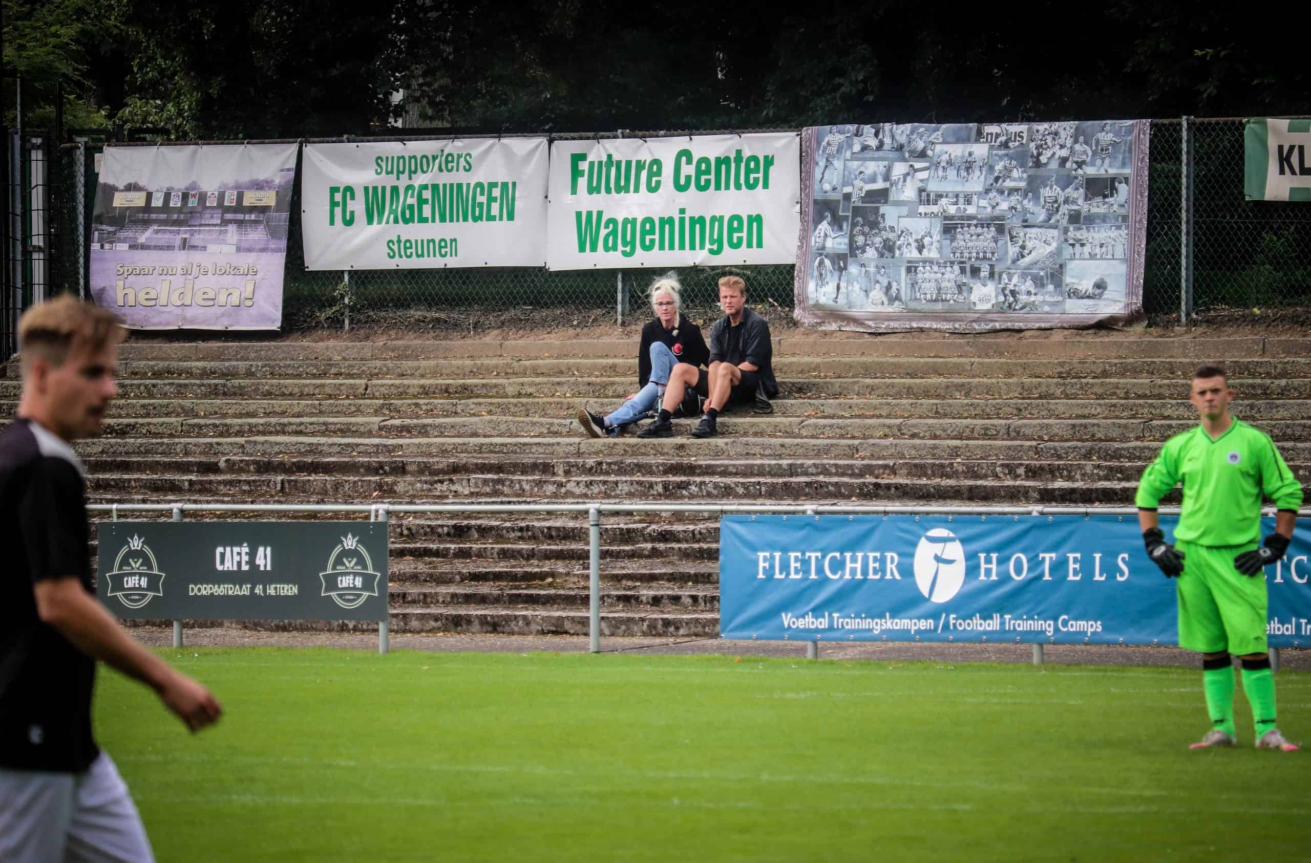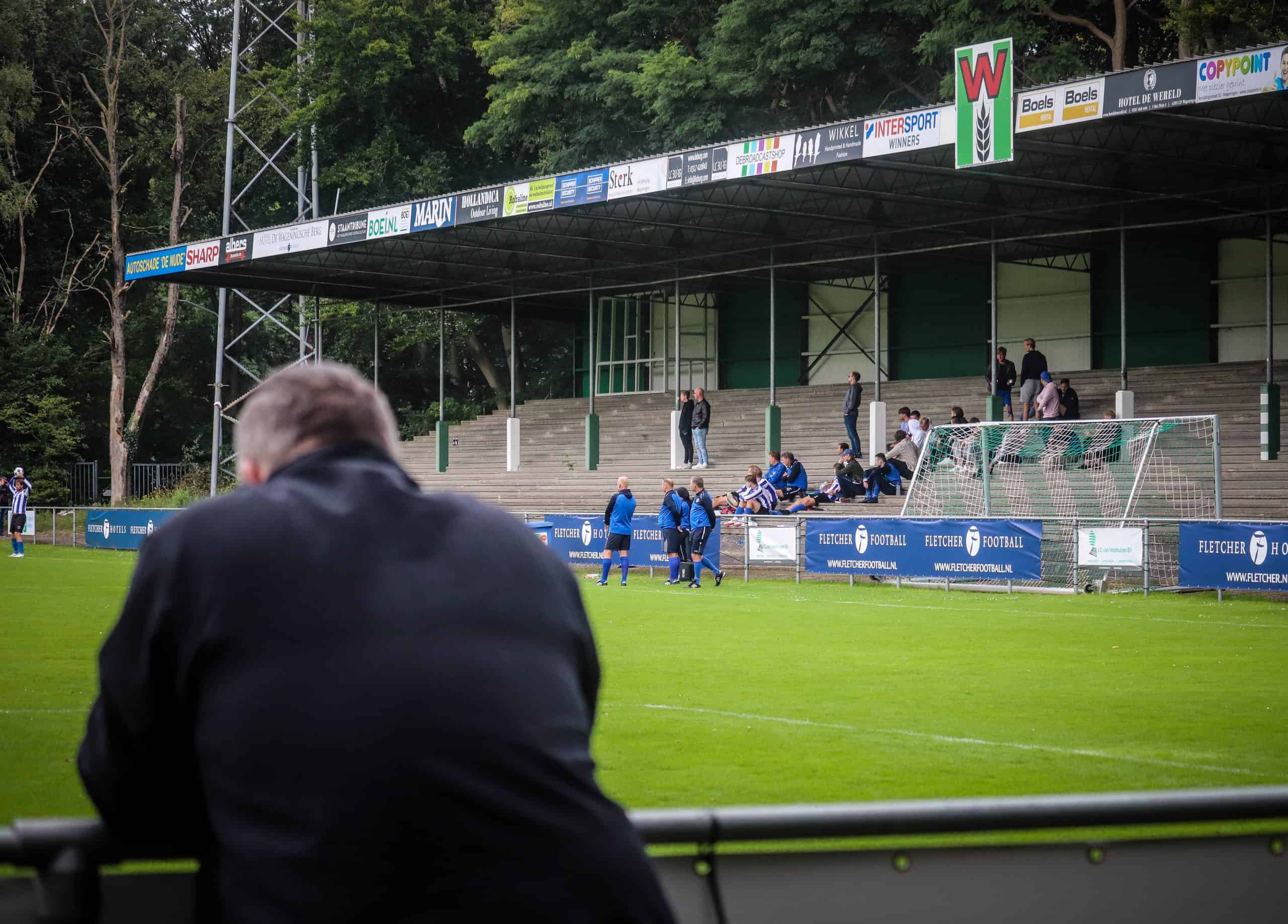 Net zo vreemd is het om weer supporters op de tribune te zien. Hoewel het overgrote deel van de mensen bestaat uit groundhoppers en reservespelers – het tweede elftal heeft ervoor een oefenwedstrijd gespeeld – blijft het een mooi beeld. Mensen die gezellig een biertje drinken, zittend op de opnieuw geverfde bankjes aan de ene lange zijde. Een vader en zoon die samen naar voetbal staan te kijken op de lange staantribune aan de andere zijde. Bejaarde vrijwilligers die na hun harde werk op een stoel voor de kantine zitten te genieten van het zonnetje. Al met al is het een fantastische ervaring. Wat is het toch mooi dat dit unieke stadion de tand des tijds doorstaan heeft en zelfs weer het toneel is van voetbalplezier in haar puurste vorm. De Wageningse Berg: uniek in Nederland!