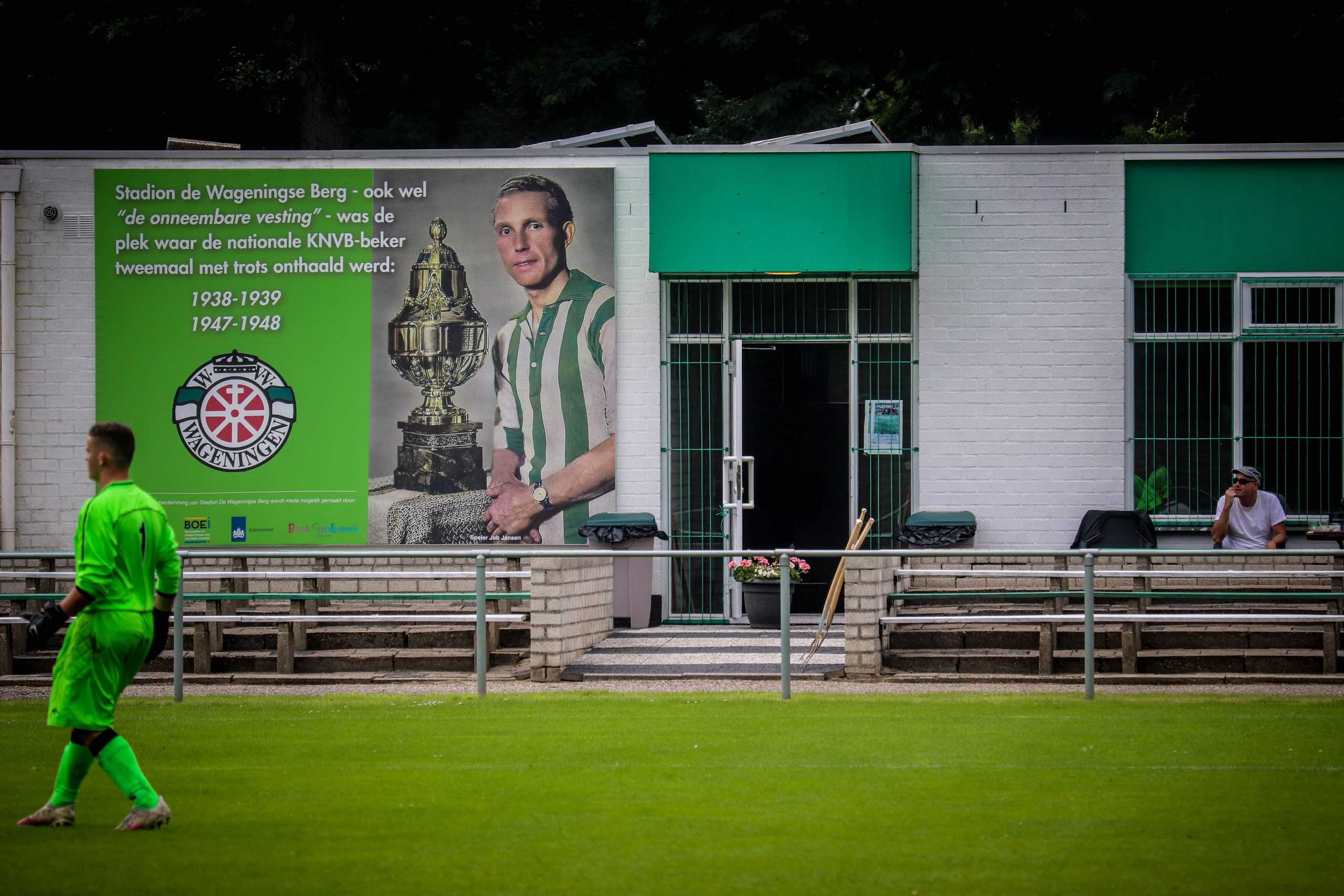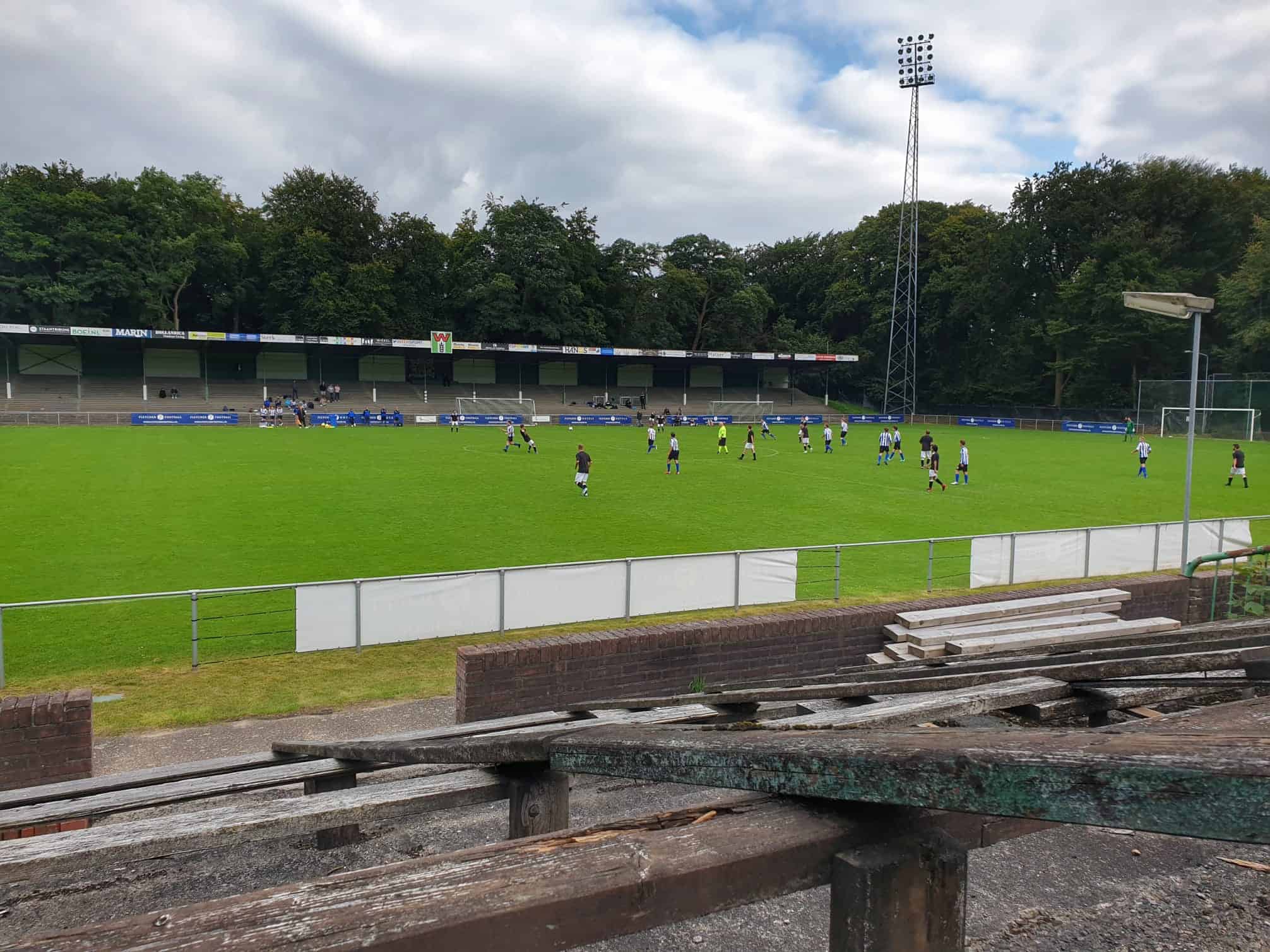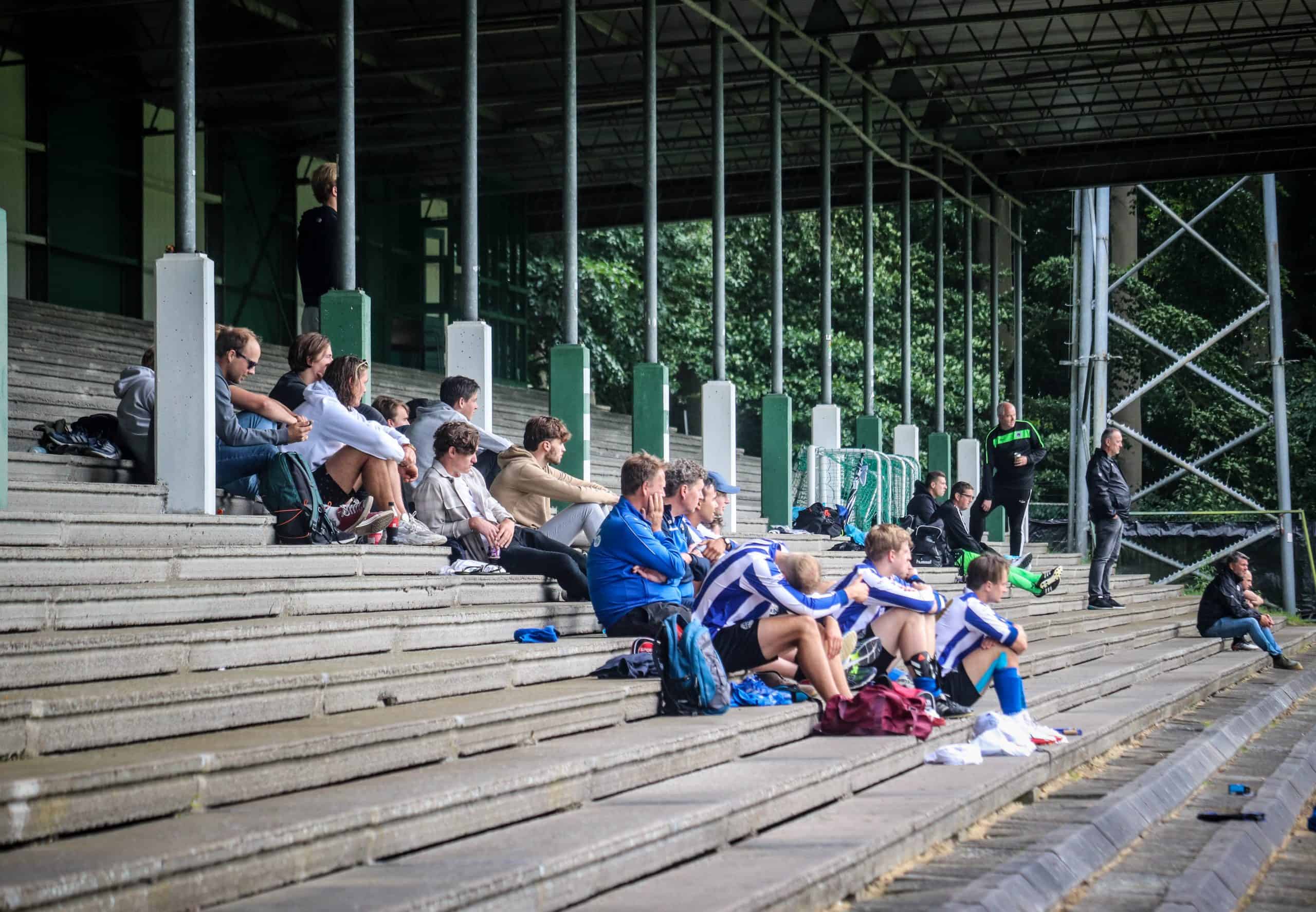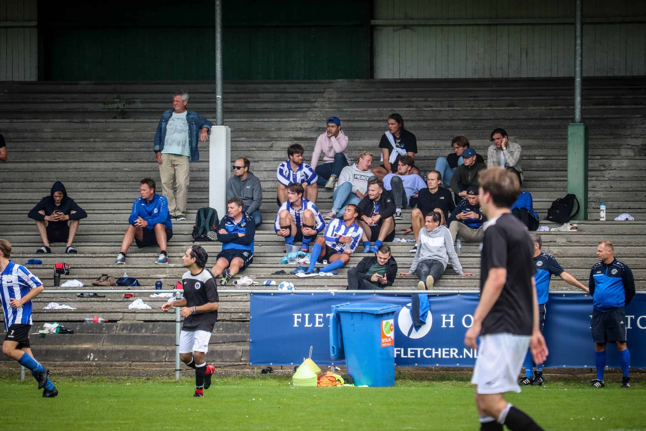 Net zo vreemd is het om weer supporters op de tribune te zien. Hoewel het overgrote deel van de mensen bestaat uit groundhoppers en reservespelers – het tweede elftal heeft ervoor een oefenwedstrijd gespeeld – blijft het een mooi beeld. Mensen die gezellig een biertje drinken, zittend op de opnieuw geverfde bankjes aan de ene lange zijde. Een vader en zoon die samen naar voetbal staan te kijken op de lange staantribune aan de andere zijde. Bejaarde vrijwilligers die na hun harde werk op een stoel voor de kantine zitten te genieten van het zonnetje. Al met al is het een fantastische ervaring. Wat is het toch mooi dat dit unieke stadion de tand des tijds doorstaan heeft en zelfs weer het toneel is van voetbalplezier in haar puurste vorm. De Wageningse Berg: uniek in Nederland!