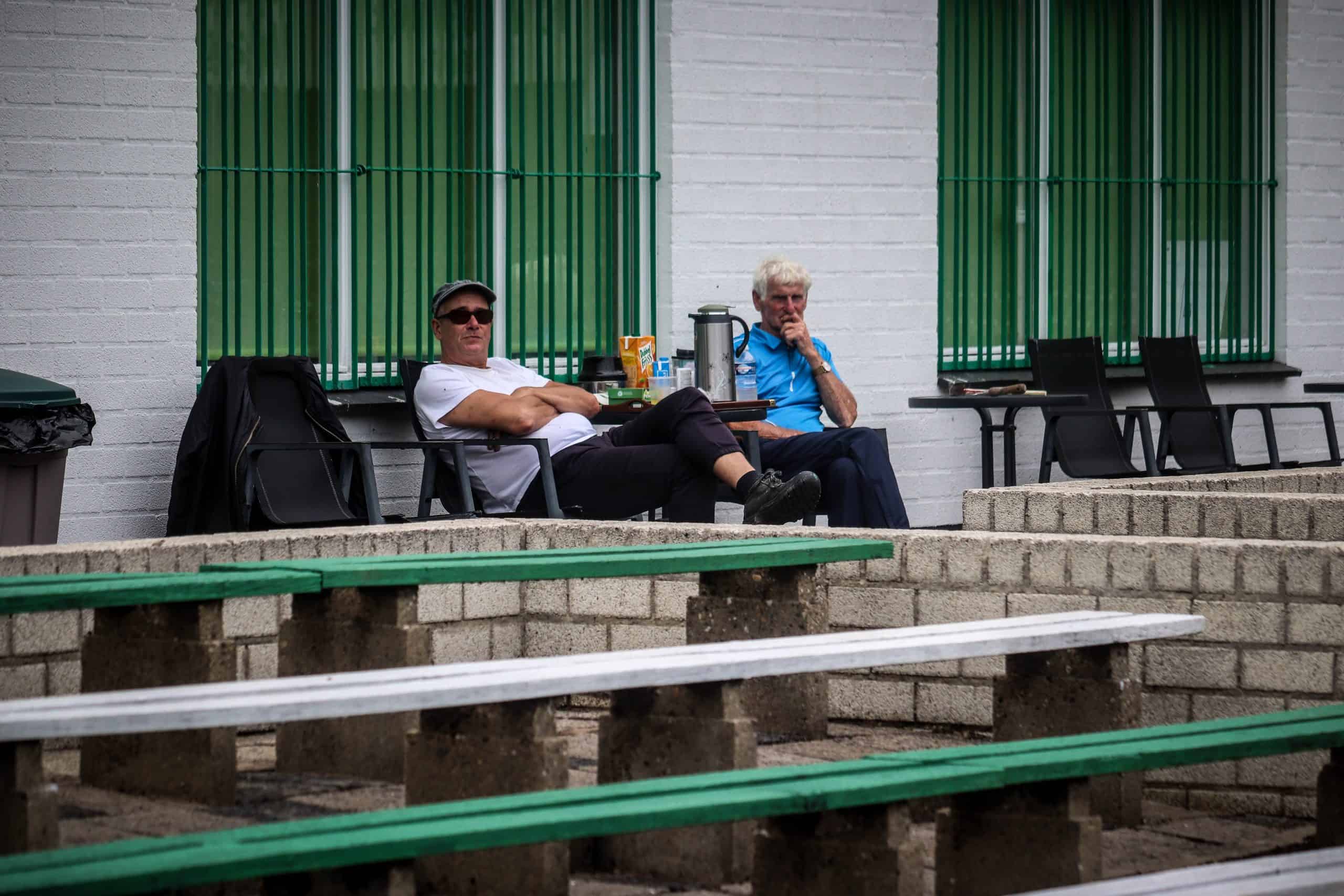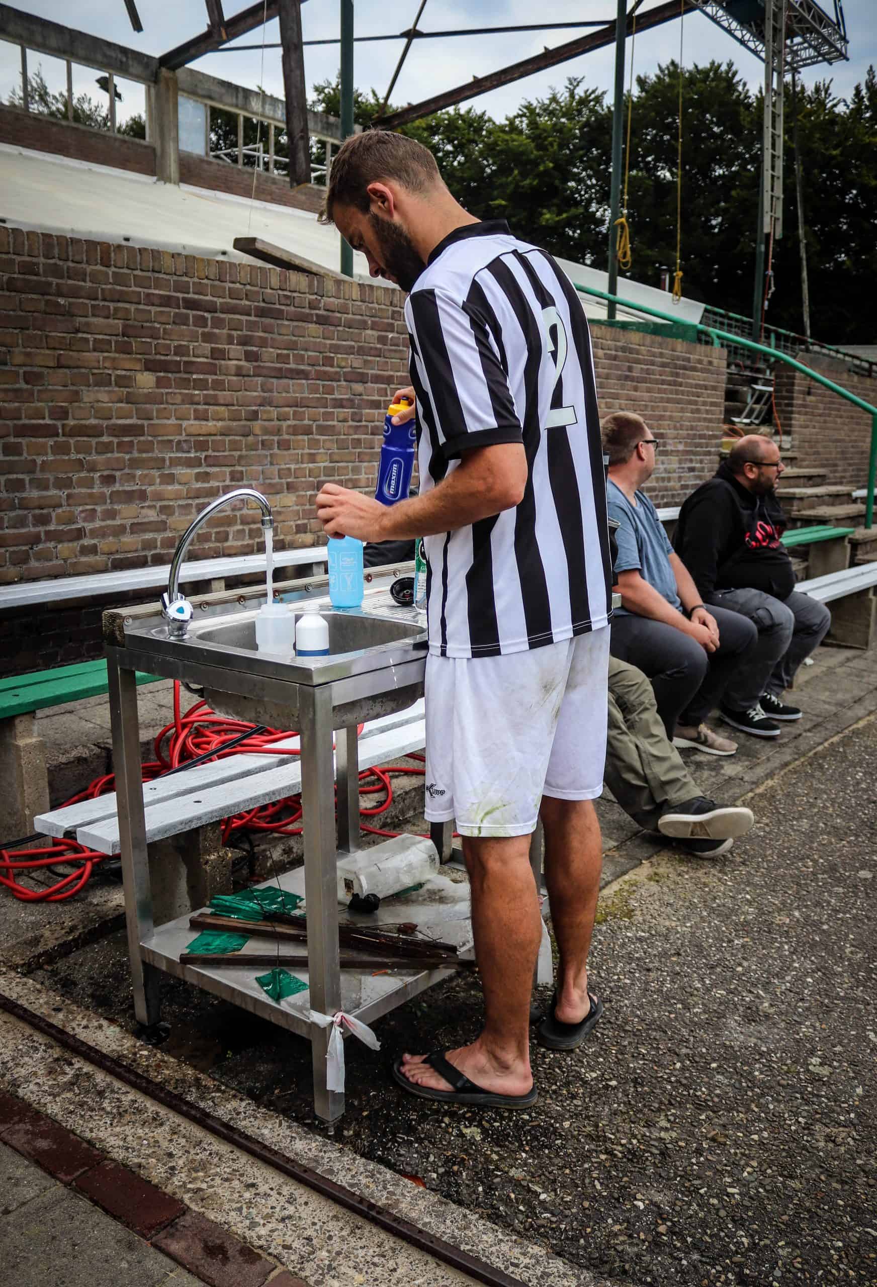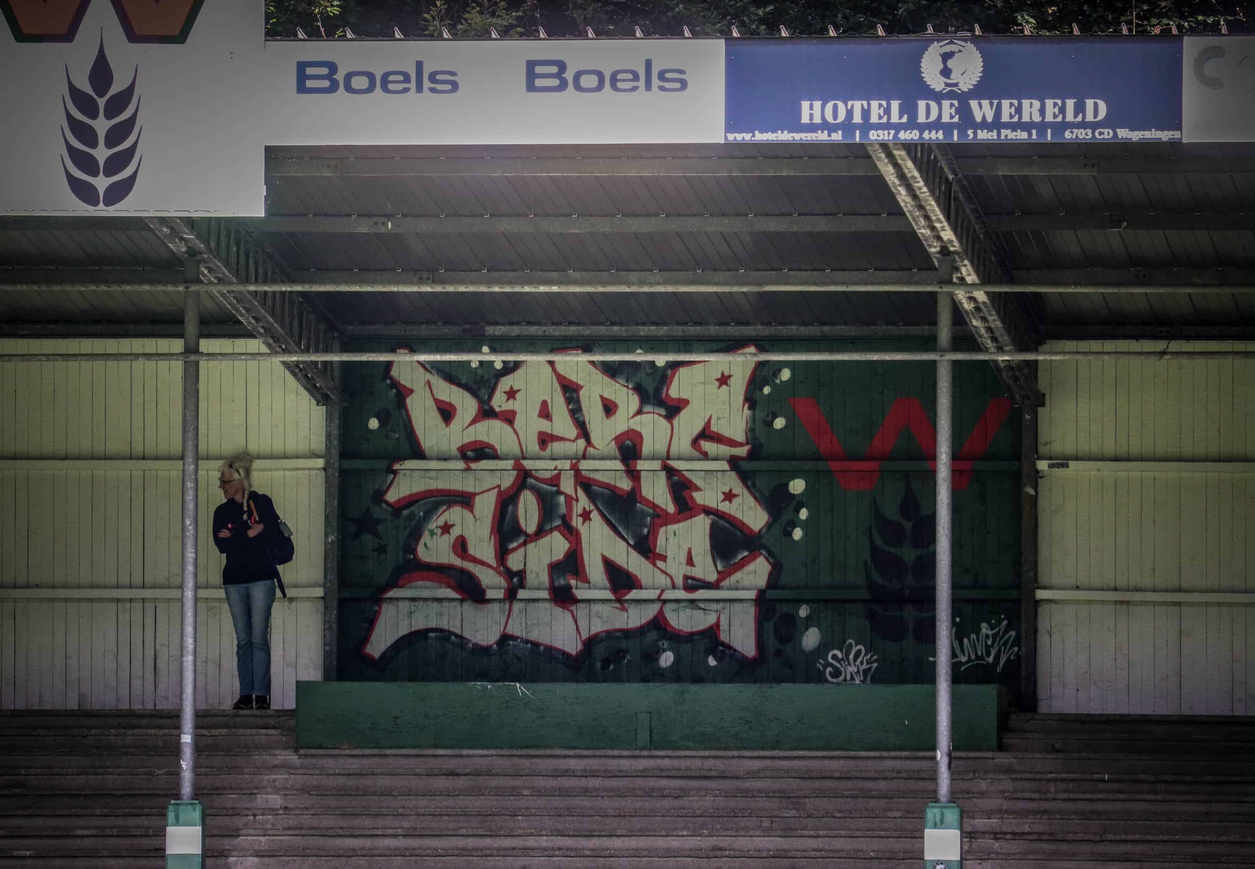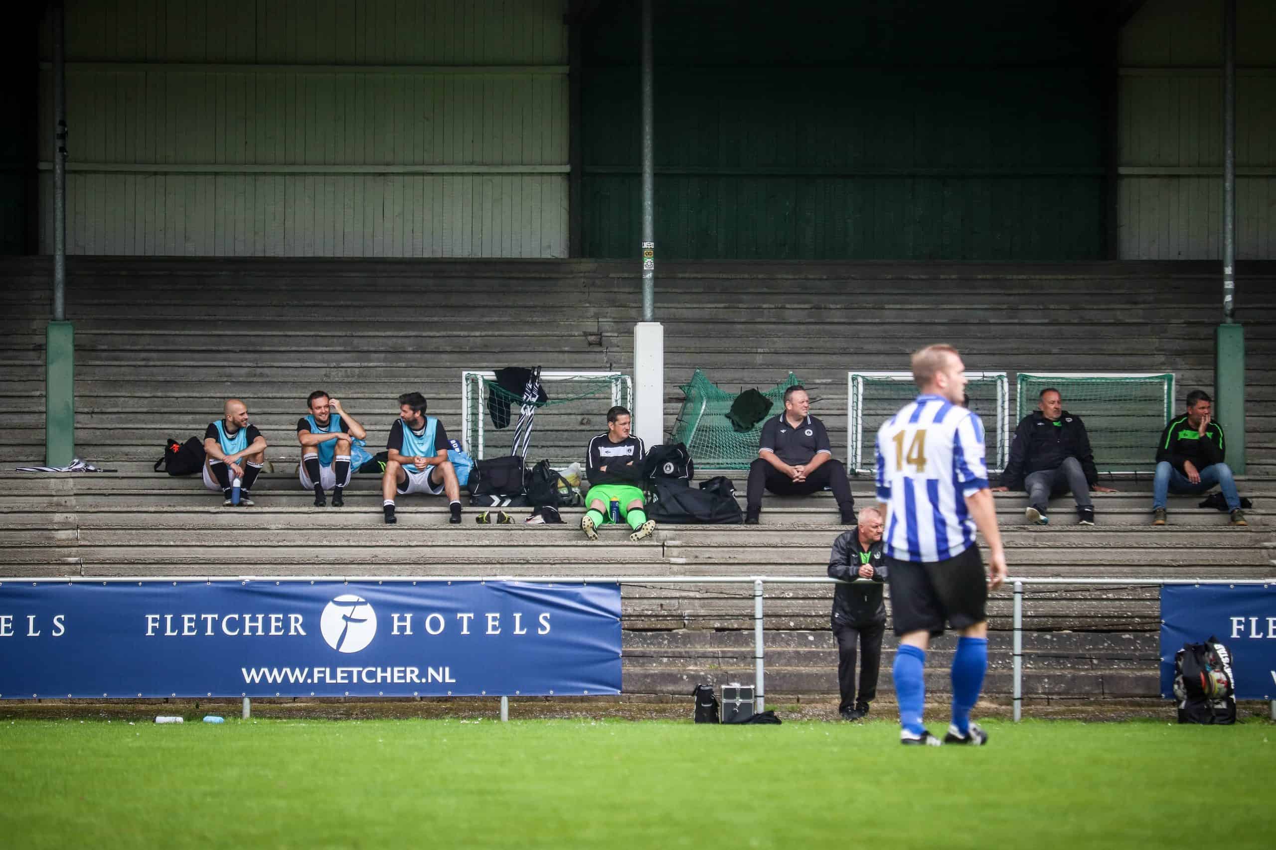 Net zo vreemd is het om weer supporters op de tribune te zien. Hoewel het overgrote deel van de mensen bestaat uit groundhoppers en reservespelers – het tweede elftal heeft ervoor een oefenwedstrijd gespeeld – blijft het een mooi beeld. Mensen die gezellig een biertje drinken, zittend op de opnieuw geverfde bankjes aan de ene lange zijde. Een vader en zoon die samen naar voetbal staan te kijken op de lange staantribune aan de andere zijde. Bejaarde vrijwilligers die na hun harde werk op een stoel voor de kantine zitten te genieten van het zonnetje. Al met al is het een fantastische ervaring. Wat is het toch mooi dat dit unieke stadion de tand des tijds doorstaan heeft en zelfs weer het toneel is van voetbalplezier in haar puurste vorm. De Wageningse Berg: uniek in Nederland!