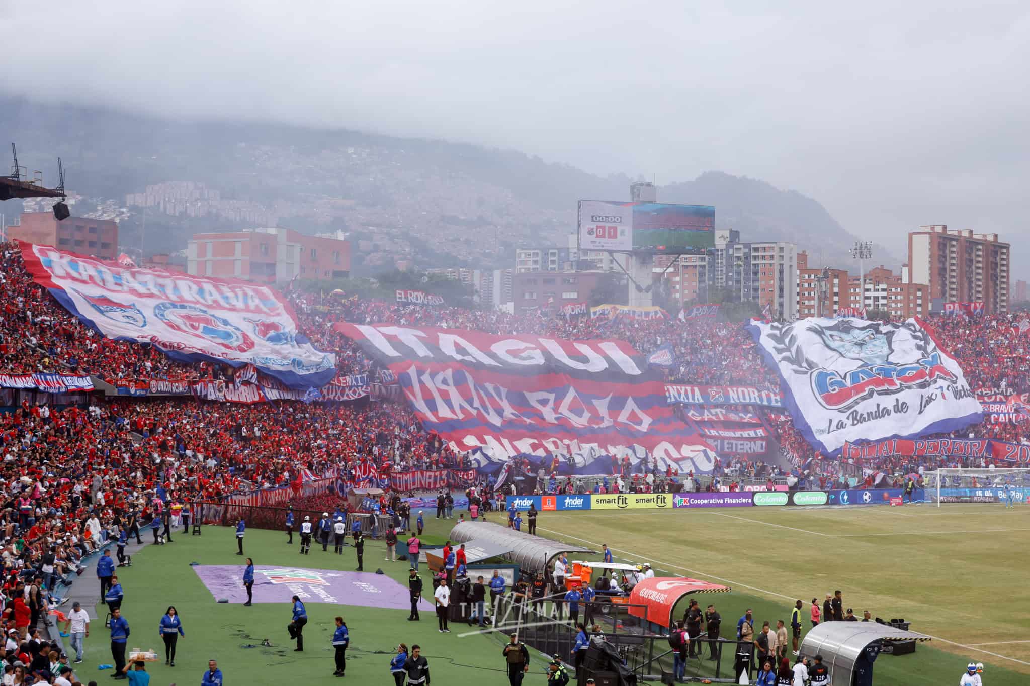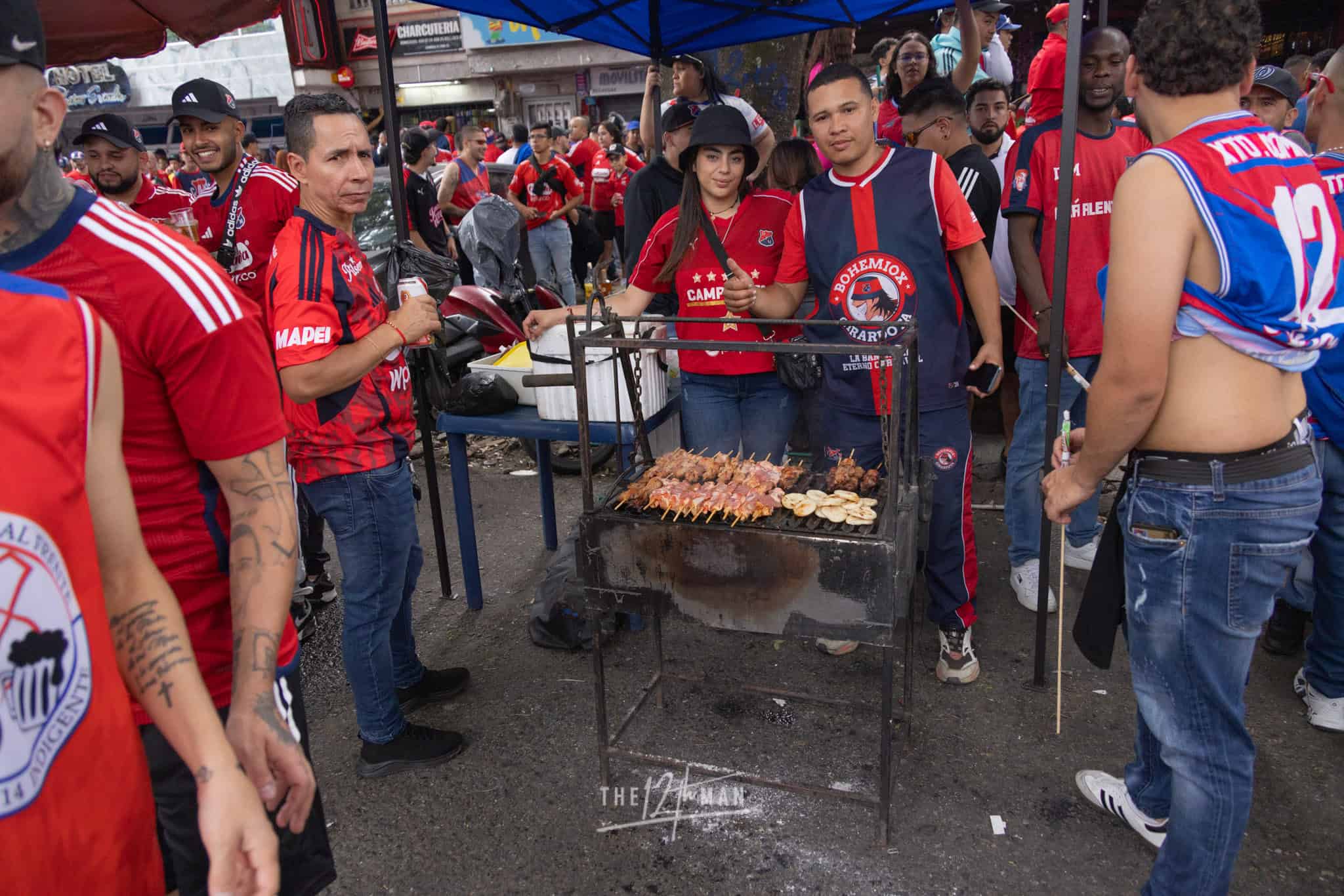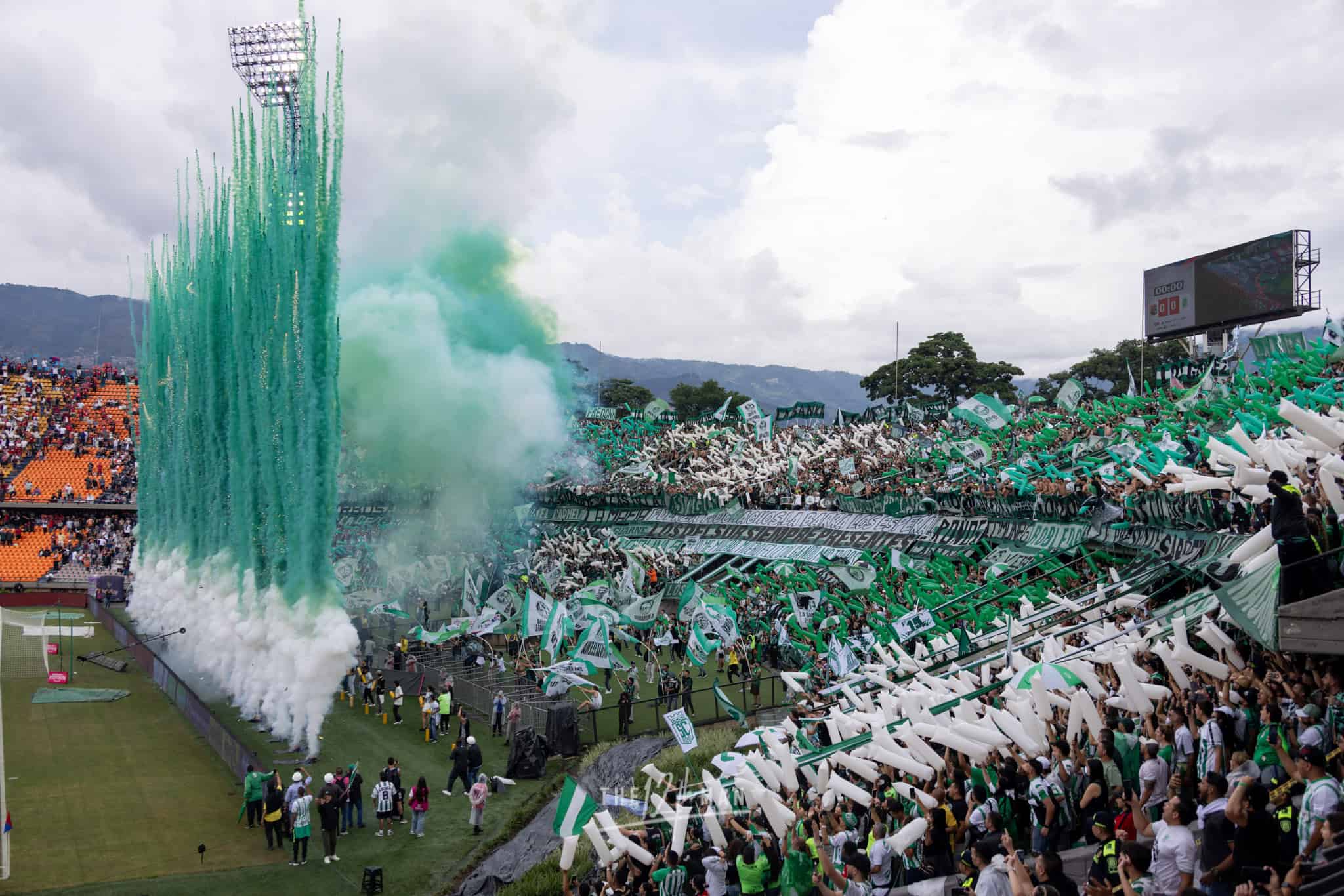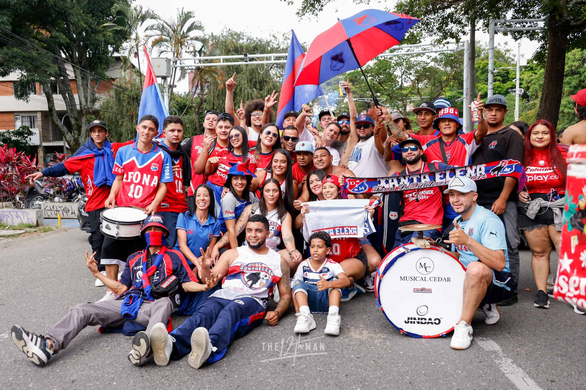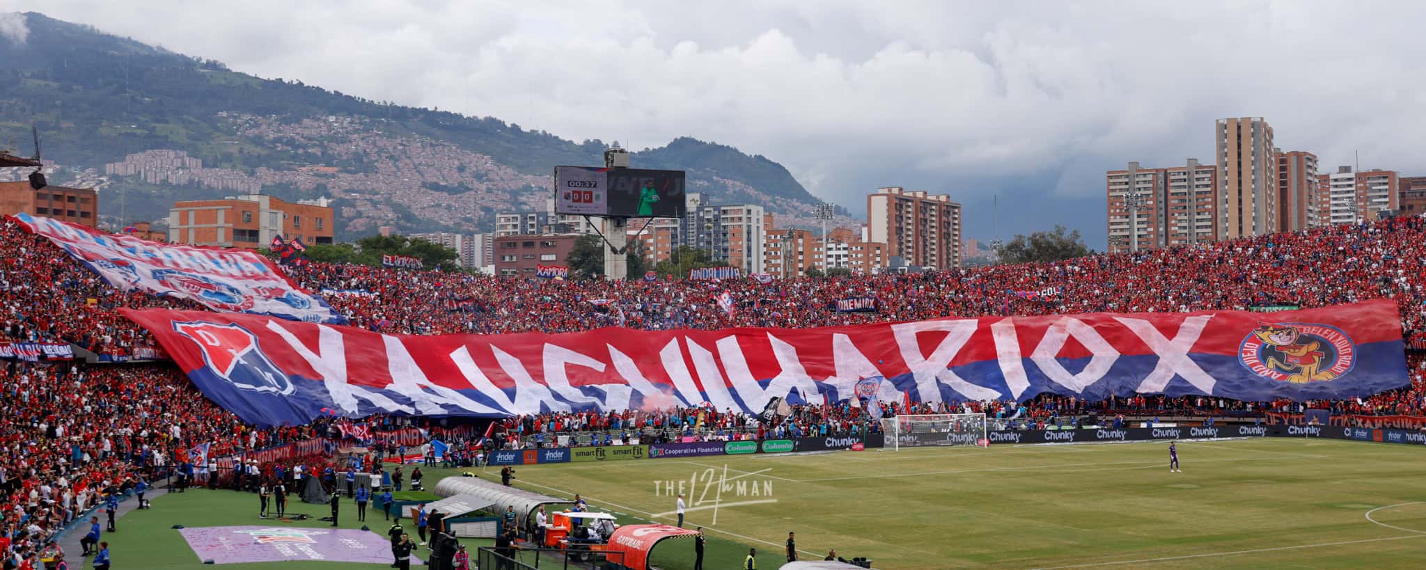 Het is al compleet volle bak. Duizenden supporters op straat, dampende barbecues, gezang en vuurwerk dat overal afgaat. Het is een zee van rood en blauw, de kleuren van Independiente Medellin, de thuisploeg vandaag. Her en der zie je wat groen-wit er tussendoor lopen. De kleuren van aartsrivaal Atletico Nacional, de meest succesvolle club van Colombia.