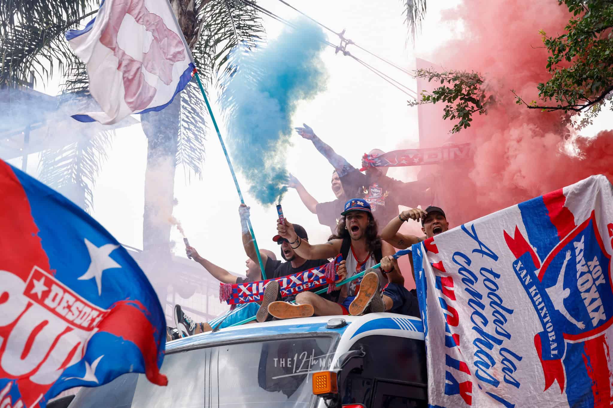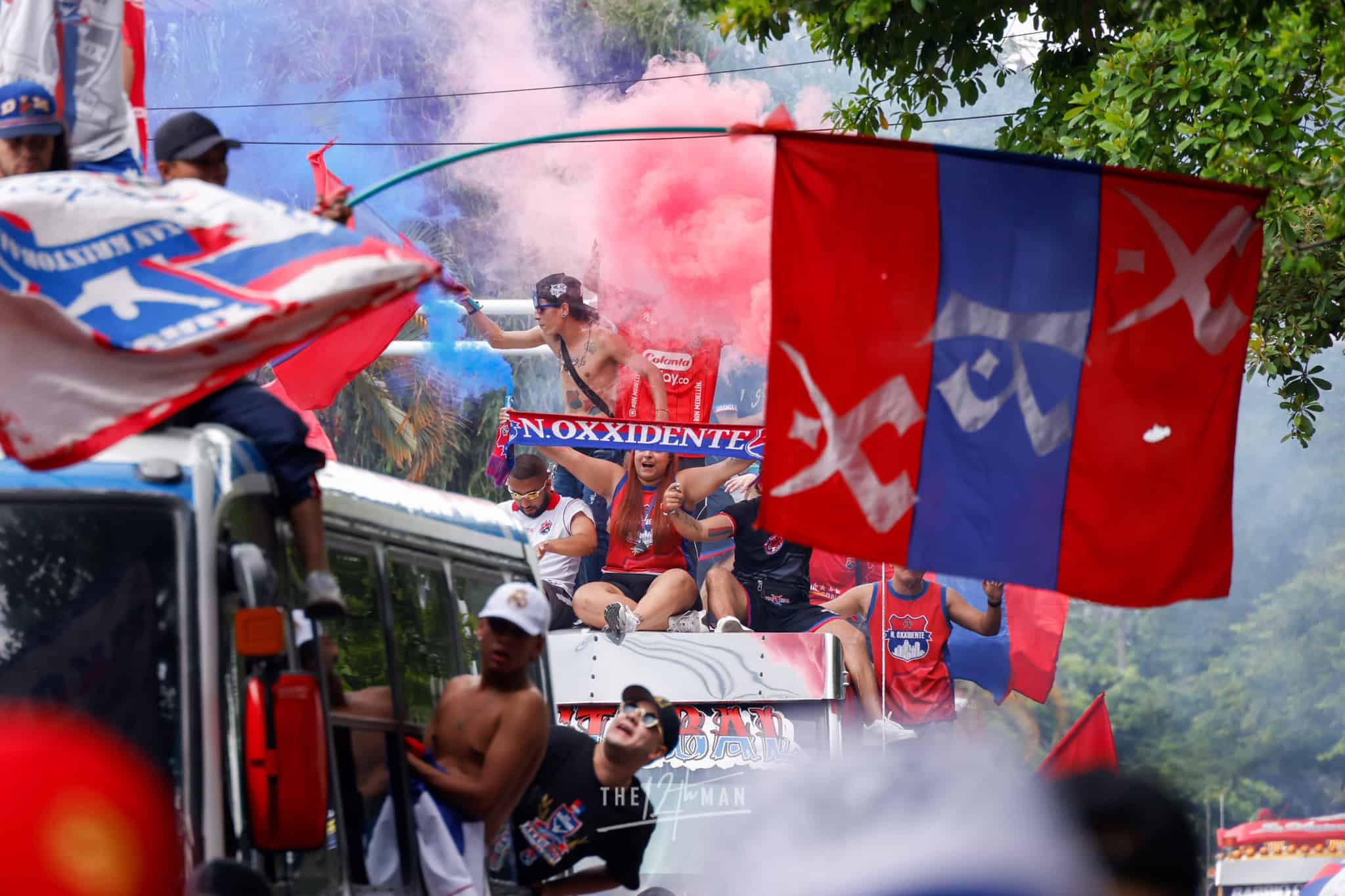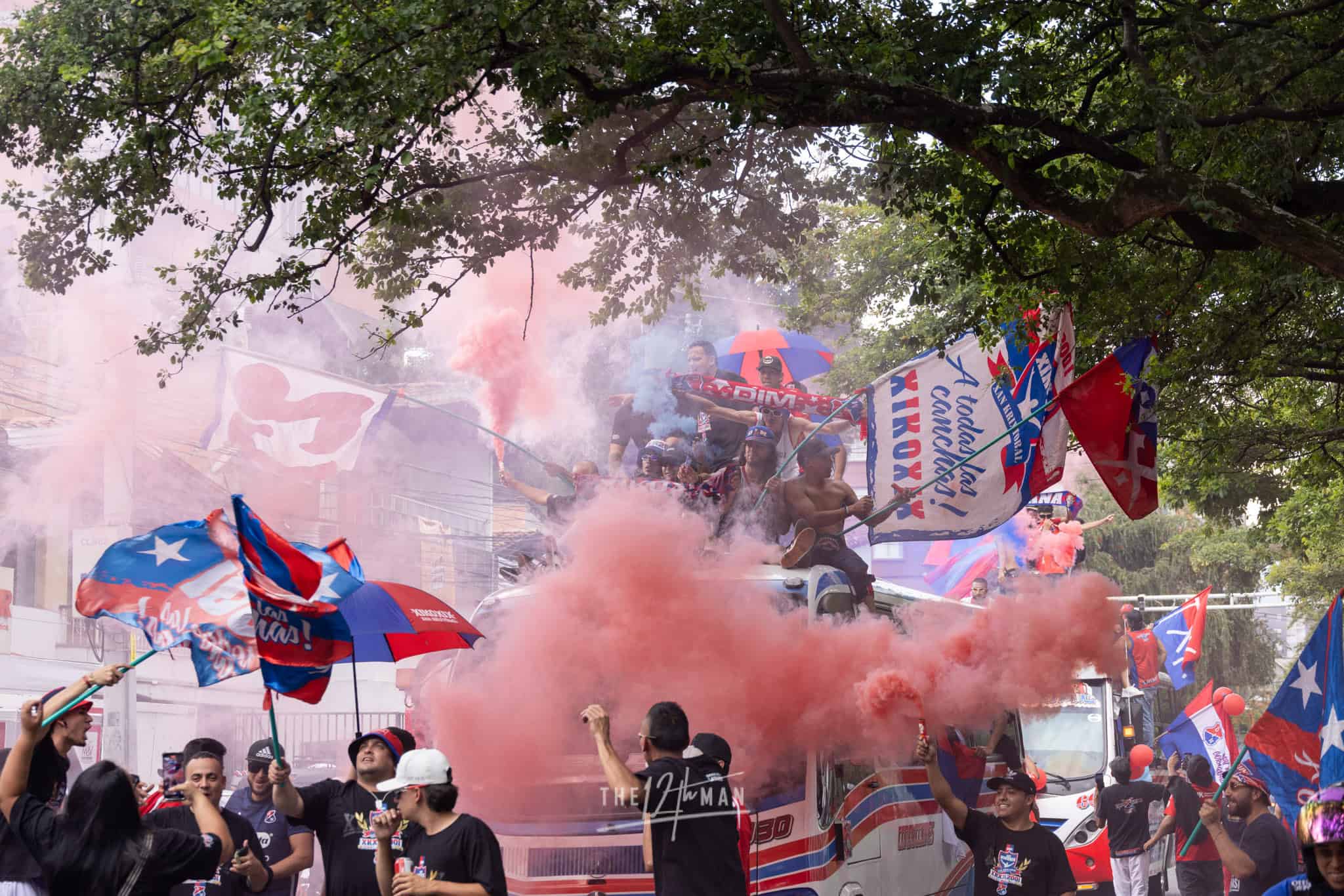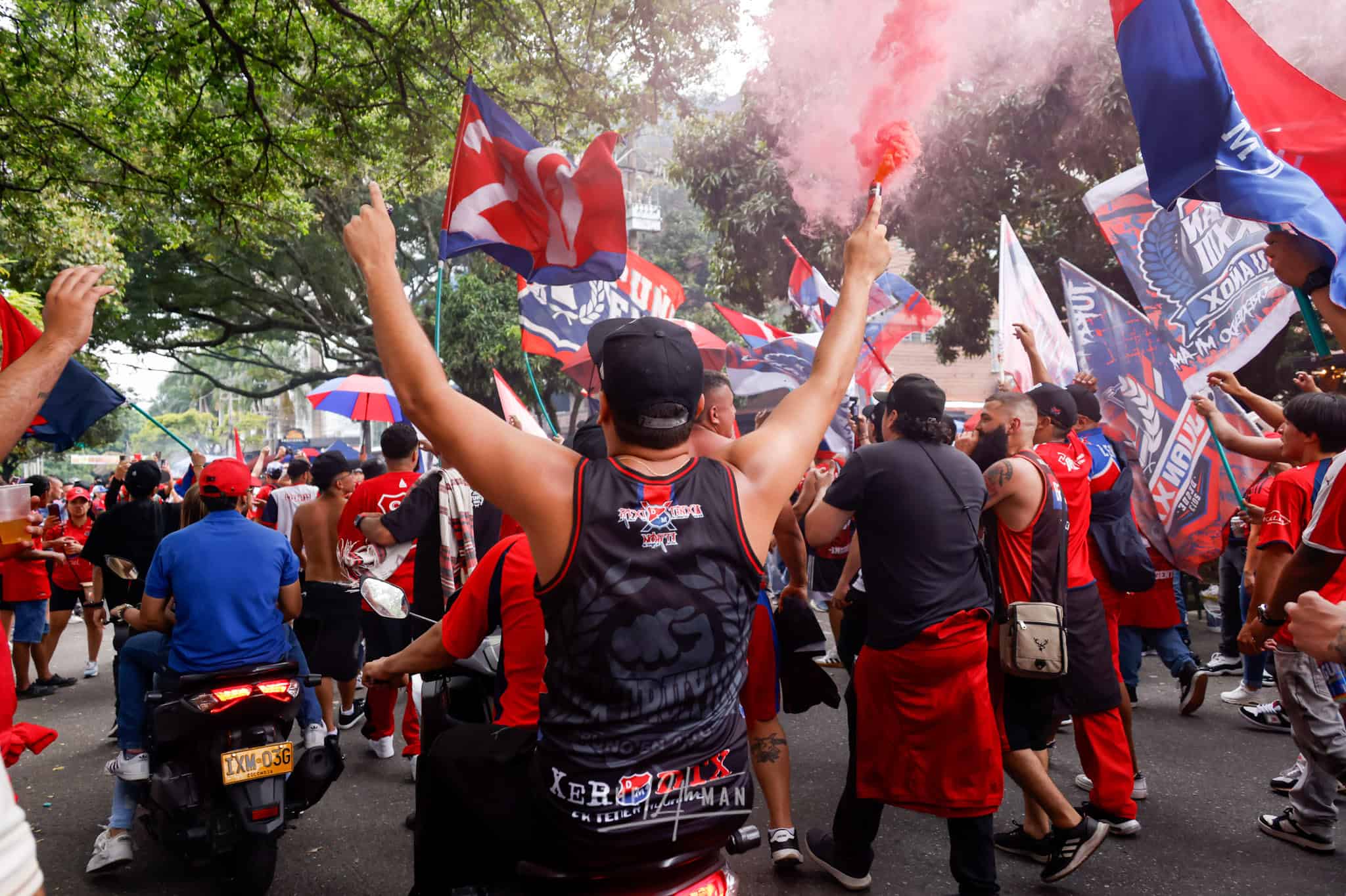 Het is al compleet volle bak. Duizenden supporters op straat, dampende barbecues, gezang en vuurwerk dat overal afgaat. Het is een zee van rood en blauw, de kleuren van Independiente Medellin, de thuisploeg vandaag. Her en der zie je wat groen-wit er tussendoor lopen. De kleuren van aartsrivaal Atletico Nacional, de meest succesvolle club van Colombia.