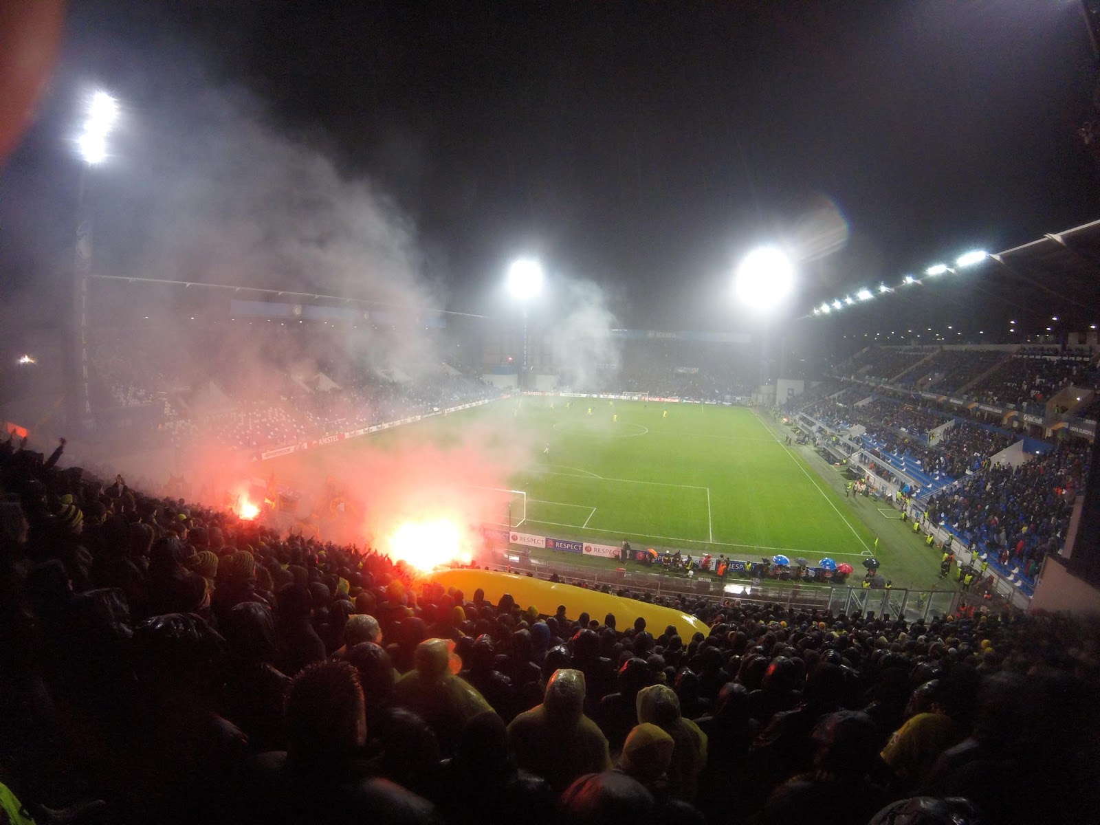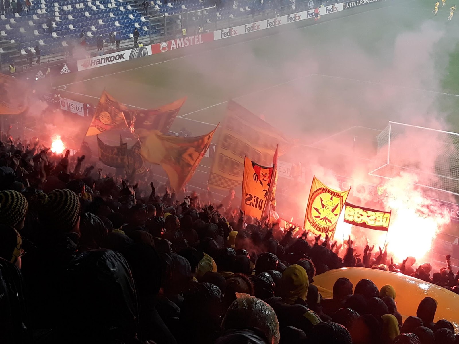 Vrijdag is het tijd om terug naar huis te gaan. Met natte kleding in de koffer en na een vlucht van een kleine 2 uur landen we in het zonnige Charleroi. Hiervandaan vetrekken we terug naar Antwerpen om de bus naar KRC Genk te halen. Waar mijn geliefde Royal Antwerp Football Club met 4-0 verliest. Net zoals hierboven is er veel pyro en een topsfeer in het uitvak, ondanks de uitslag een leuke afsluiter van de 3-daagse trip.