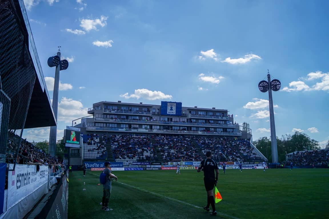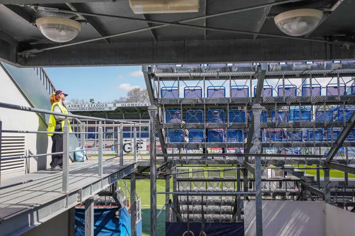 De laatste trekpleister van vandaag is zonder twijfel het stadion van Sigma Olomouc. Het Andruv Stadion bestaat uit 4 losse zijdes die qua ontwerp ook allemaal verschillend zijn. Vooral de twee korte zijdes springen daarbij in het oog. De ene lijkt hierbij wel wat op de befaamde ‘chocolate box’ tribune van Boca Juniors. De andere korte zijde is een gigantisch steile, onoverdekte staantribune die al helemaal een Zuid-Amerikaanse uitstraling geeft. De lichtmasten zijn al even uniek. Een soort dubbele ronde koplampen zijn bevestigd aan de palen in de hoeken. Wat een bijzonder stadion!