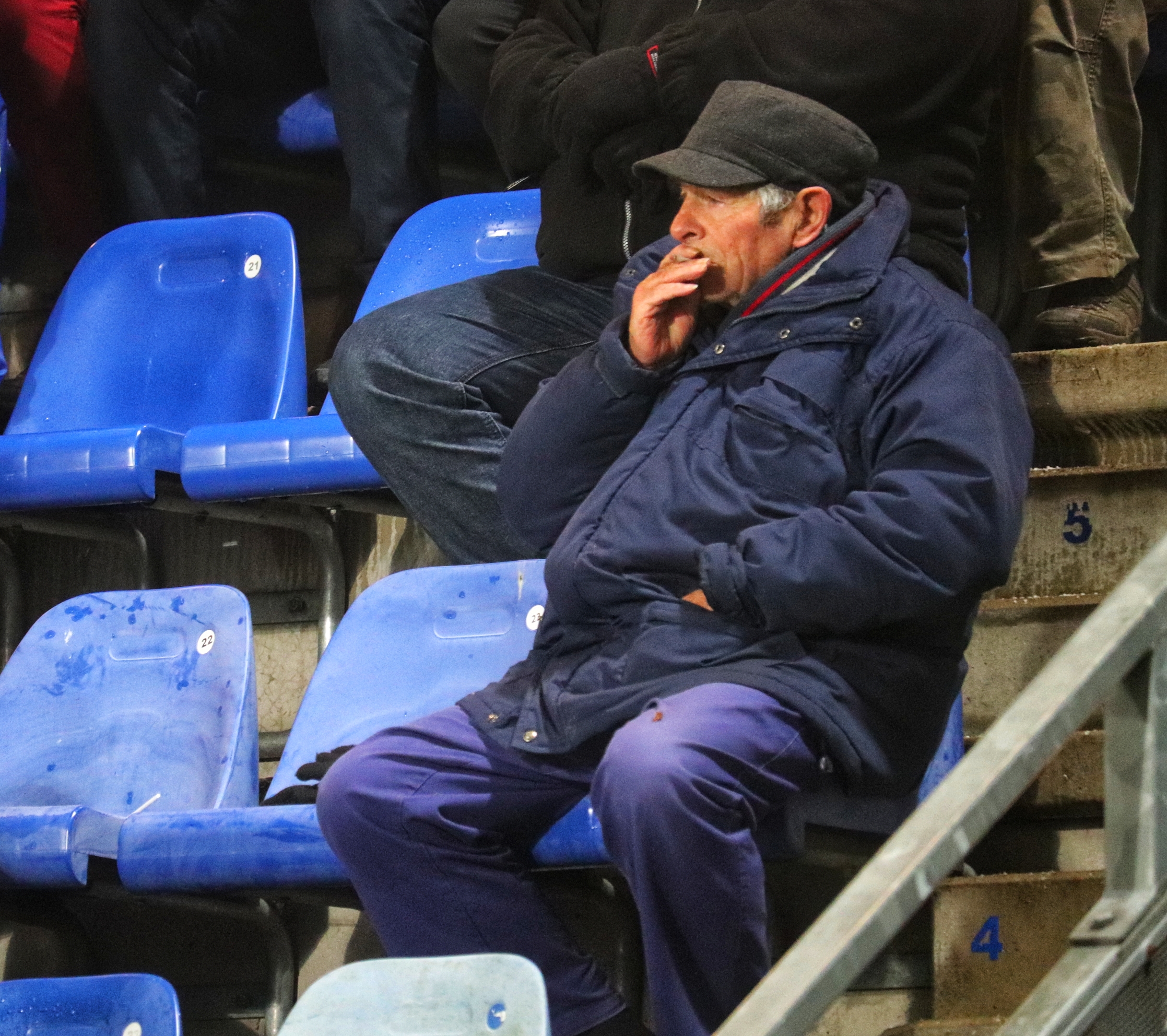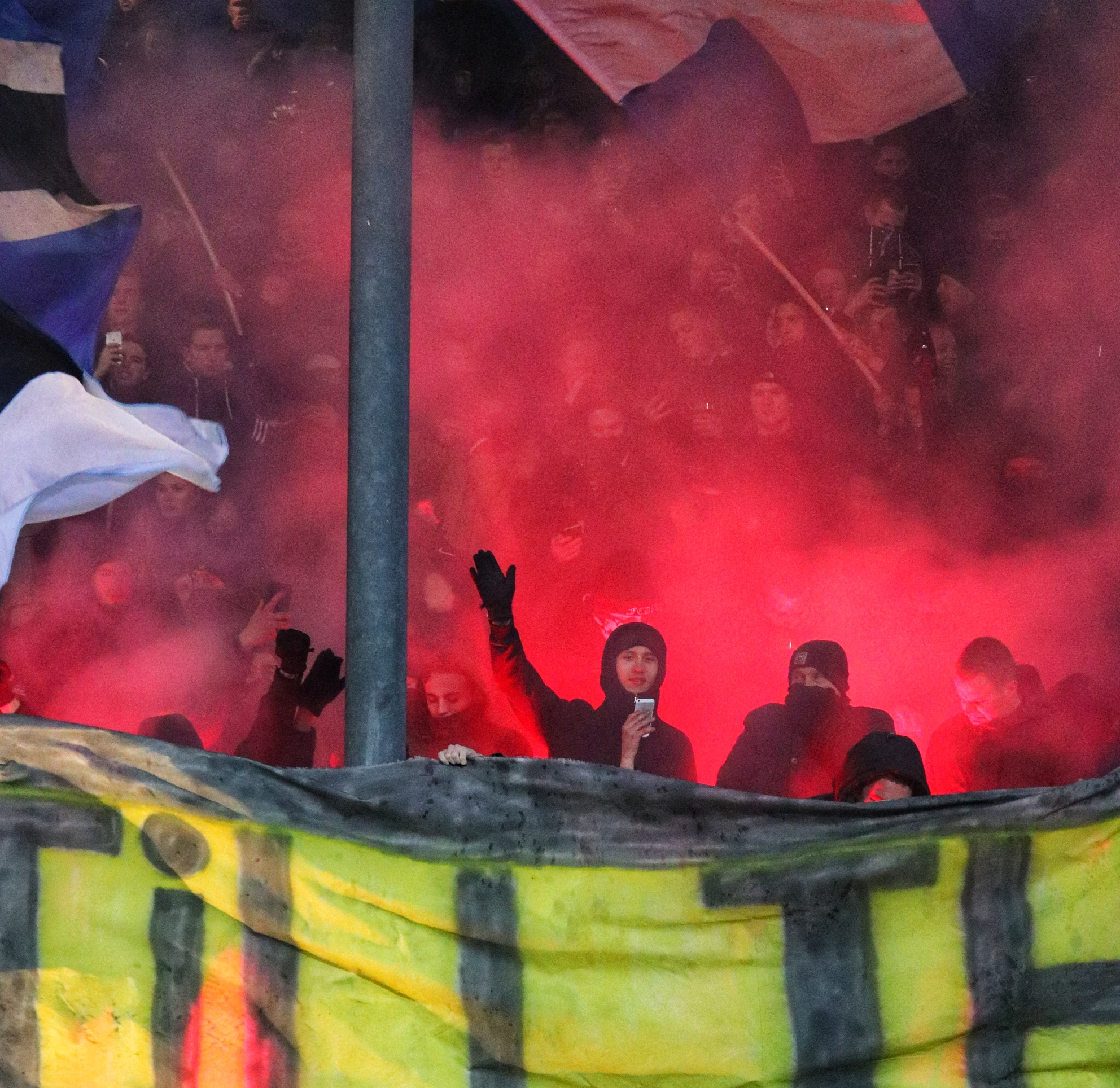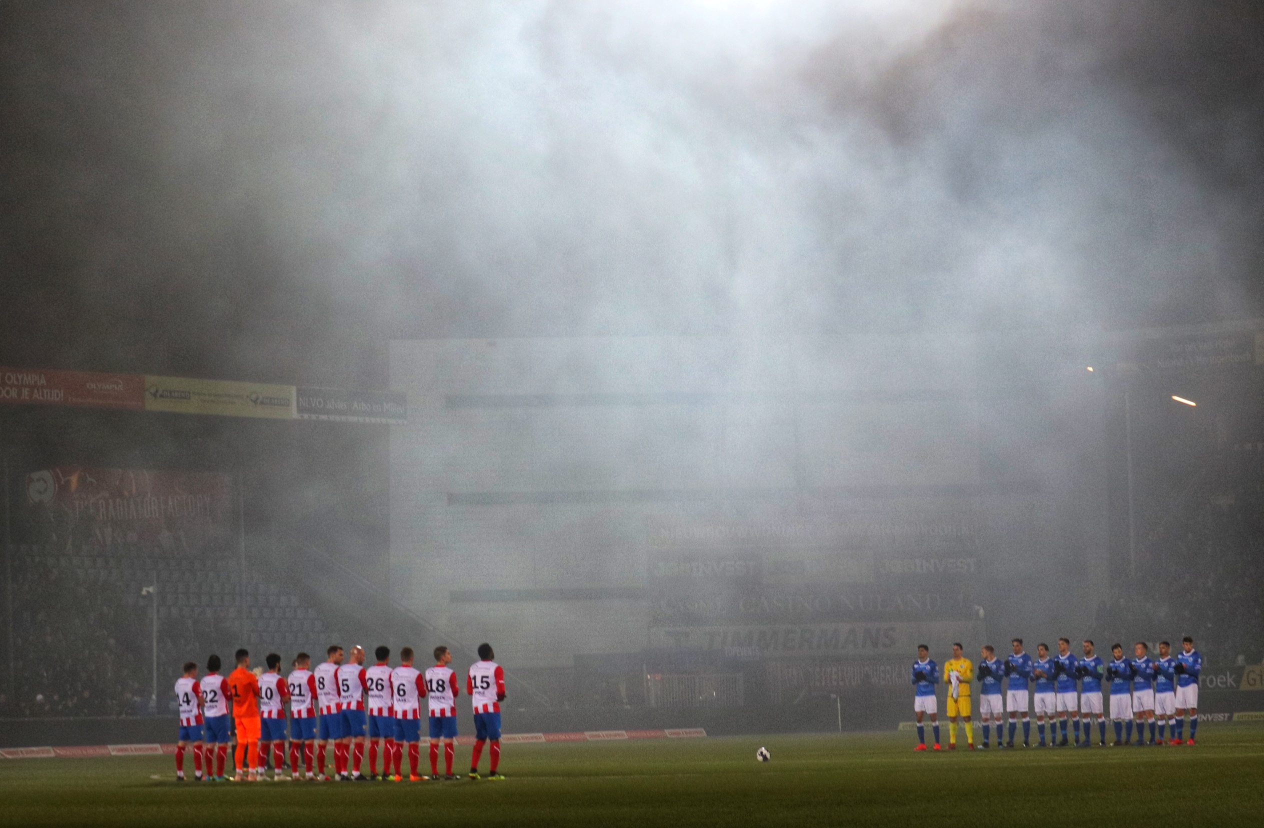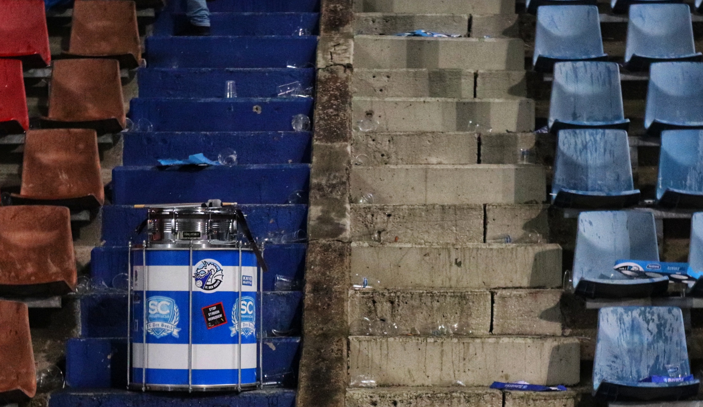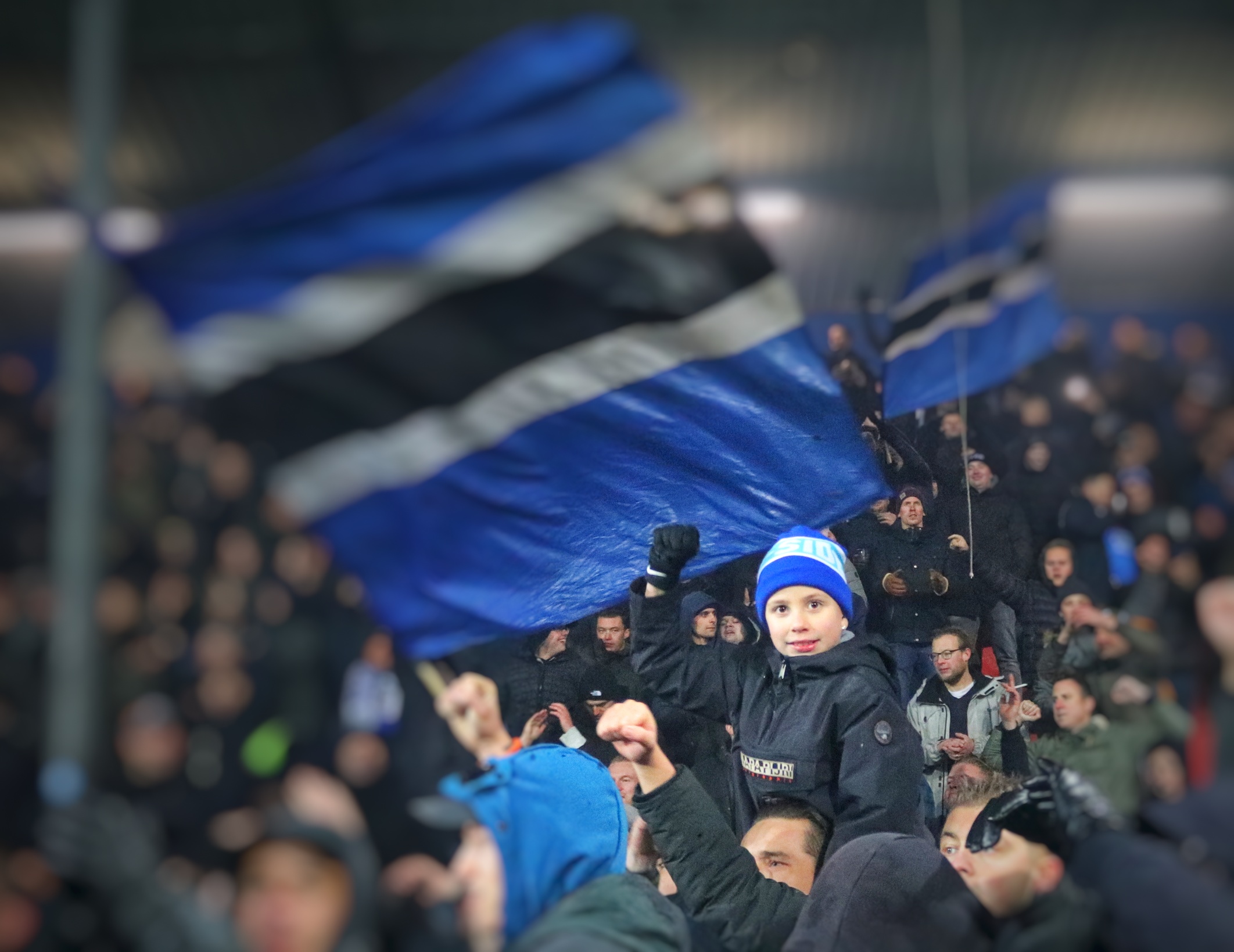 Bij de opkomst wordt er door de FC Den Bosch supporters verschillende soorten pyro afgestoken, in combinatie met de vlaggen een prachtig gezicht. De sfeer is prachtig, maar slaat na de aftrap niet over naar het veld. Er zijn, mede door het ku(ns)tgras, weinig felle duels. De eerste kans ontstaat pas na 23 minuten als de Blauw-Witten opeens voor het doel van Top Oss opduiken en de lat raken. De sfeer kakt in en ik ben dan ook blij als er na 45 ijskoude minuten wordt afgefloten.