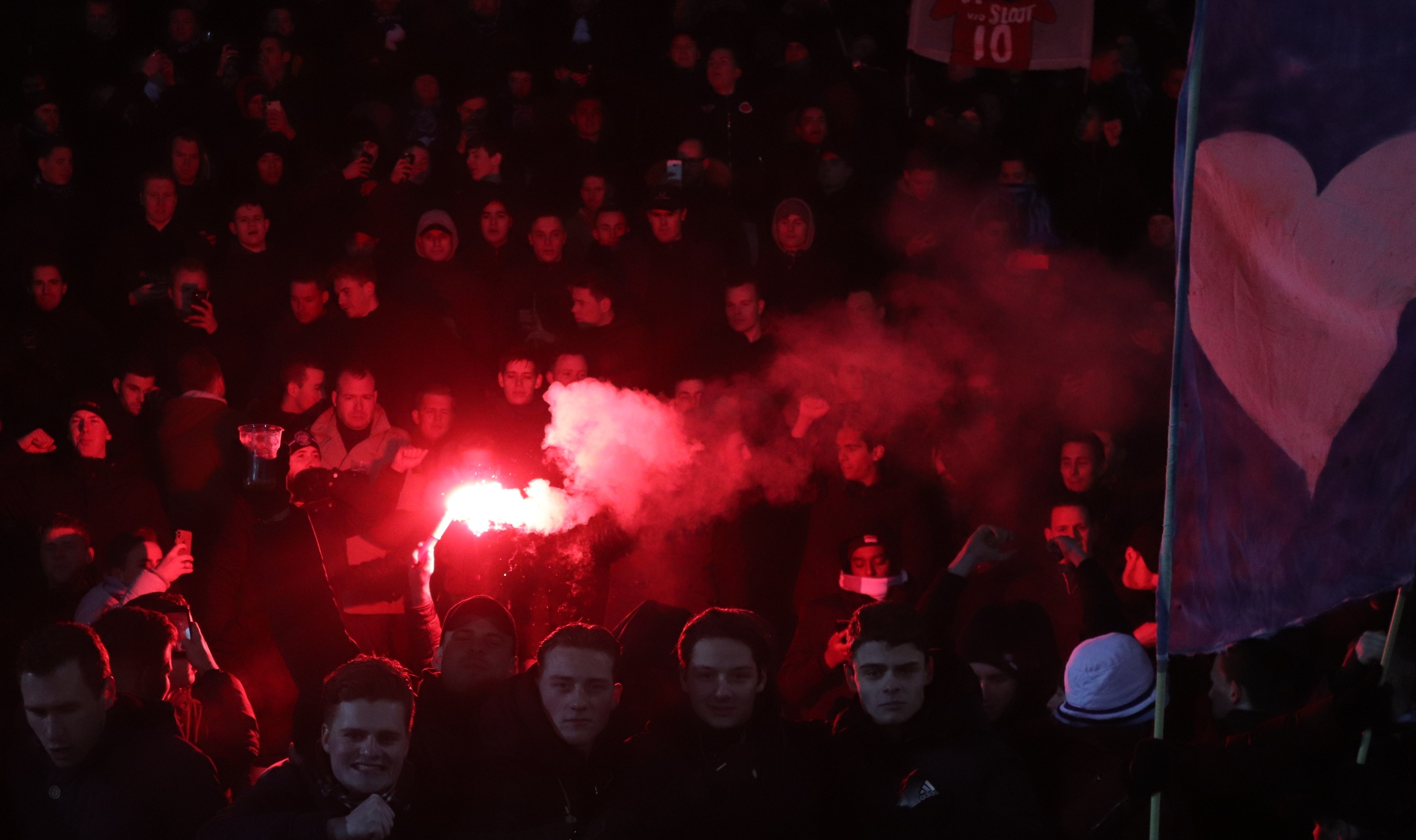 De Blue-White Dragons hebben een grote reputatie in Nederland, al is die bij vele voetballiefhebbers niet louter positief. Bij ons Hekkenhangers echter wel. De M-Side is altijd goed vertegenwoordigd geweest, ook in mindere tijden. Vandaag zat de M-Side zo goed als vol en zij zorgden al voor de wedstrijd voor een mooie sfeer. Top Oss mocht 250 kaarten verkopen aan haar supporters en deze waren dan ook uitverkocht. Wij hopen in de aankomende jaren dat er gewoon weer volle uitvakken welkom zijn in beide steden!