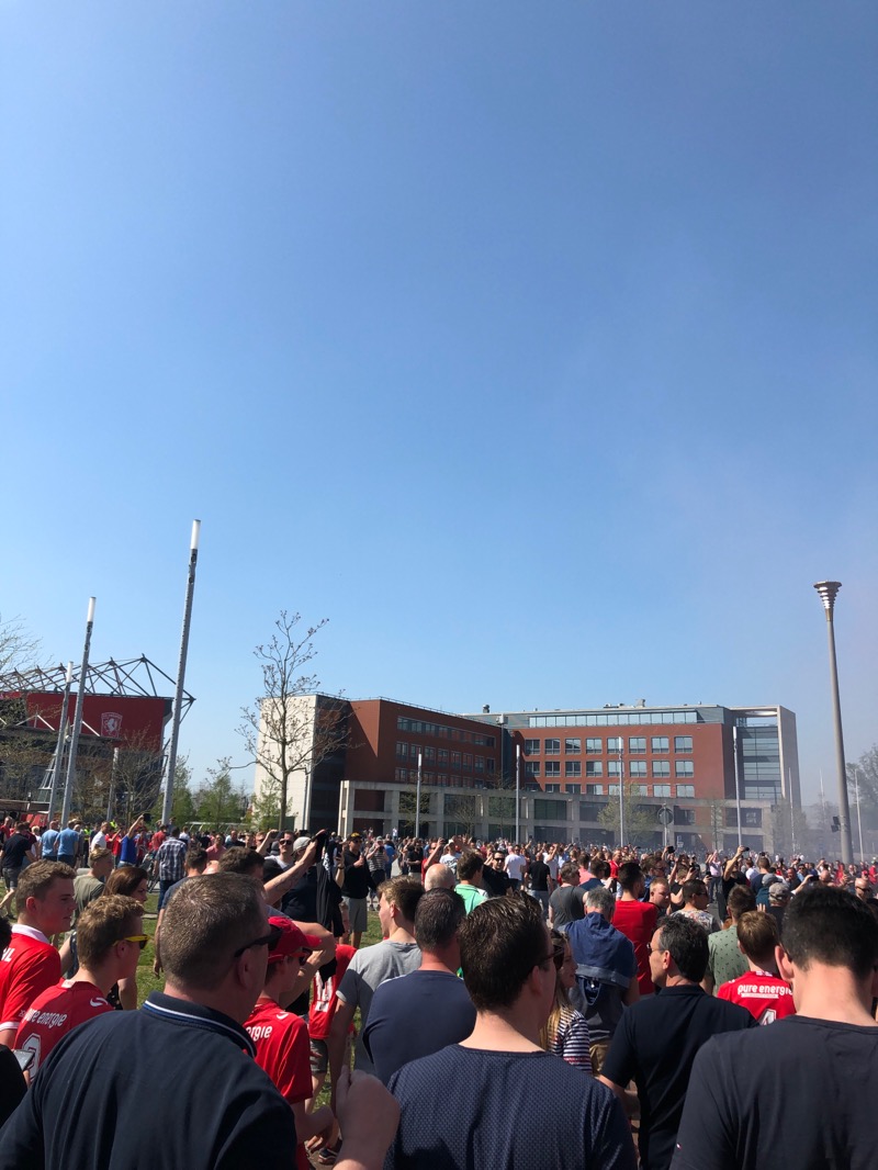 Het is pas donderdagavond wanneer ik aan dit stuk begin, en de honderden foto’s die ik heb geschoten bekijk. FC Twente is afgelopen maandag kampioen geworden van de Eerste Divisie en keert binnen één seizoen terug naar de Eredivisie. Compleet ontregeld probeer ik het normale leven weer op te pakken, dat voor mij weken heeft stilgestaan. Het voelt alsof er met het kampioenschap van FC Twente een gigantische leegte is achtergelaten. Maar de klus is geklaard. En dat heeft Enschede de afgelopen dagen geweten. De stad was een gekkenhuis.