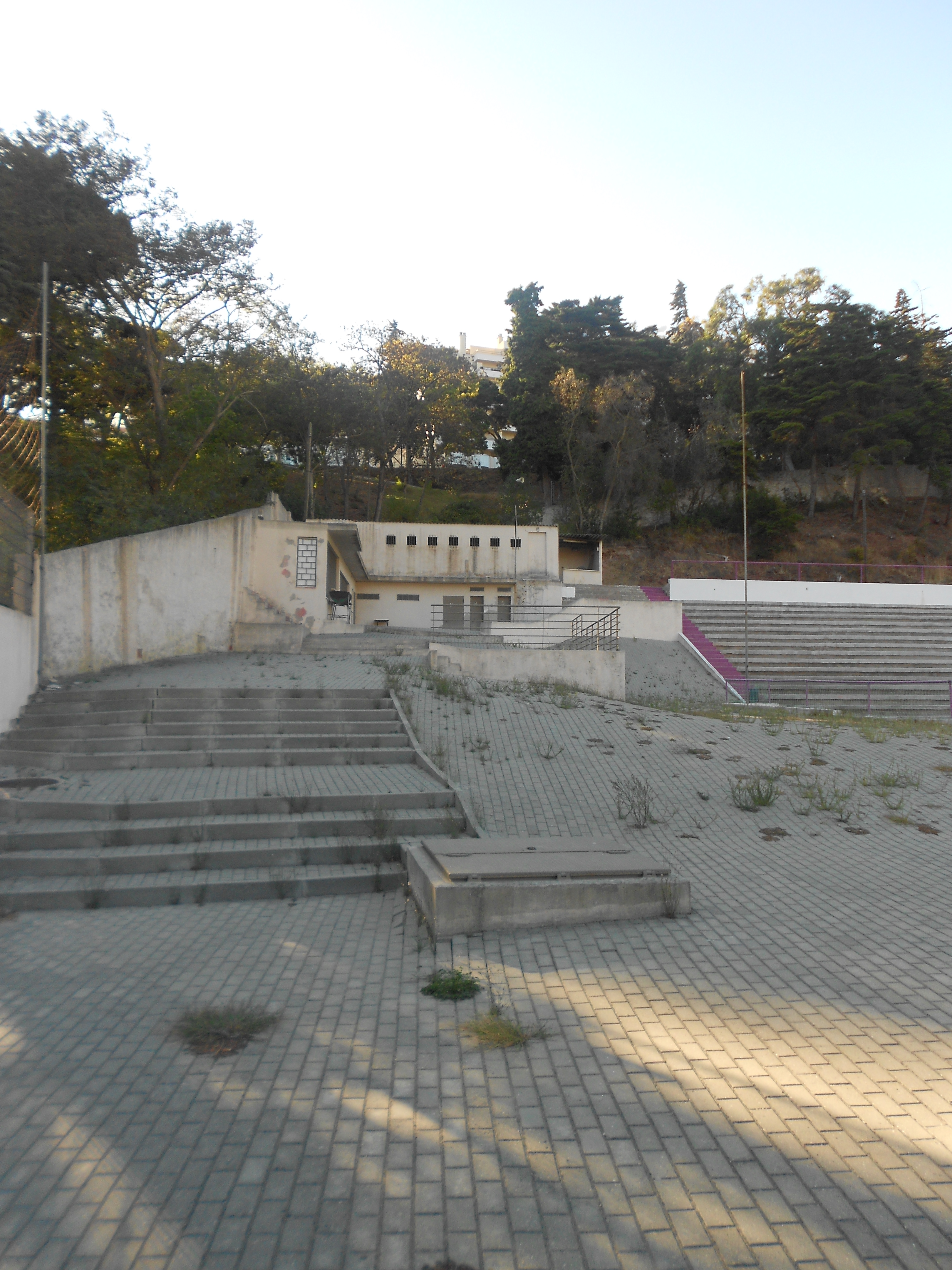 In plaats van een paar tientjes weg te gooien om naar dolfijnen te staren besluit ik om een kijkje te wagen bij de plaatselijke voetbalclub. Een klein stuk van de kust af en omringd door bomen en bergachtig gebied ligt namelijk het Estádio da Vila Amália van G.D. Sesimbra. G.D. Sesimbra is een weinig opvallende club. Heel haar bestaan heeft de club geschommeld tussen de hoogste en het tweede niveau van het district Setubal. Hoewel de club dus weinig succes heeft gehad is de plaatselijke bevolking wel trots op haar club. Het Estádio da Vila Amália ligt er dus ook in goede staat bij. Een zeldzaamheid bij Portugese clubs van lagere niveaus.