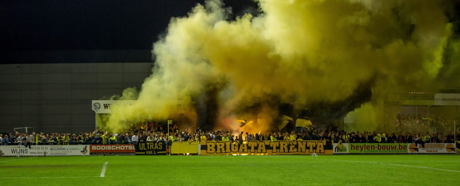 Op 3 november stond de wedstrijd tegen THES Sport op het programma. Een kleine club uit Tessenderlo die zowat het ganse seizoen de koppositie heeft bezet. Weeral een ideale reden om het vuurwerk nog eens buiten te nemen. Met 4500 toeschouwers was dit het hoogste toeschouwersaantal van het seizoen. Niet slecht voor een ‘amateurclub’ als je het ons vraagt. Helaas lijkt een stadion met capaciteit van 14.500 toeschouwers nog steeds vrij leeg met 4500 aanwezigen.