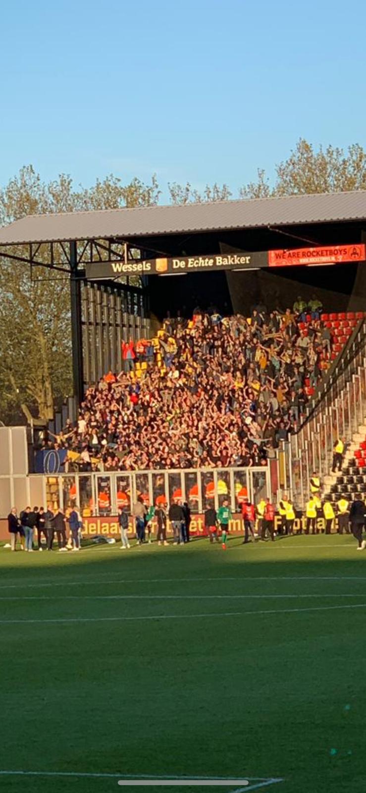 De supporters uit Deventer vonden het in aanloop na de return leuk om de spot te drijven met de Waalwijkse Cowboy. Het antwoord daarop volgde al snel, ruim 100 cowboys reisde samen met Donald af naar Deventer. Helaas moesten vele van ons door het omrijden de 0-1 missen. De rest van de wedstrijd was een grote emotionele rollercoaster. Virtueel Eredivisie, dan weer niet, dan weer wel en dan een minuut voor tijd toch weer niet. We horen de stadionspeaker nog roepen dat alle supporters moeten wachten tot het signaal daar is om het veld te betreden. Mooi niet, zal Spierings gedacht hebben, ik jaag die bal nog één keer op doel, BINGO! JAAAAA, JAAA en nog eens JAAA, ik zie mensen vallen, springen, huilen en elkaar omhelzen. Nog een keer aftrappen, de bal wordt opgevangen en krijgt een peer na voren, waar Bilate staat te wachten en 1 op 1 naar de keeper gaat, penalty. Na afloop is het een groot gekkenhuis, op de terugweg wordt er zelfs iemand vergeten bij het tankstation. Aangekomen in Waalwijk lijkt het wel oud en nieuw: veel vreugde, vuurwerk en mensen die je al een tijdje niet meer hebt gezien (achja dat hoort erbij).
