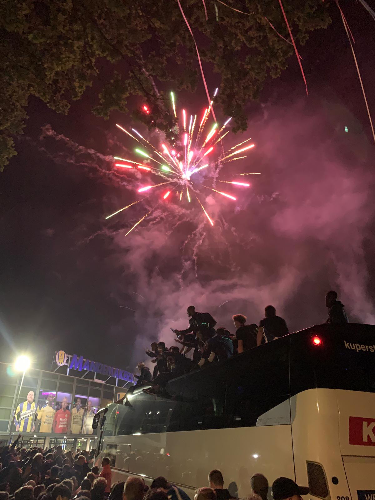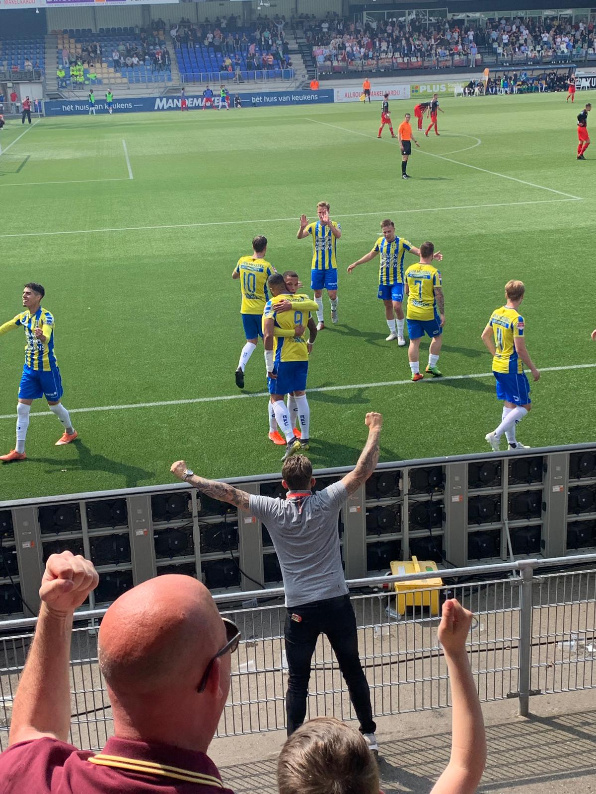 Tja, dan mag je aantreden tegen eredivisionist Excelsior. Ieder met een geelblauw hart heeft nare herinneringen bij een ontmoeting met deze club uit Rotterdam. In 2014 ging het namelijk mis en degradeerden we naar de Jupiler League. De eerste wedstrijd wisten we te winnen met 2-1, we hadden het betere spel en er waren aanknopingspunten voor de return. Met 400 man werd er koers gezet naar Kralingen. ‘Hele vatte, halve worden’ klinkt het in een van de bussen. Vele weten niet waarom, wij wel. Een motto wat nooit meer vergeten zal worden! Na dik een halfuur maakt Spierings 0-1. Het uitvak ontploft. Na 45 minuten billen knijpen blijft de wedstrijd steken op een 1-1. Met de spelers werd er na de wedstrijd en terug bij aankomst een groot feest gevierd. De FINALE was bereikt.