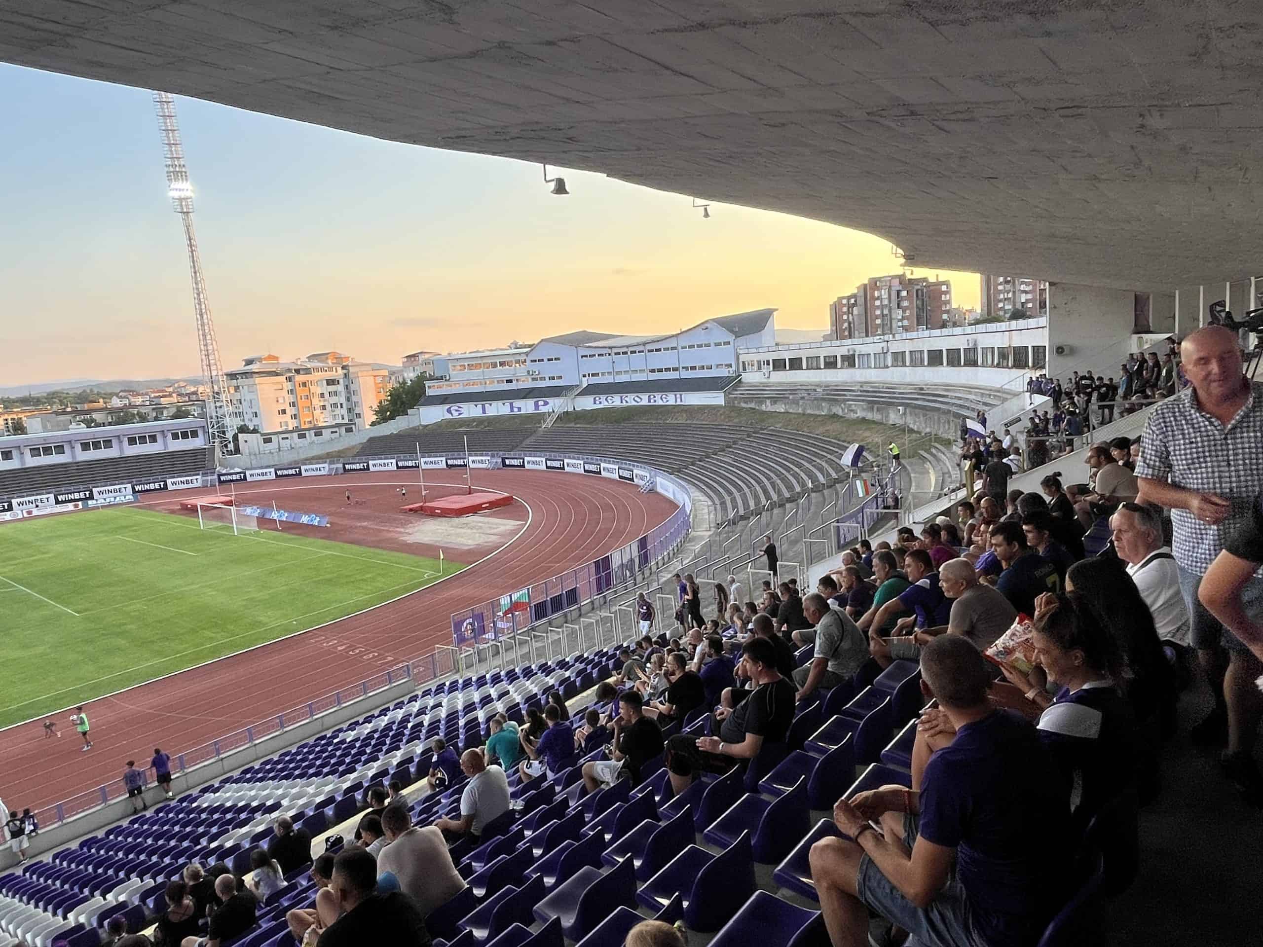 Hoog op een van de heuvels ligt het stadion van Etar. Een oude, onaangetaste bak waar menig liefhebber van smult. Geen kant is identiek en er grenzen meerdere flatjes aan de binnenkant van het stadion. Voor het stadion is een fanshop te ontdekken waar we een van de laatste exclusieve tenues van het (volgens de bond onofficiële) 100-jarige jubileum van Etar kopen. Eenmaal binnen worden we geraakt door de uniekheid en vervallenheid van het stadion. Het Stadion Ivaylo stamt uit 1958 en biedt plaats aan liefst 18.000 toeschouwers. Vandaag tegen promovendus Sevlievo zit het absoluut niet vol, maar voor een willekeurige dinsdag in de tweede divisie van Bulgarije is het zeker niet slecht. Op lagere niveaus vind je zelden een harde kern maar Etar bezit er wel degelijk één. Een groep van ongeveer veertig man maakt de hele wedstrijd door geluid, die niet om aan te gluren is en eindigt in een bloedeloze 0-0.