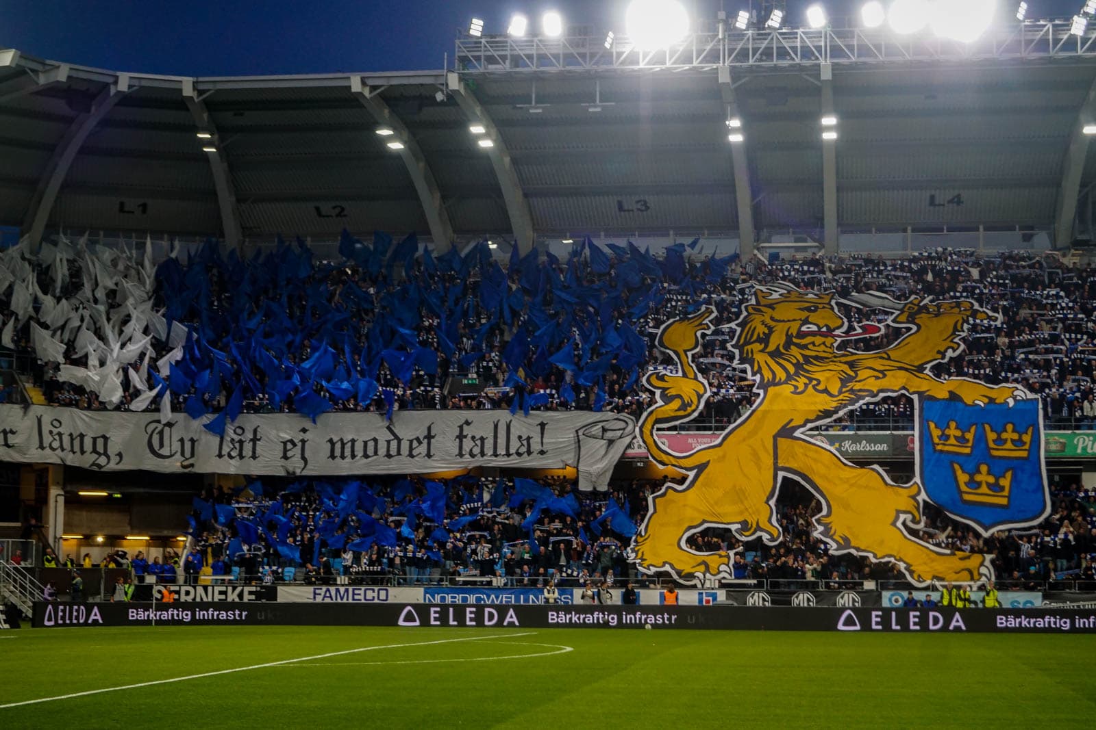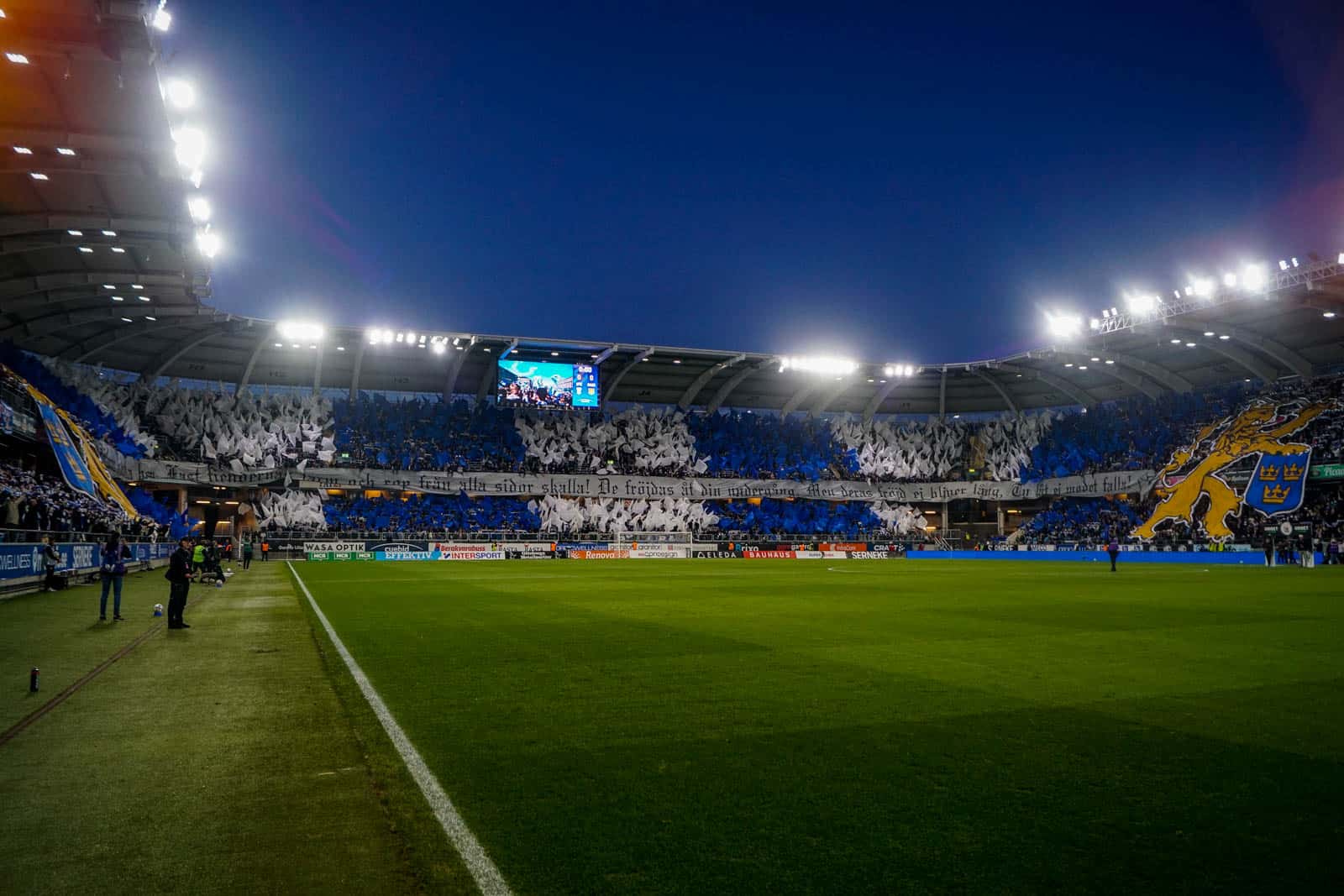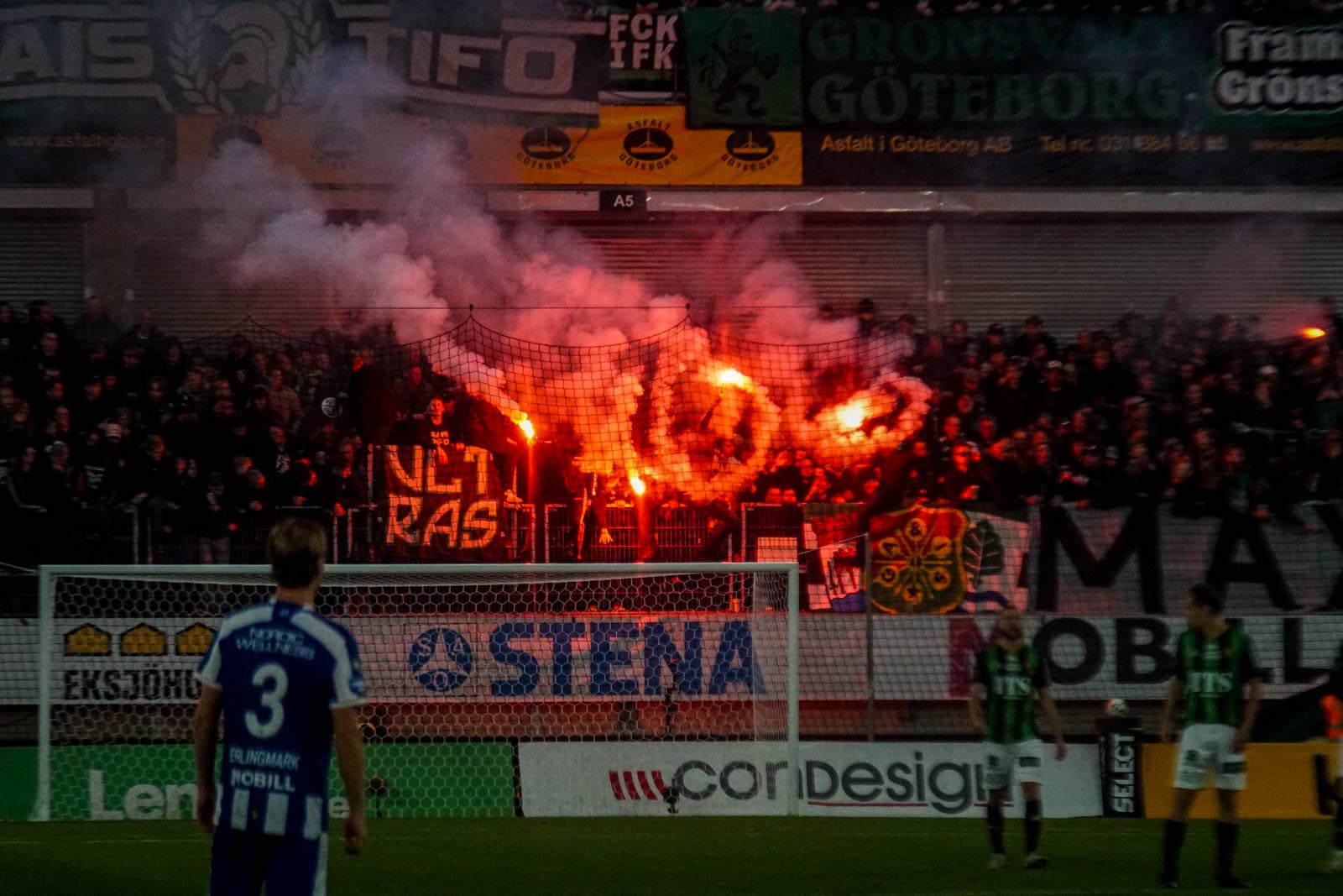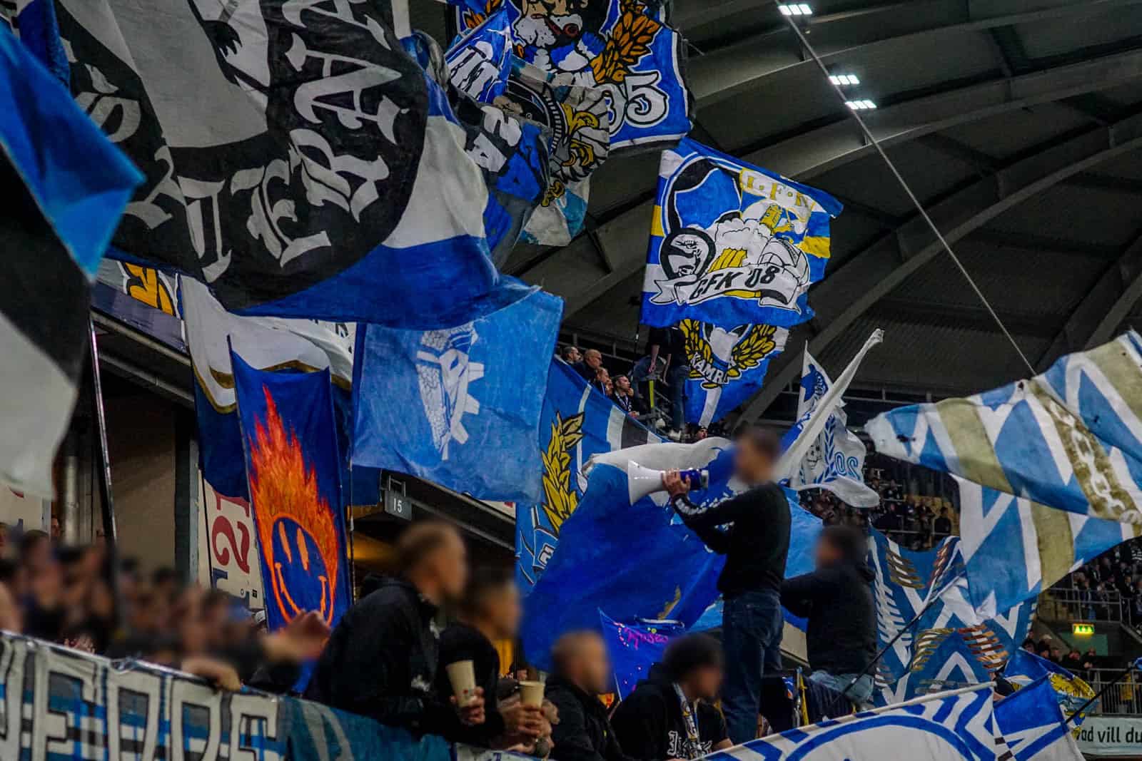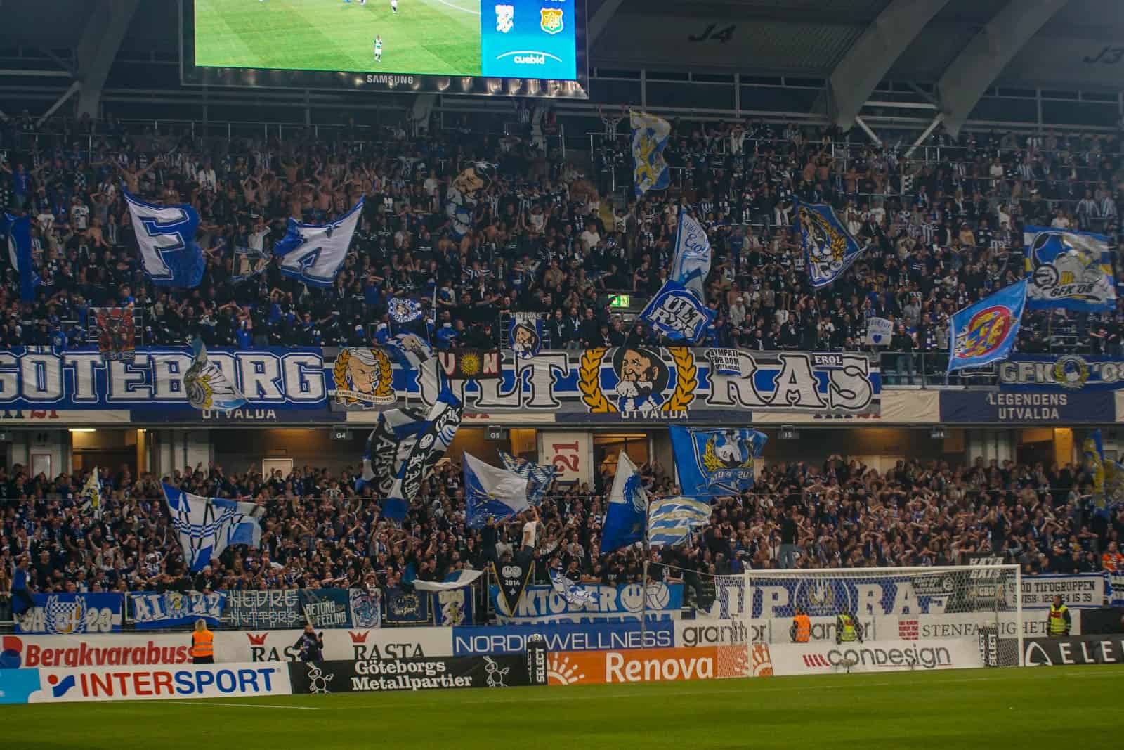 Dat stadion is het Gamla Ullevi, de thuisbasis die IFK, GAIS en Örgryte IS met elkaar delen. Gezien vandaag de thuisbeurt voor IFK is, hebben zij het grootste gedeelte van het stadion gekregen. De supporters van GAIS hebben 2 ringen van een korte zijde gekregen om te vullen met groen. De rest van het stadion is gevuld door supporters van IFK. Op de korte zijde zijn de verschillende ultragroepen van de club verzameld en ook de vrienden van Ultras Nurnberg zijn zichtbaar aanwezig. Al ruim voor het eerste fluitsignaal is hier de omkleedsessie geweest en hebben tientallen supporters zich in hun mooiste bivak gehesen.