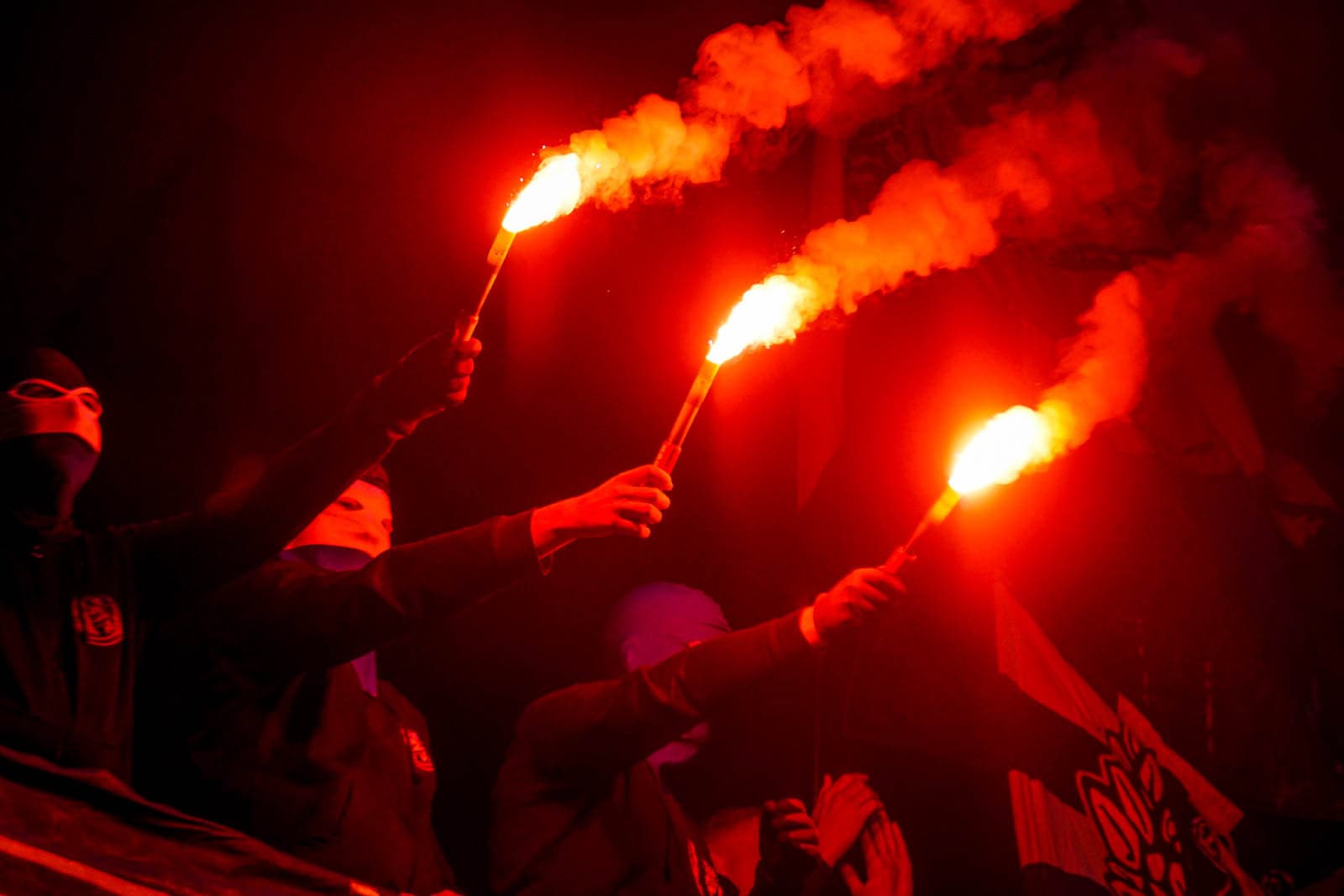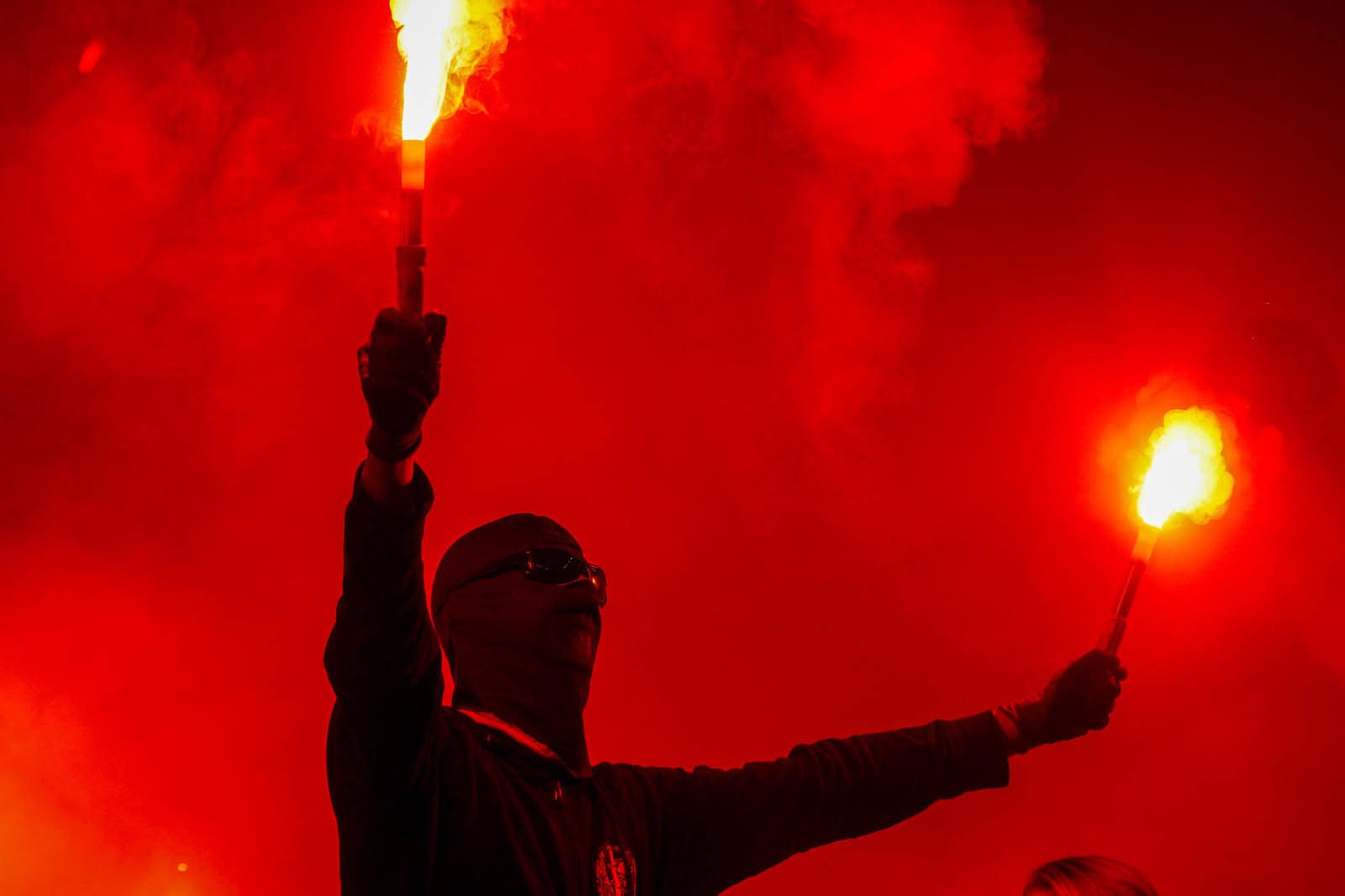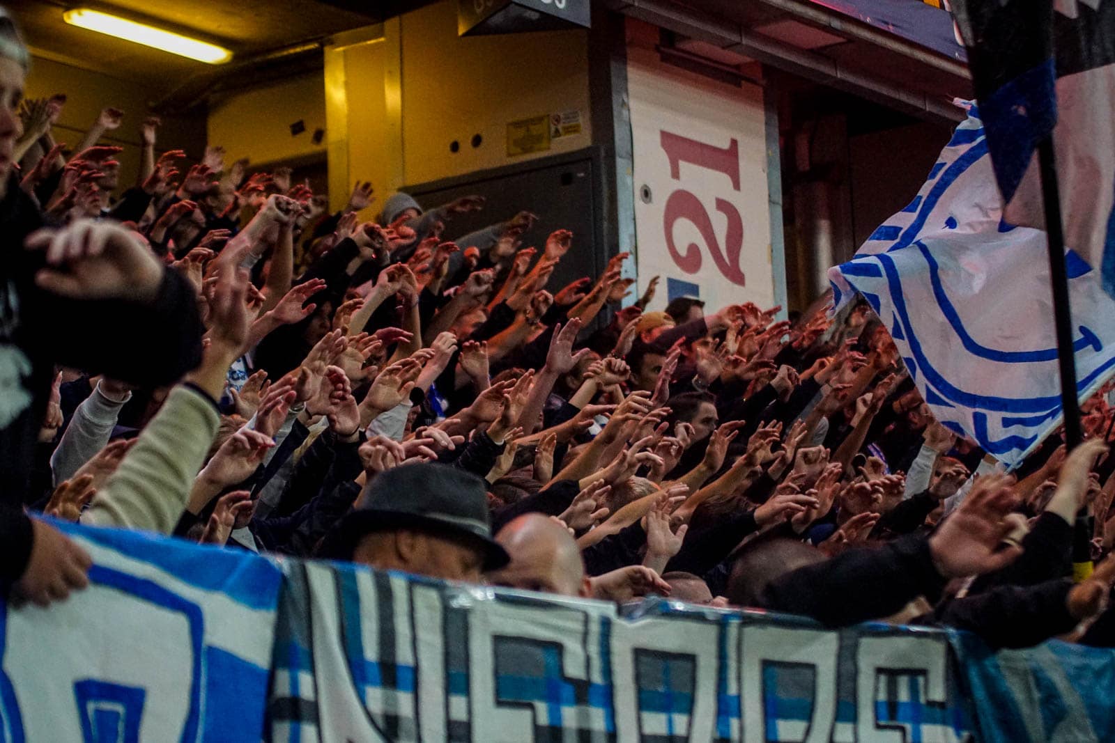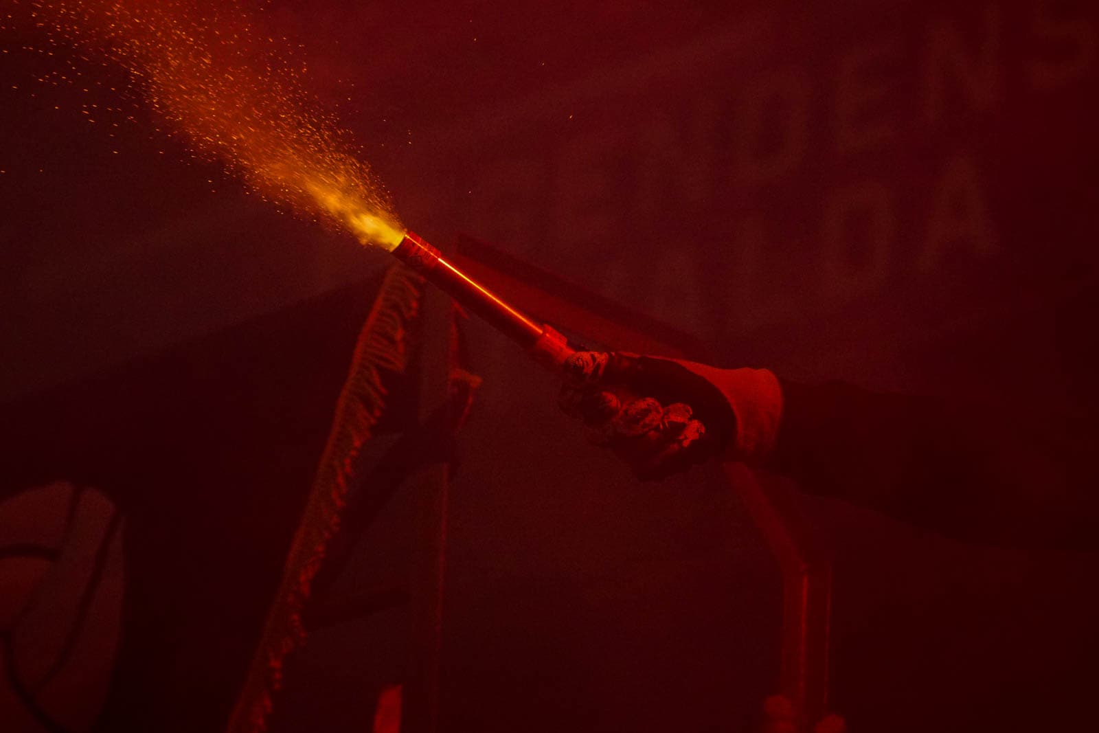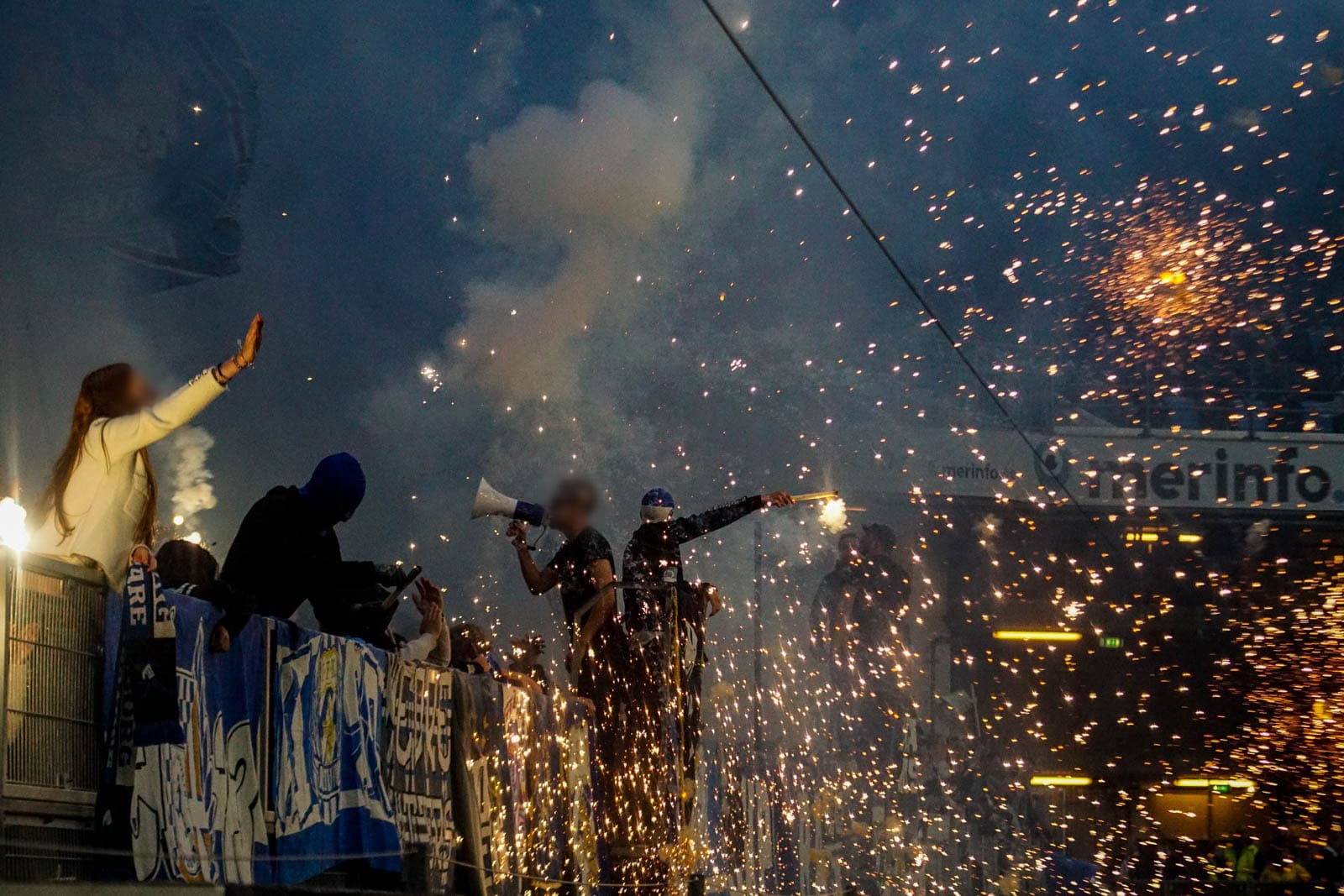 Hierna is het tijd voor de kers op de taart. Waar het in het uitvak blijft bij een handjevol fakkels, gaat het er op het blauw-witte vak iets georganiseerder aan toe. Tegelijkertijd ontsteken tientallen supporters fakkels over beide zijdes verdeeld. Het zorgt voor een heerlijke rode vuurzee, passend bij een derby van dit formaat.