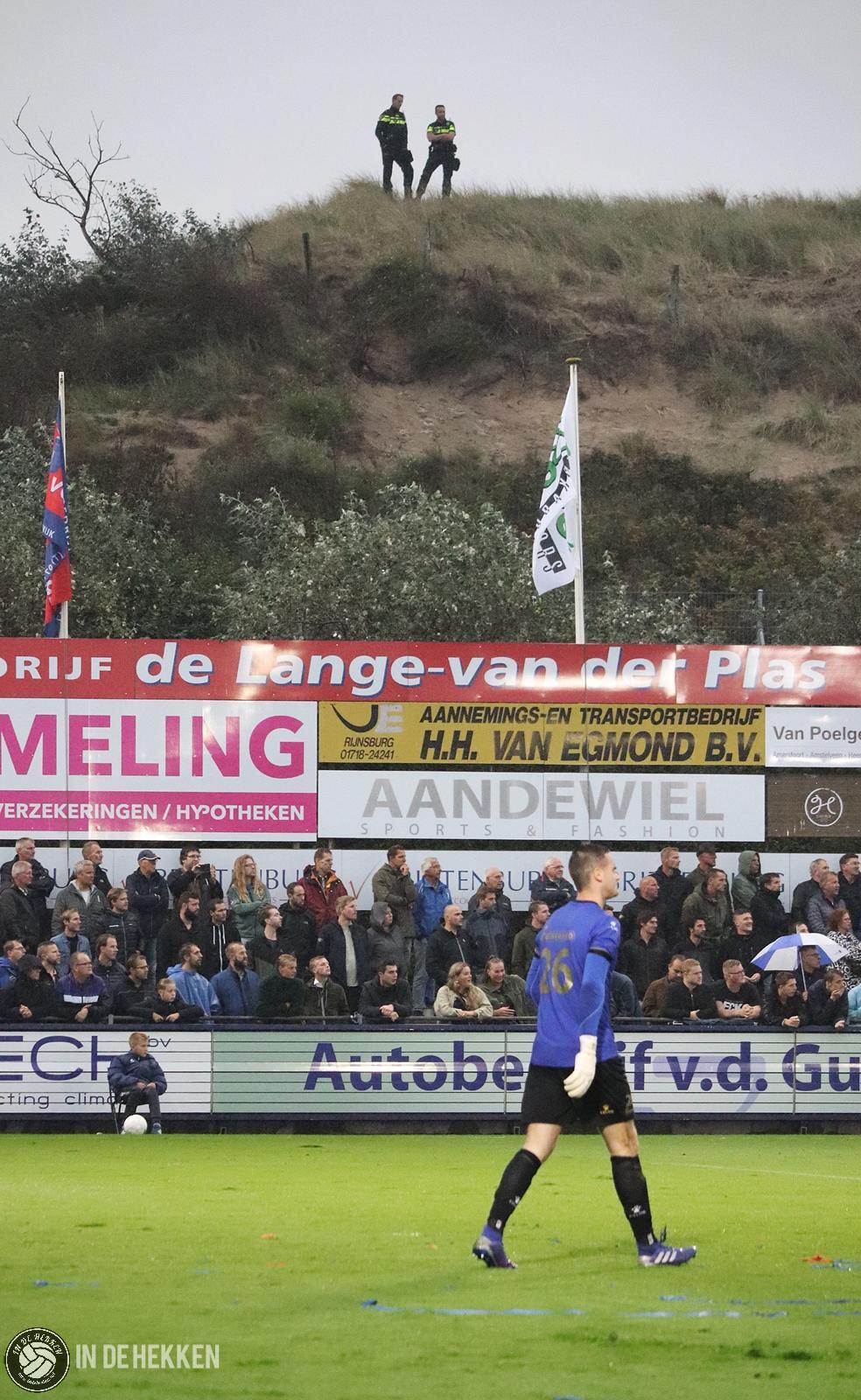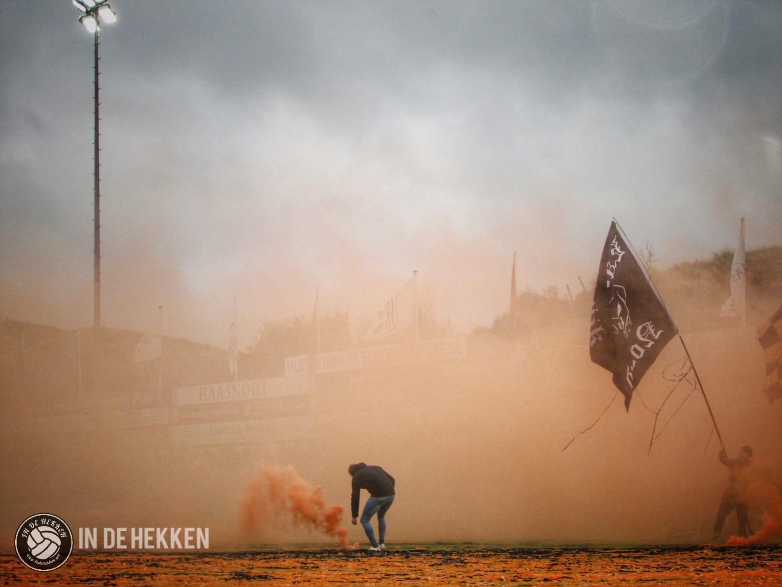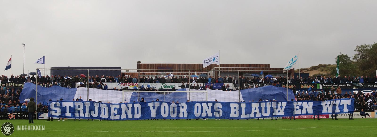 Nog nét op tijd aangekomen op Nieuw Zuid voor de opkomst. We staan paraat om de sfeeracties van beide supportersgroepen vast te leggen. De muisgrijze wolken geven een spookachtig effect en deze geven je ook het gevoel dat het al een uur later is. Gaat het dan ook daadwerkelijk spoken in Katwijk aan Zee?
