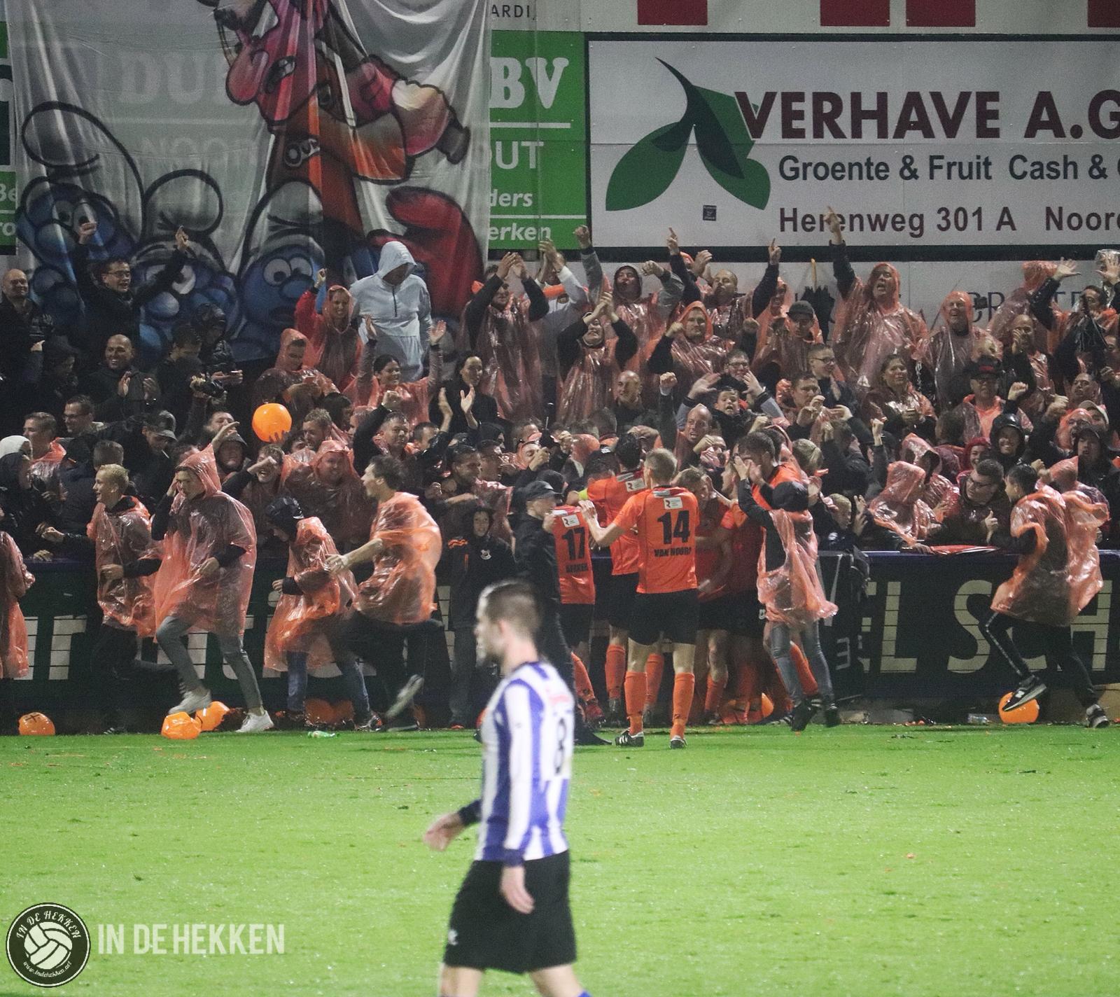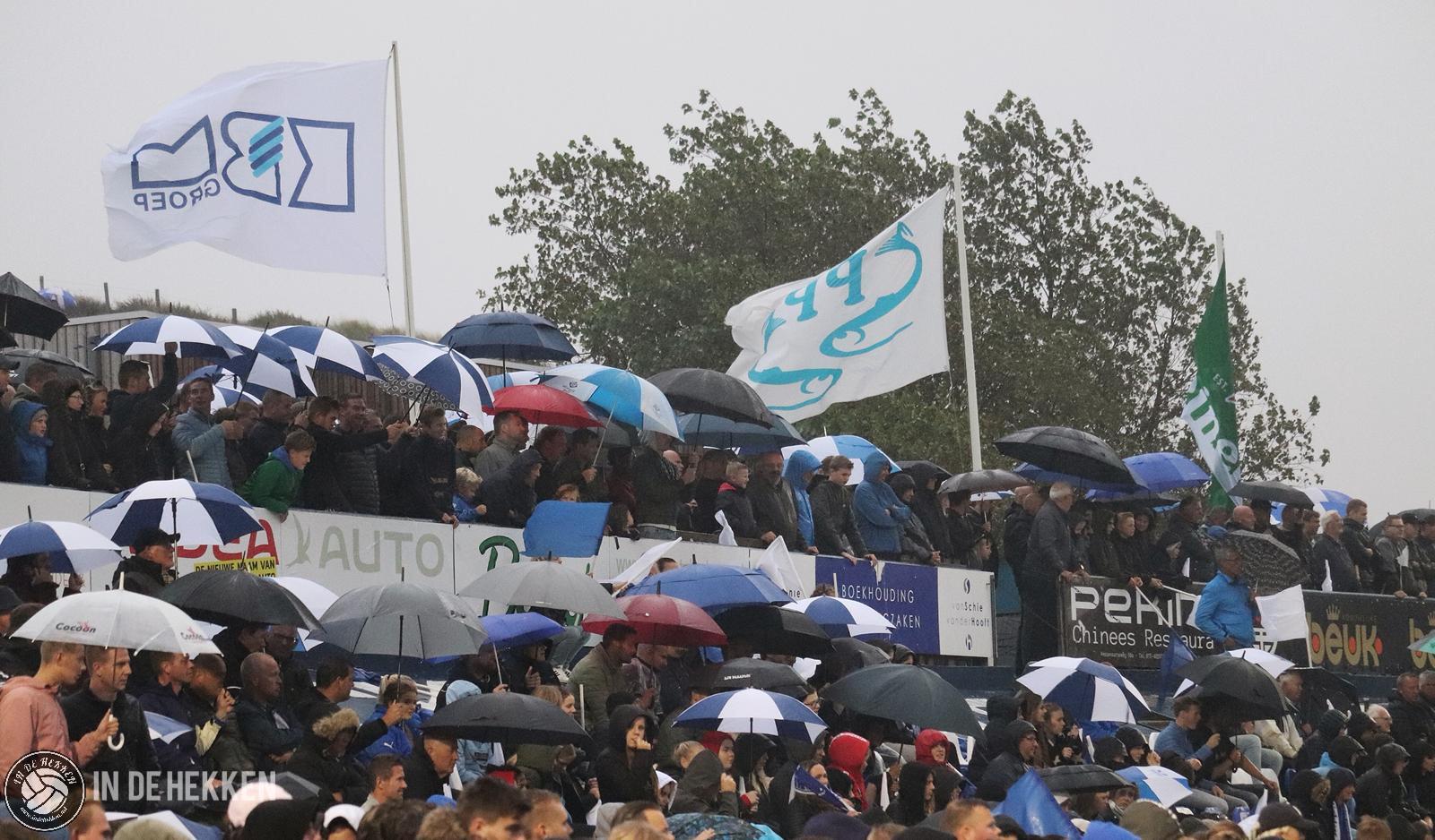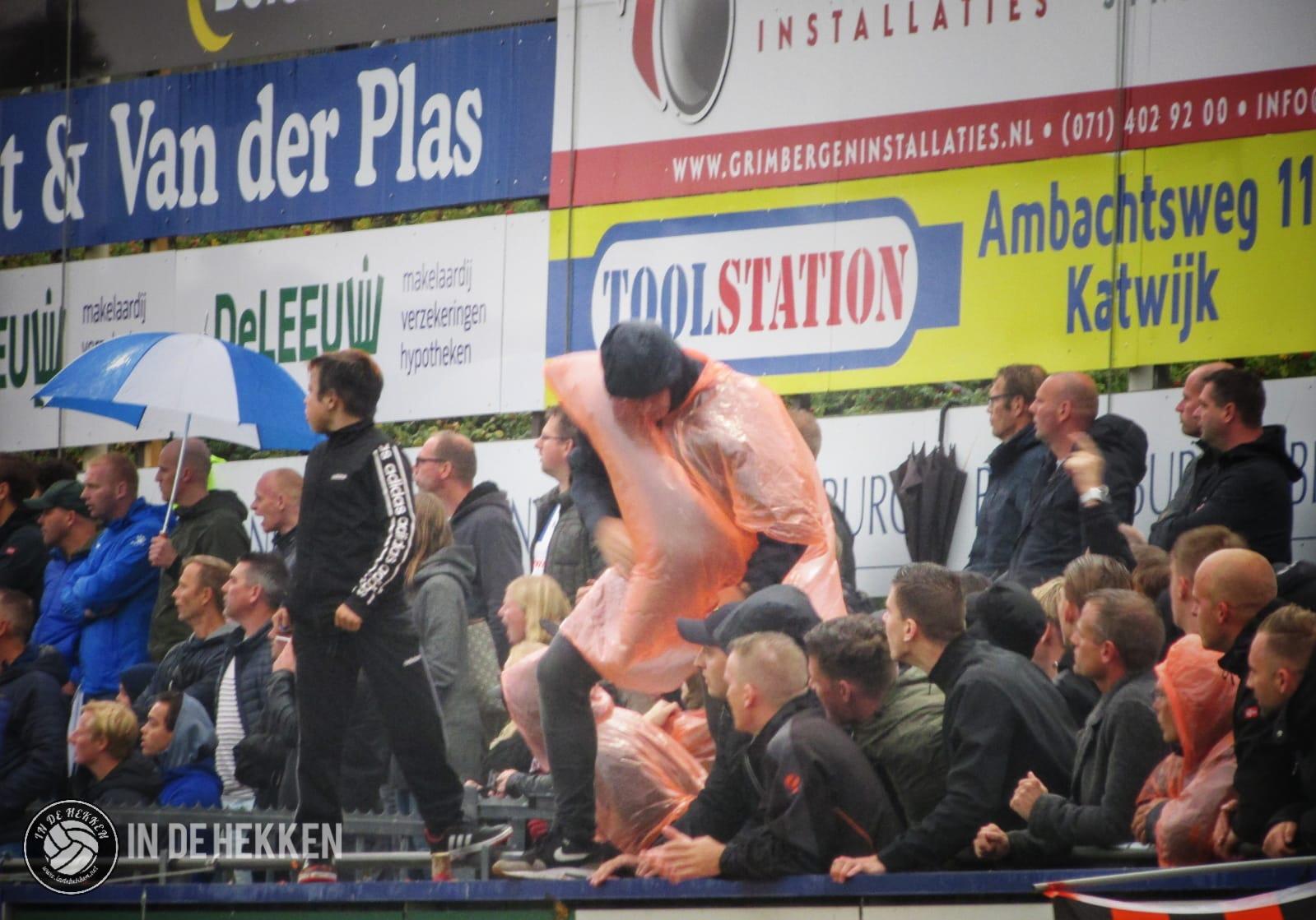 Het zou toch niet zo zijn dat er 180 derbyminuten niet wordt gescoord? Als je de 0-0 van 21 september meetelt tenminste. Het antwoord wordt al snel gegeven. Vroeg in de tweede helft komen de bezoekers op voorsprong. De meesten schrikken hiervan, omdat naast de regen ook dit doelpunt echt uit de lucht komt vallen. Enkele Katwijk-supporters klimmen uit emotie over de boarding om een feestje te vieren met de doelpuntenmaker en de rest van de spelersgroep. Na uitgefeest te zijn, wordt de wedstrijd weer hervat. Mensen hebben het nog over de 0-1 of de 0-2 ligt er al in. Klaar zou je zeggen. Kansen voor de thuisploeg waren al schaars, minimaal 2 goals maken lijkt dus een utopie.