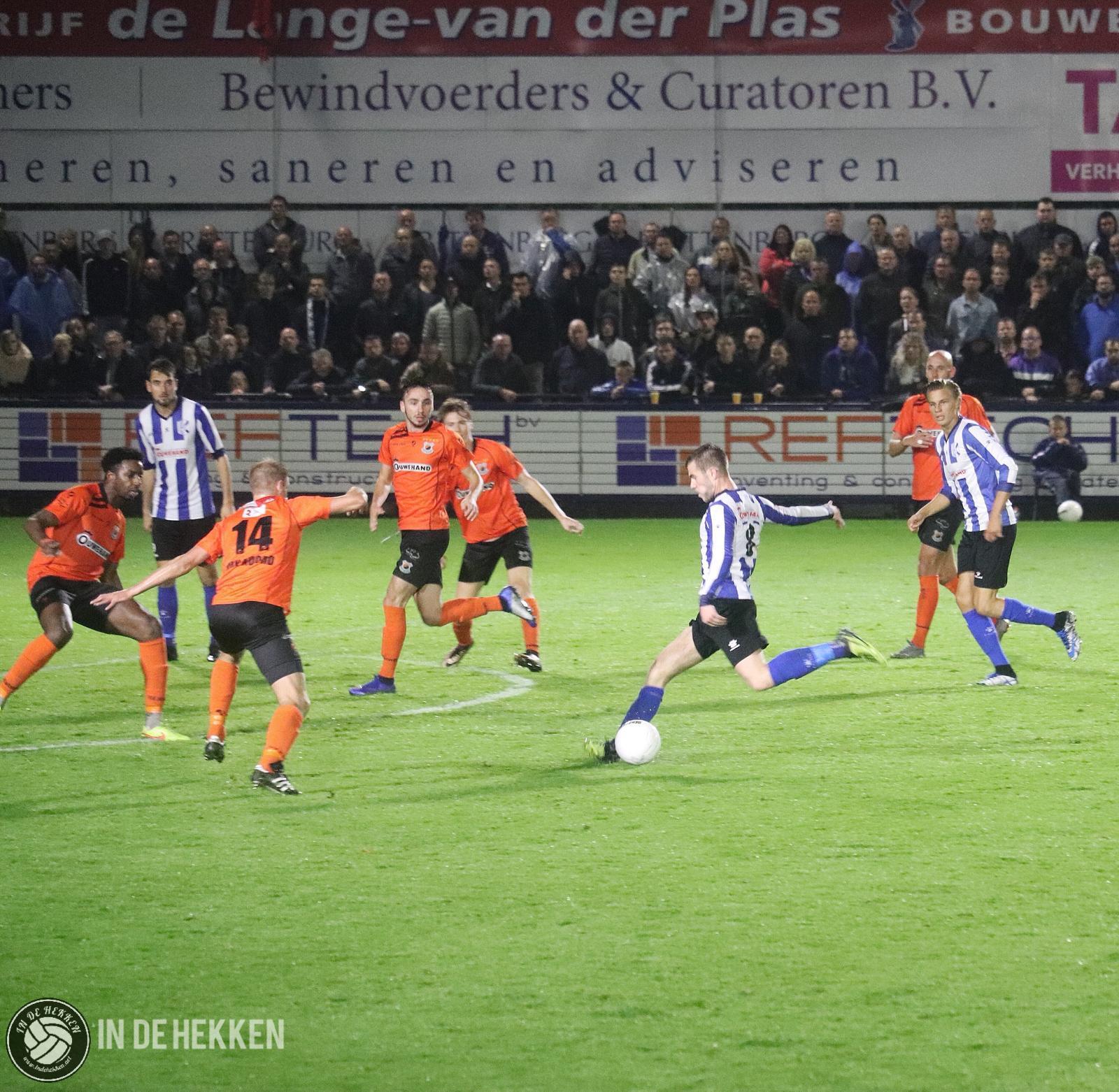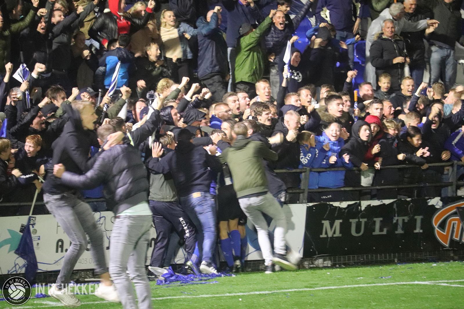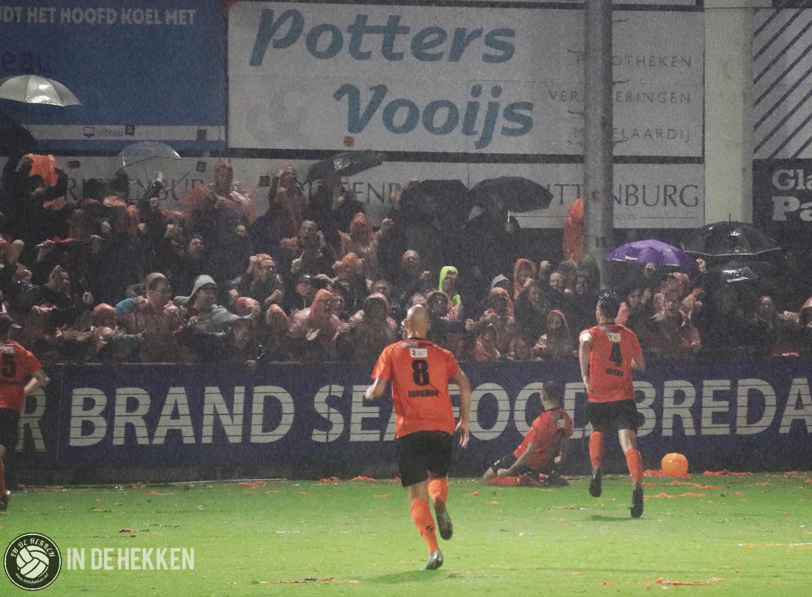 Het zou toch niet zo zijn dat er 180 derbyminuten niet wordt gescoord? Als je de 0-0 van 21 september meetelt tenminste. Het antwoord wordt al snel gegeven. Vroeg in de tweede helft komen de bezoekers op voorsprong. De meesten schrikken hiervan, omdat naast de regen ook dit doelpunt echt uit de lucht komt vallen. Enkele Katwijk-supporters klimmen uit emotie over de boarding om een feestje te vieren met de doelpuntenmaker en de rest van de spelersgroep. Na uitgefeest te zijn, wordt de wedstrijd weer hervat. Mensen hebben het nog over de 0-1 of de 0-2 ligt er al in. Klaar zou je zeggen. Kansen voor de thuisploeg waren al schaars, minimaal 2 goals maken lijkt dus een utopie.