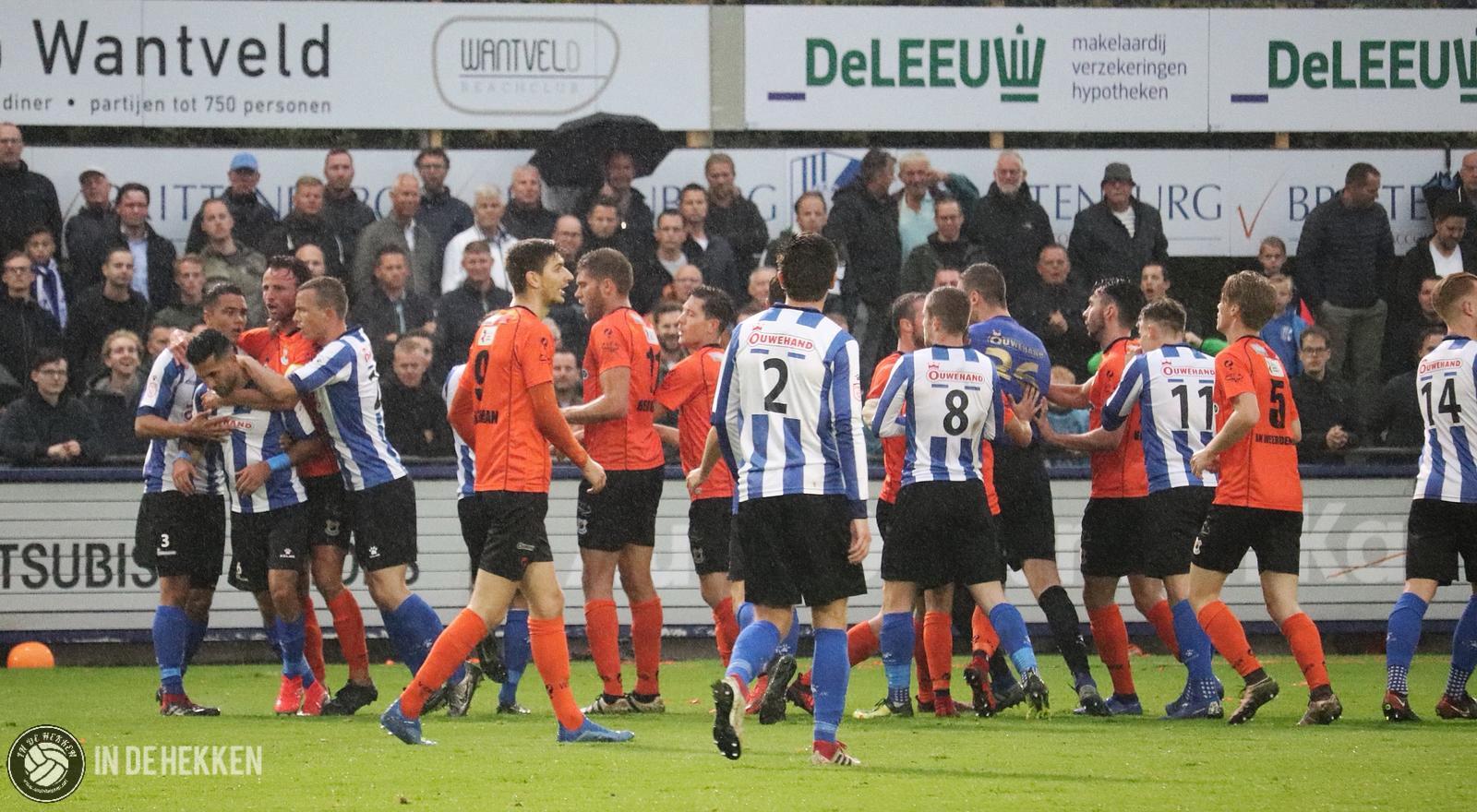 Van de hoop op een heet potje blijft weinig over als de minuten langzaam wegtikken. Wat een beroerde eerste helft. De kansen die ontstaan, komen vooral door individuele fouten. Tot ergernis van vele supporters houdt de scheidsrechter vaak de kaarten op zak. Voor de neutrale kijker is dit juist een voordeel. De scheids probeert er tenminste nog een wedstrijd van te maken. Knok de duels maar gewoon uit! Na enkele minuten wordt de grens wel opgezocht als een speler van Quick Boys stevig doorgaat op een speler van Katwijk. Een opstootje ontstaat waardoor de toon is gezet!