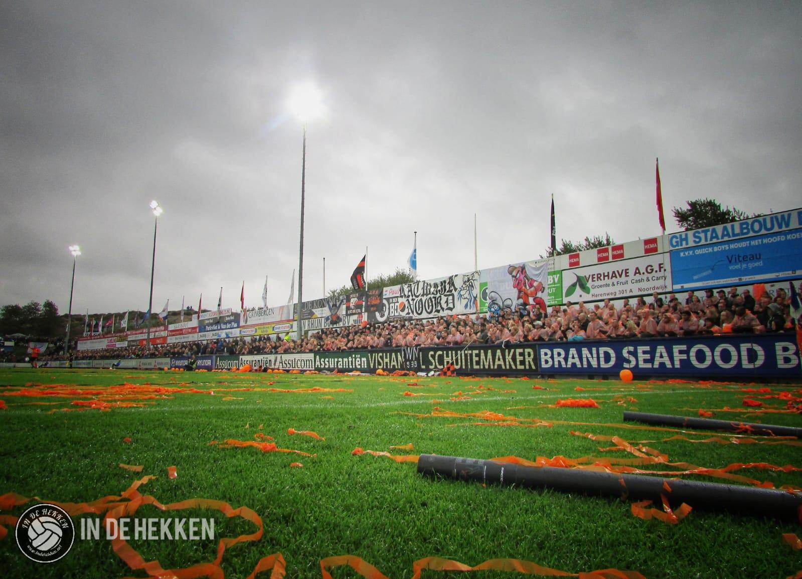 Nog één keer wordt de thuisploeg naar voren geschreeuwd door hun aanhang. Maar het mocht niet meer baten. De verlenging is voorbij, iedereen is op. Spelers van Quick Boys staan er verloren bij met hangende koppies, maar de supporters van de Blauw Witte Narren klappen en zingen met opgeheven hoofd. Alle energie en emoties, deze waren allemaal in de wedstrijd gestopt. Het uitvak is ondertussen in volle vreugde. Het feestje in Katwijk-Noord zal nog even duren.